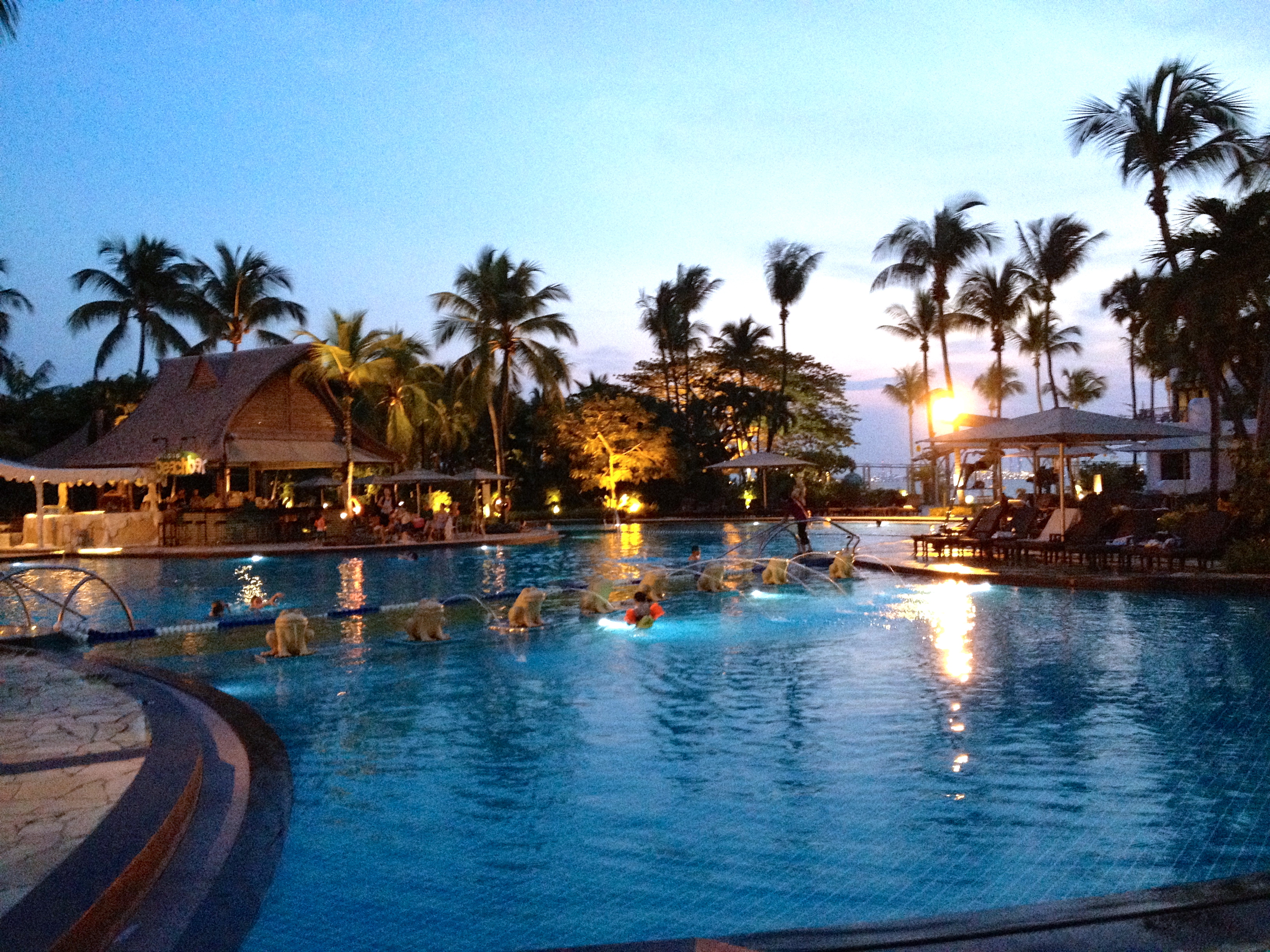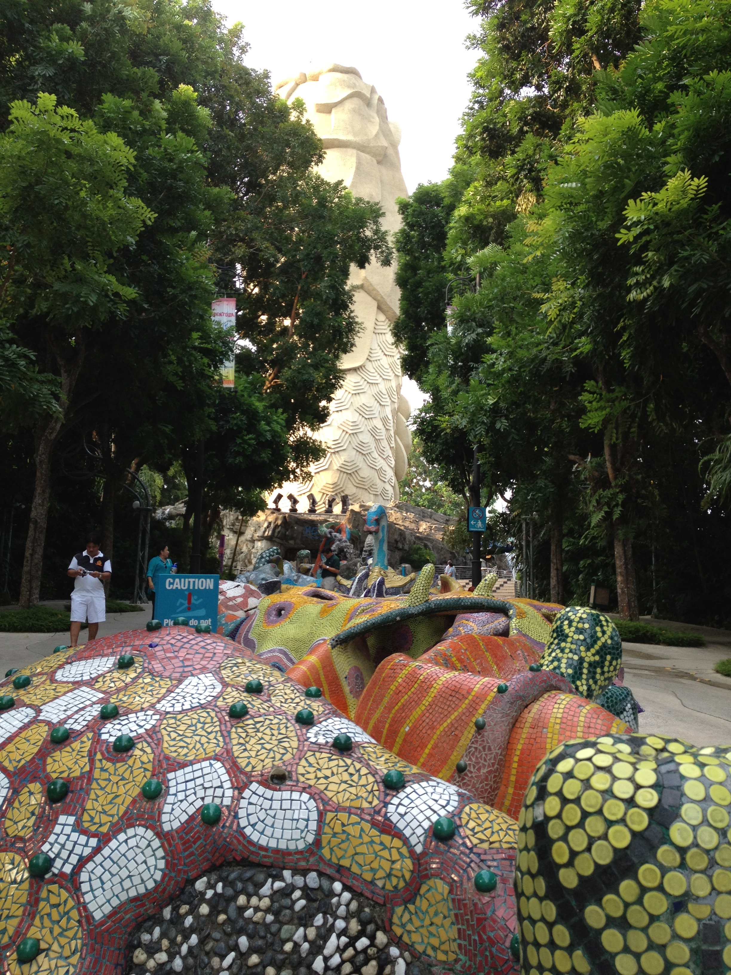De retour chez nous à Sentosa, je profite de la clarté du jour pour des photos de ce big Resort, ses restaurants, ses magasins fous, ses fontaines, ses sculptures, son allée Gaudi.