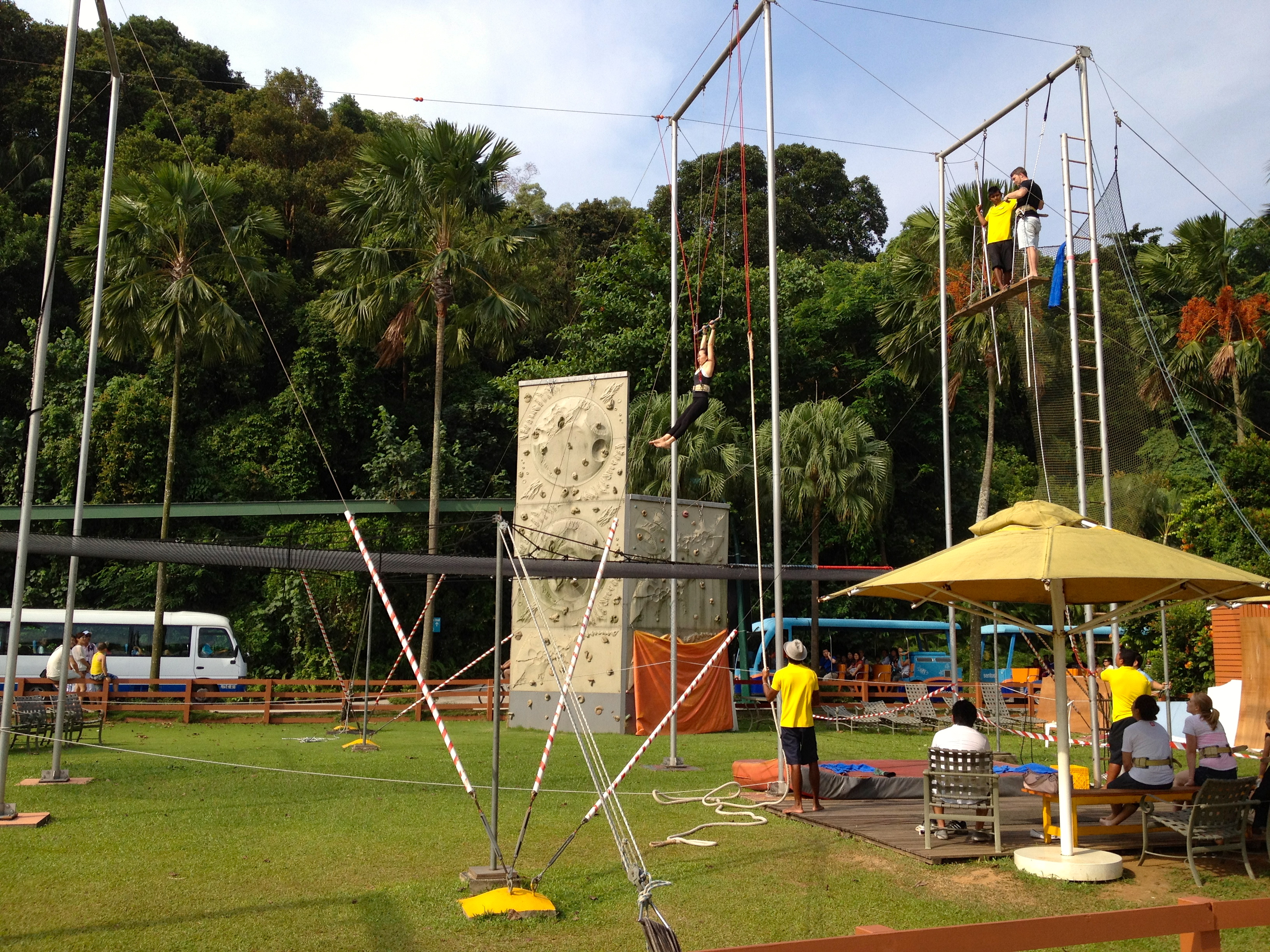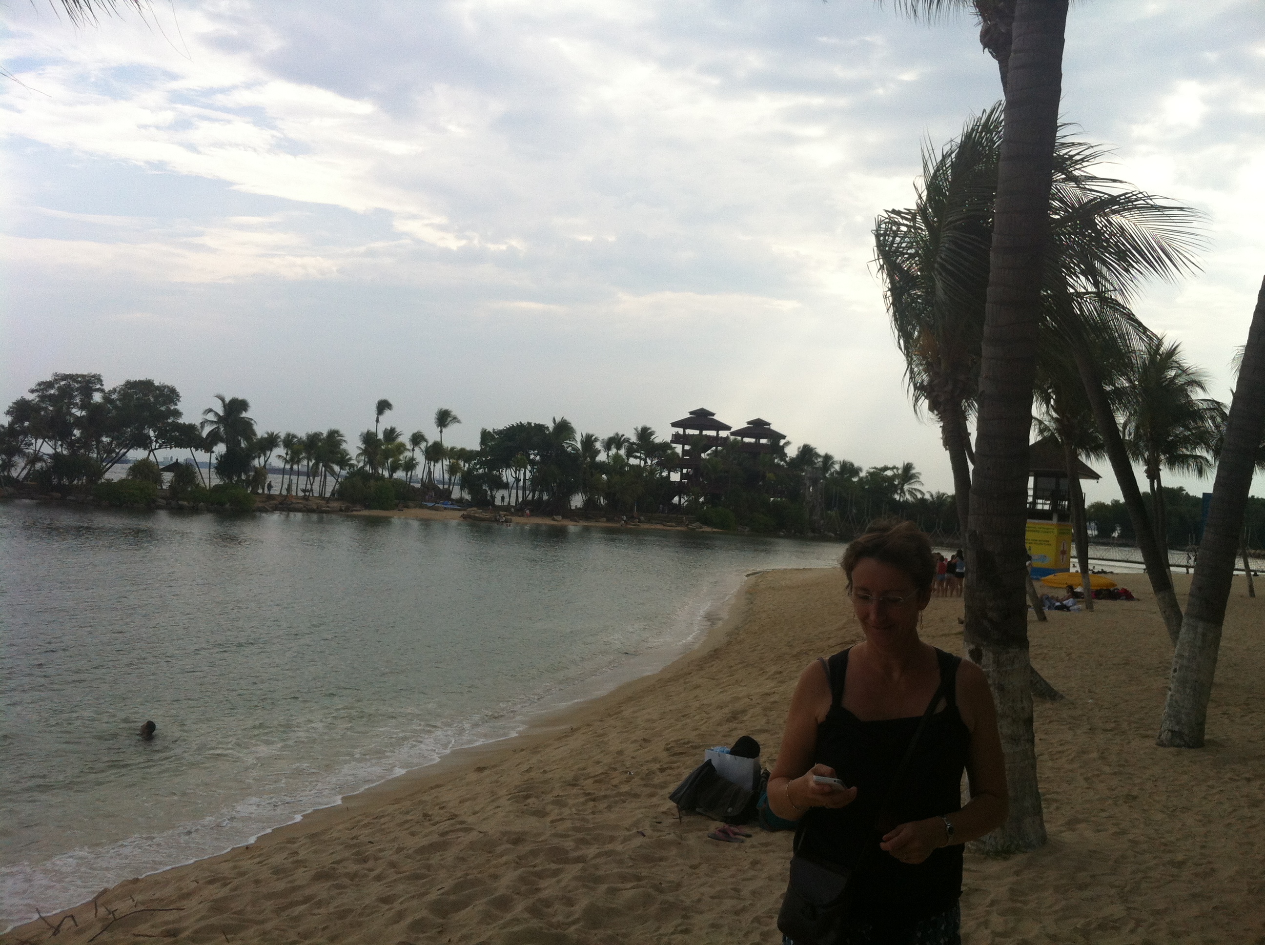 Après deux tentatives échouées dans des agences DBS du centre ville, bondées, nous trouvons notre bonheur à l’agence de Sentosa. En un temps record, nous en sortons avec nos cartes de banque, le compte déjà crédité avec du cash à un automate et également les accès ebanking. L’attachée d’agence est hyper efficace, elle fait moult photocopies des passeports, cartes de résidents, numéros des mobiles, etc. Et nous avons droit à une démo sur les automates !