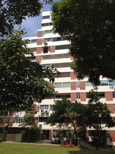 Nous sommes impatients d’aller découvrir le condominium de Pandan Valley où l’université nous a trouvé un appartement pour le premier mois: de grands buildings, hébergeant quelques 600 personnes, dans la verdure, avec des places de jeux, de pic-nic et une jolie piscine. Je suis surprise que dans l’ascenseur, seuls les étages 1, 3, 7, 11 et 16 soient indiqués; chance, le nôtre sera le 11ème!