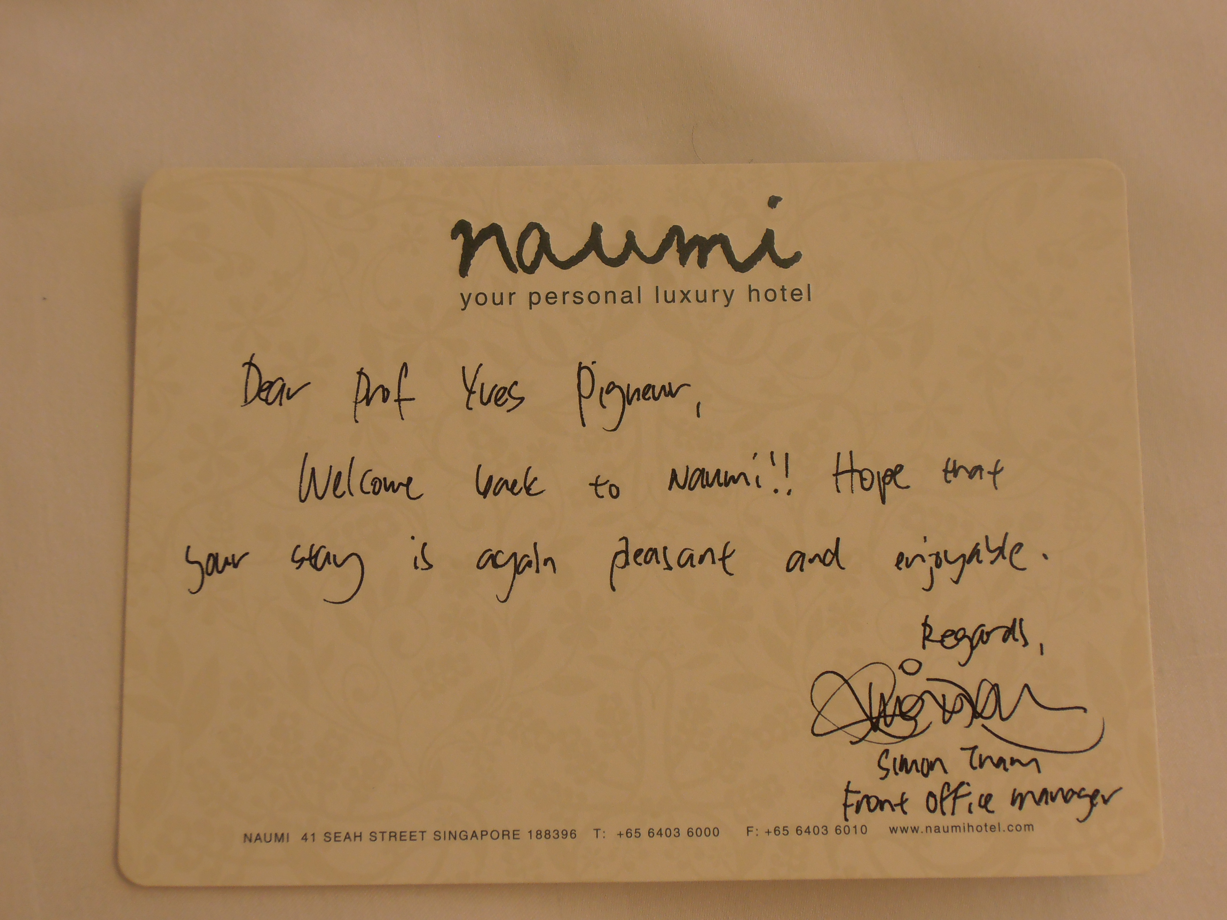 Et c’est encore un Monsieur Teo qui nous emmène en taxi à NUS; enfin un taximan qui sait où se trouve la Business School. Installés tous les deux dans le nouveau bureau de Yves, nous profitons du réseau et de l’imprimante pour quelques démarches.