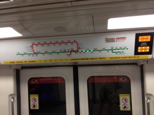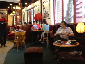 Et dans les toilettes, un siège accroché à la paroi permet à la maman de poser son petit enfant en sécurité tout près d’elle … ils pensent à tout! Le passage de sécurité se fait à la gate; leur sens de l’organisation se détecte ici par les tags numérotés affectés à chacun des bacs où l’on dépose nos affaires. L’embarquement, ce jour dans un Boeing 777 de Singapore Airlines, se passe comme il se doit de manière très très disciplinée; chacun respecte scrupuleusement son ordre d’appel! C’est tellement appréciable. Un brunch est servi, omelette-saucisses-etc et comme dessert un gâteau couleur vert pomme, très bon. Le vol pour Ho Chi Minh dure presque deux heures; nous retardons nos montres d’une heure, il fait 31 degrés à l’arrivée.