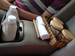 À partir d’ici nous nous laissons guider. Deux charmants jeunes hommes nous font prendre place dans un taxi bien confortable, avec une climatisation bienvenue et aussi des rafraîchissements, des serviettes humides parfumées, des snacks (cacahuètes, gingembre, … ); la classe! Avec eux non plus la communication n’est pas facile, nous pensons comprendre que la destination est à plus d’une heure de route.