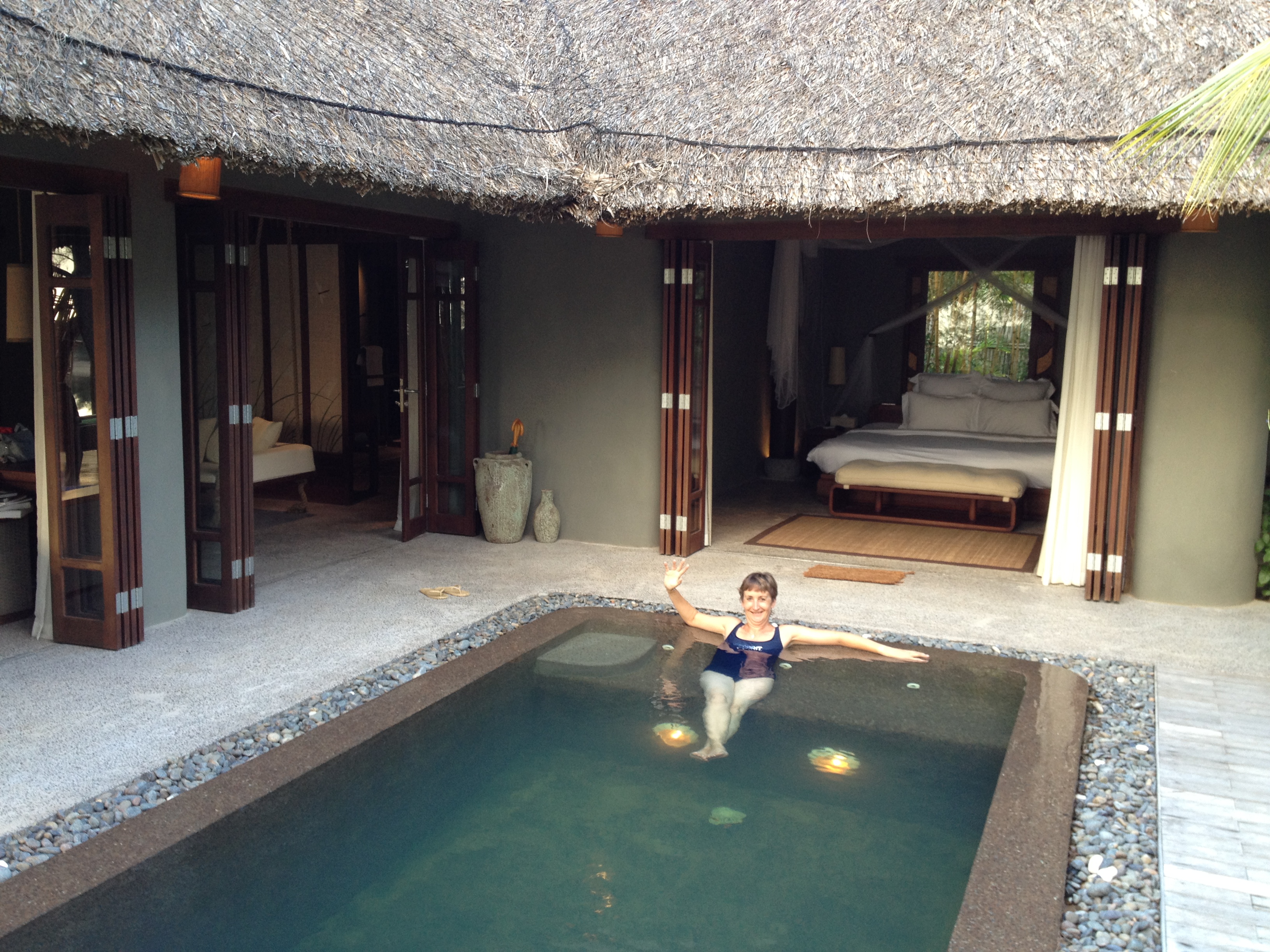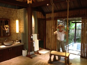 La manager et l’équipe d’accueil nous souhaite une chaleureuse bienvenue au village de An Lãm Ninh Van Bay Villas, by Epikurean. Notre intendant personnel, Luãn, nous accompagne en petite voiturette électrique jusqu’à la villa 19! Tout cela, rien que pour nous deux?! Et ici je laisse parler les photos.