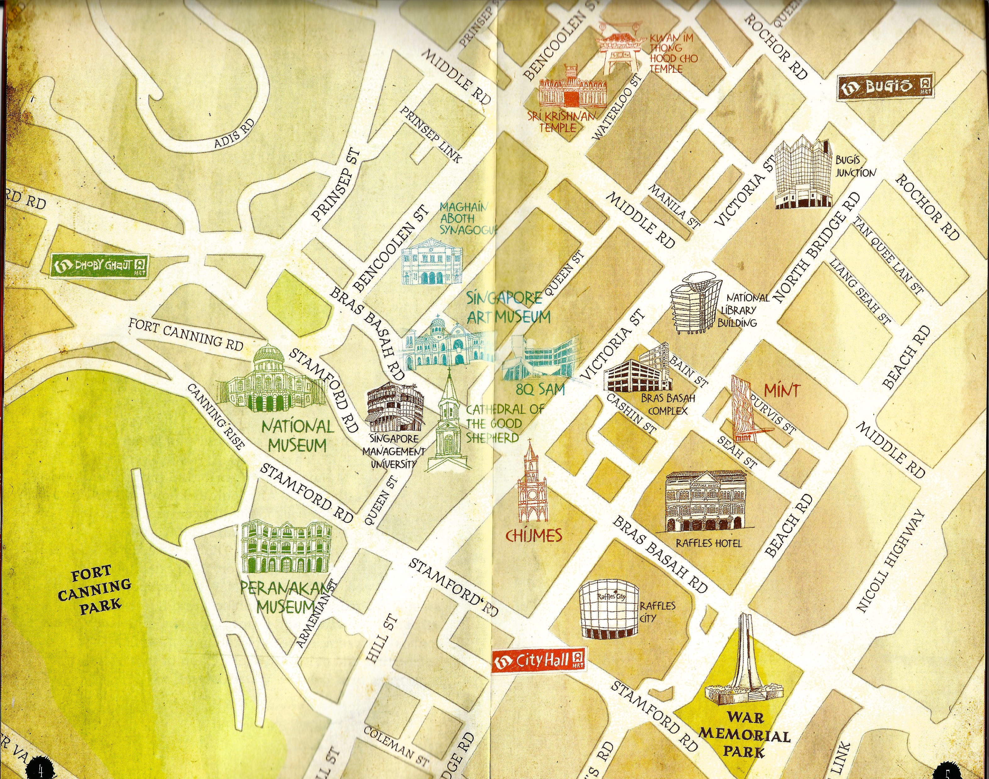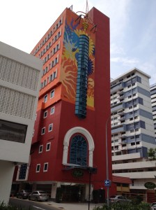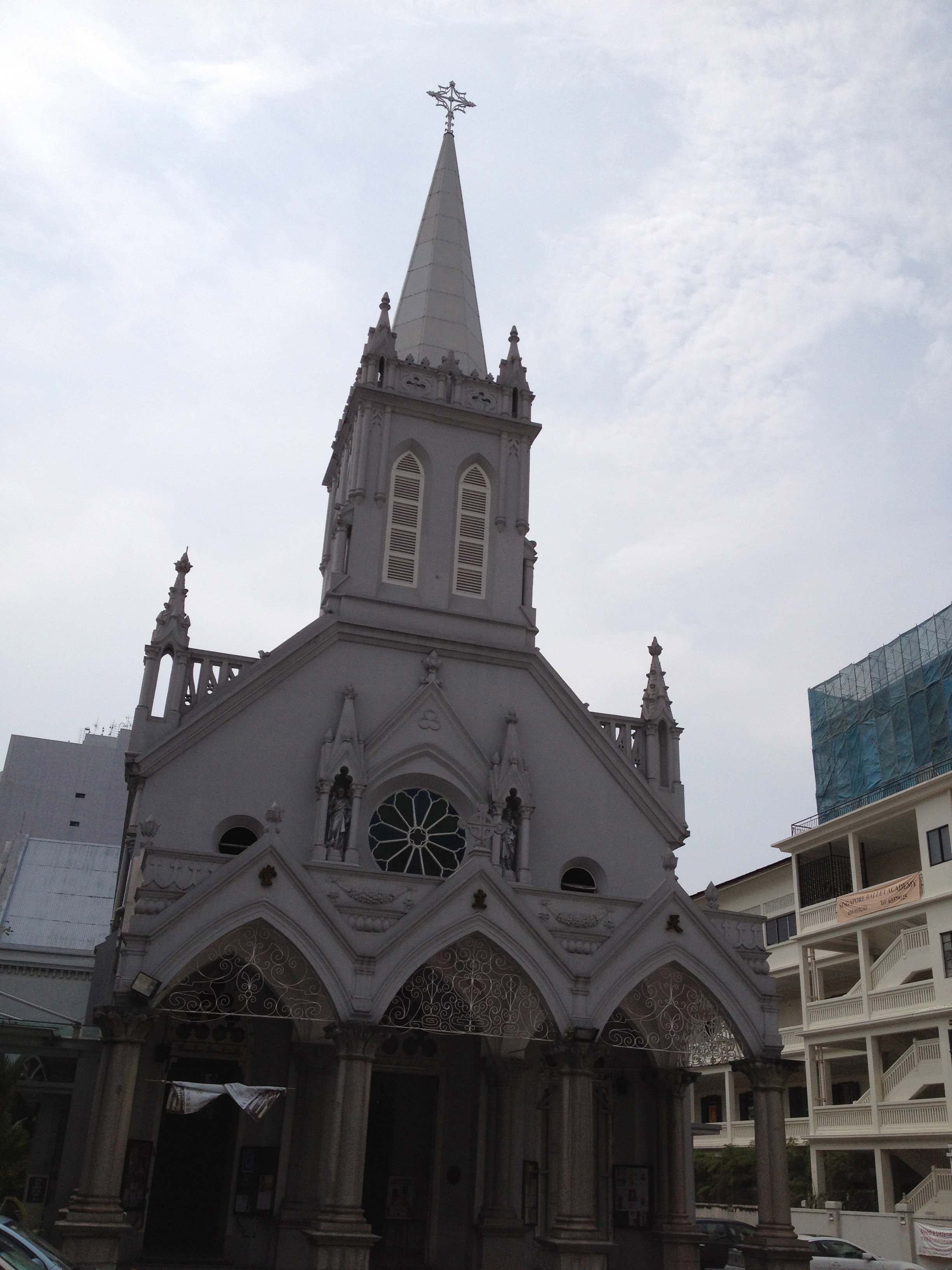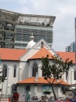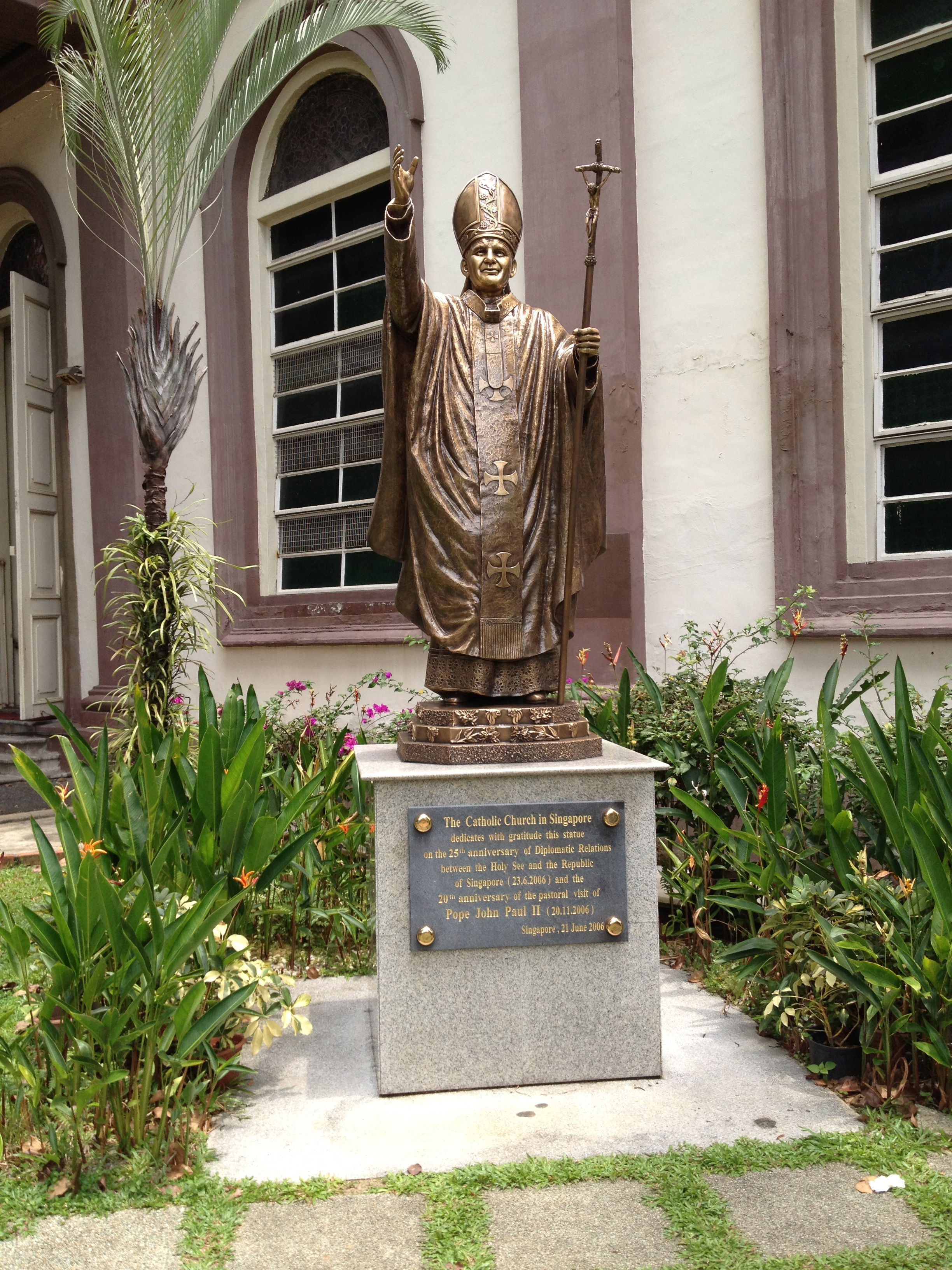 Je suis un circuit proposé par un petit guide « Hike It », localisé sur le centre proche de notre premier point de chute à Singapour. Il est 13h30 quand je me joins à une assemblée nombreuse recueillie dans la cathédrale du « Good Shepherd » ; cela me semble étrange de suivre une messe en anglais, célébrée par un prêtre asiatique. Dehors une statue de Jean-Paul II commémore son passage en 2006. Comme plusieurs édifices religieux, cette cathédrale nécessiterait des rénovations importantes.