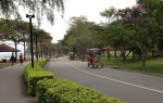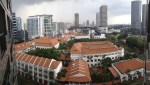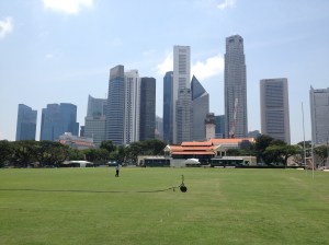 Le train rapide Skyliner qui doit nous mener au centre ville est déjà à quai mais nous ne pouvons prendre place avant un nettoyage minutieux, qui a lieu après chaque trajet et surtout le pivotement des sièges pour que les voyageurs soient toujours dans le sens de la marche, épatant ! Le train est spacieux, confortable, peu fréquenté, ponctuel et les annonces, précises, sont données dans un anglais très clair. Le paysage défile, très différent de Singapour ; le ciel est d’un bleu parfait, l’horizon s’étend bien au loin sur une région sans collines, la ville approche et nous remarquons de suite tout ce réseau d’électricité qui est encore en hauteur, tellement visible.
