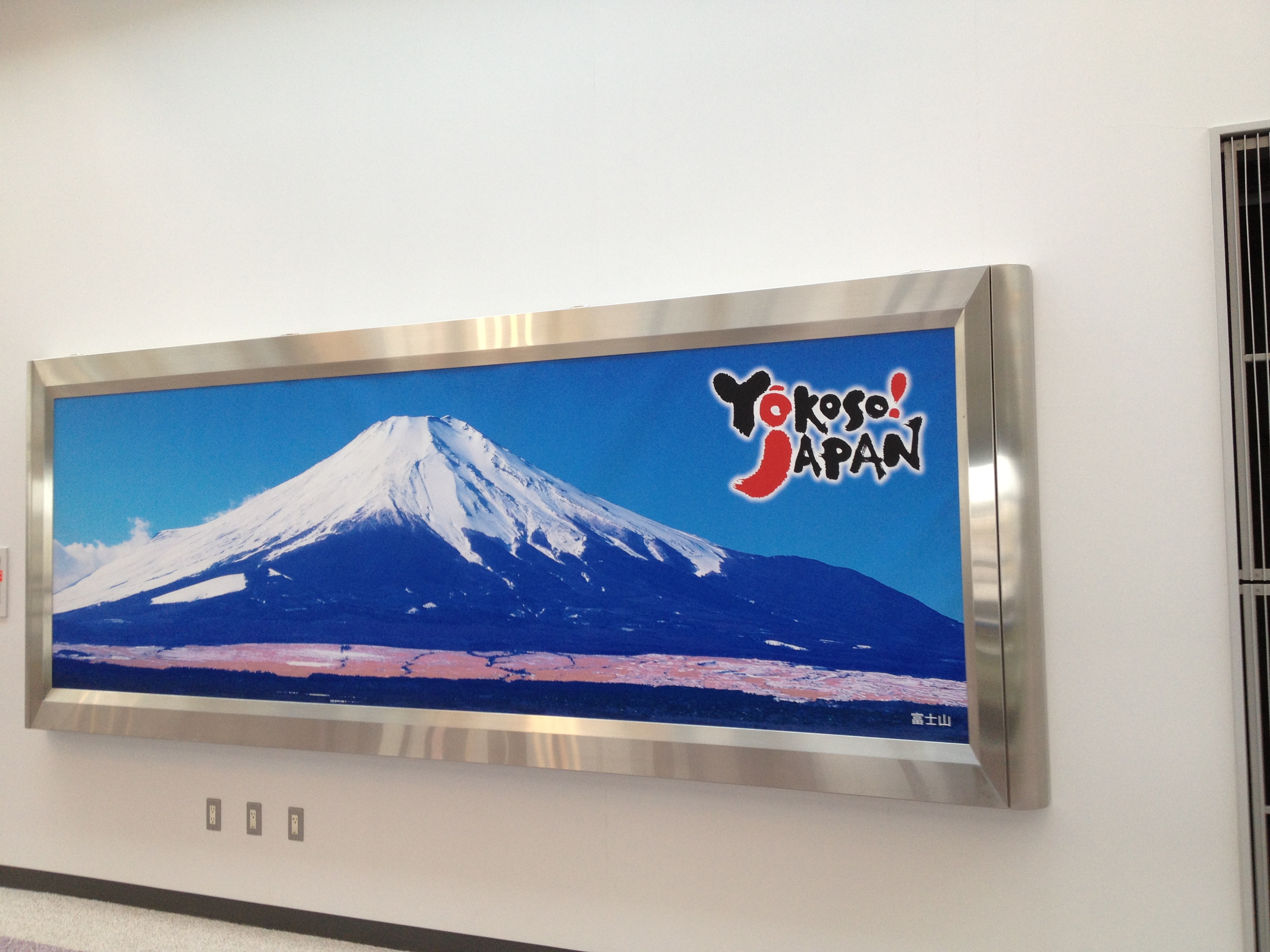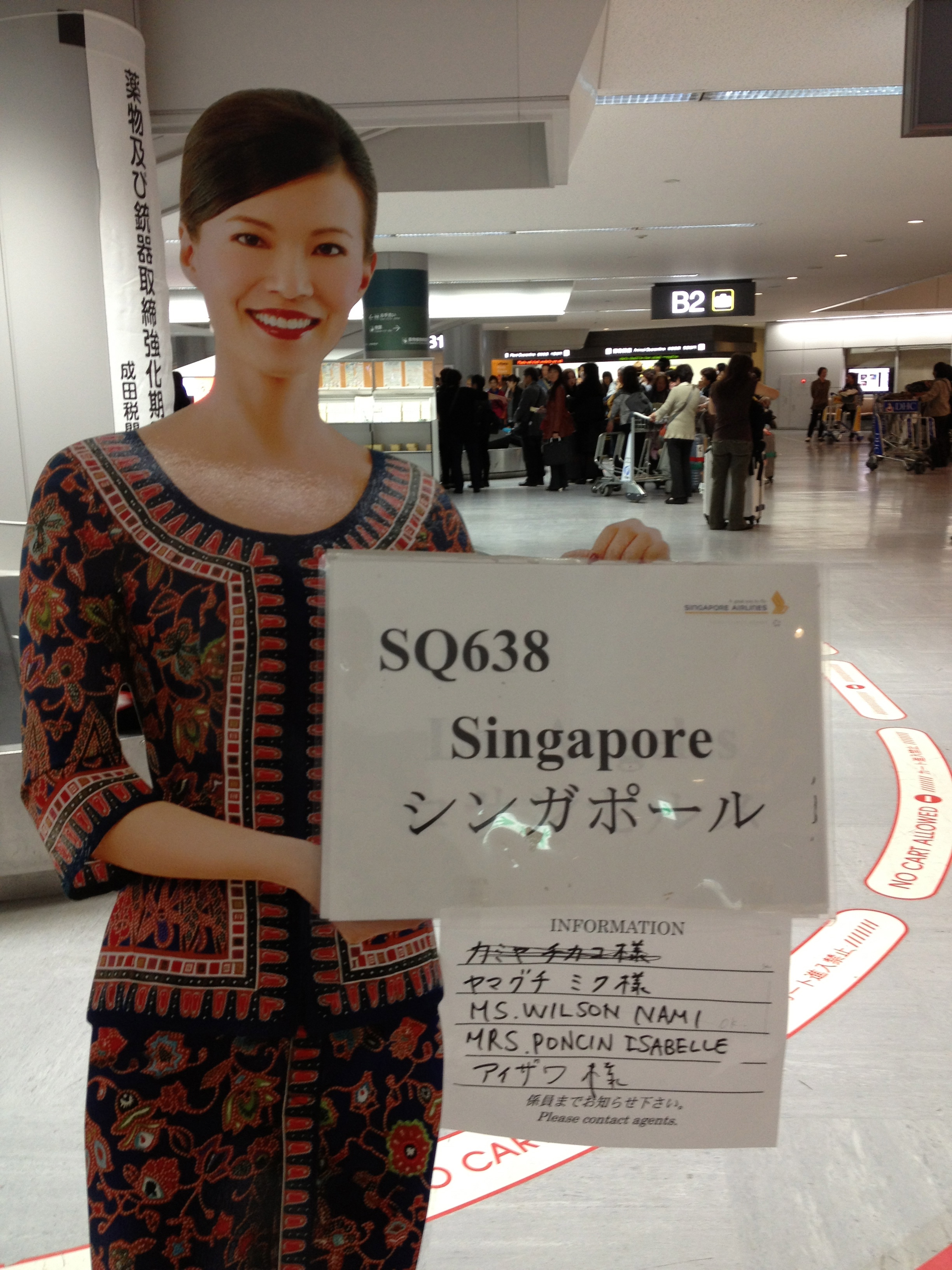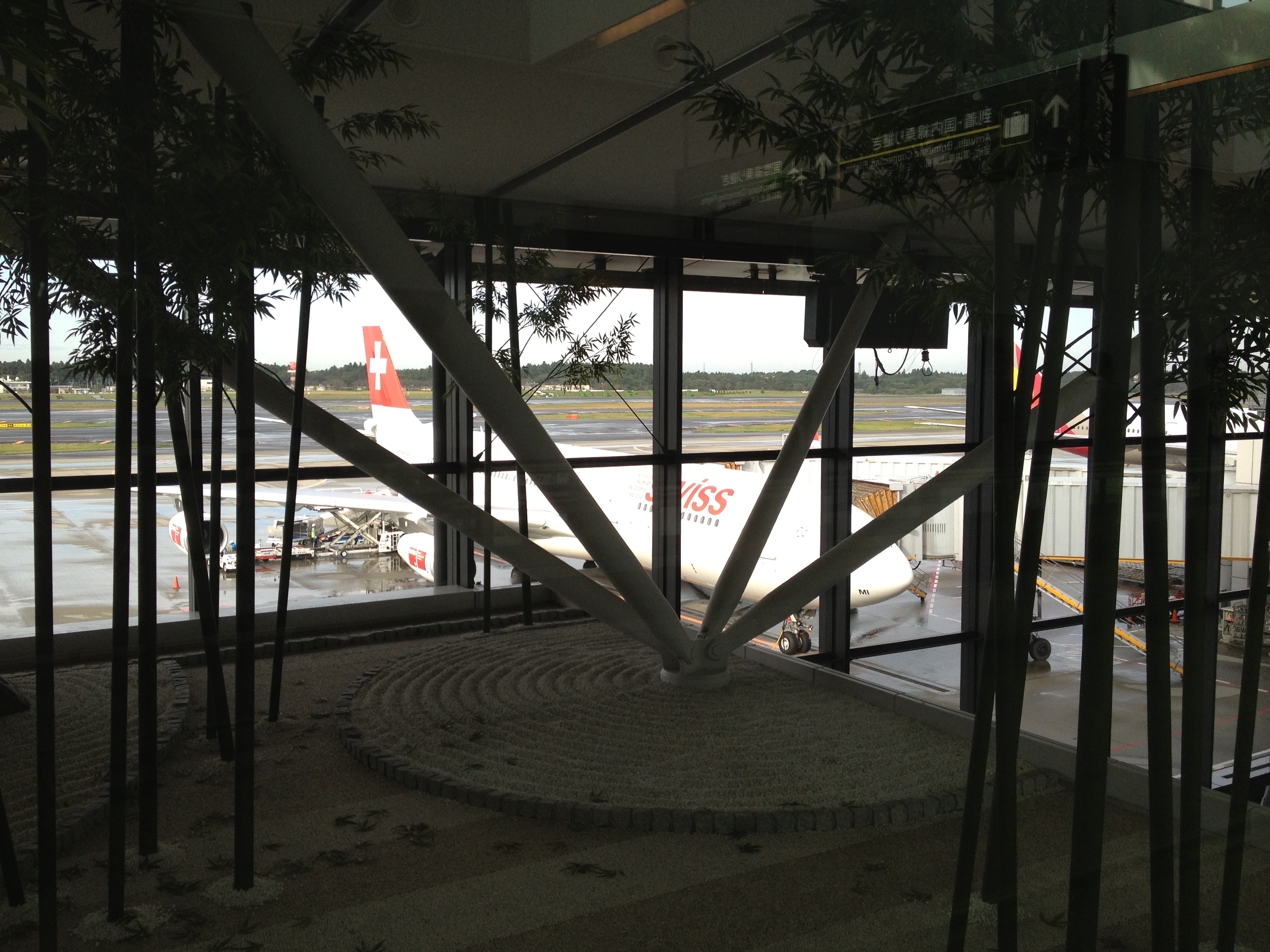 Un rêve de trente années devient réalité pour Yves ce matin ! Un vol de sept heures à bord d’un boeing 777 de Singapore Airlines nous transporte à Tokyo, il est 7h40. Le paysage à l’approche de cette grande capitale de près de 33 millions d’habitants nous ferait presque penser à la Belgique, un pays plat avec beaucoup de verdure et de champs de cultures. Nous nous posons à Narita, l’aéroport qui est le plus éloigné de la ville. La file et les démarches d’immigration se passent assez rapidement, avec prise d’empreintes et de photo ; déjà nous constatons l’efficacité et la gentillesse du personnel qui aiguille la foule. Un vol Swiss s’est posé près de nous ; les gens qui en sortent sont habillés plus chaudement. La valise récupérée ainsi que ma petite carte Victorinox qui n’a pas pu voyager avec moi (un joli panneau Mrs Poncin m’attend près des tapis roulants !), les douaniers nous apposent un joli Visa et l’aventure peut commencer.