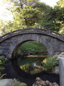 Nous tombons littéralement sous le charme du parc Koishikawa Korakuen, le plus ancien parc de Tokyo, dessiné au 17ème siècle et dont les paysages représentent en miniature des lieux japonais et chinois ; son pont de pierre en forme de demi-arc dont le reflet dans la rivière crée une vision de la lune, son étang avec une île où trône un héron, ses petits chemins sillonnant dans une végétation variée, ses jardins à thème dont une petite rizière, ses lanternes, sanctuaires et temples … un paradis au milieu des buildings.