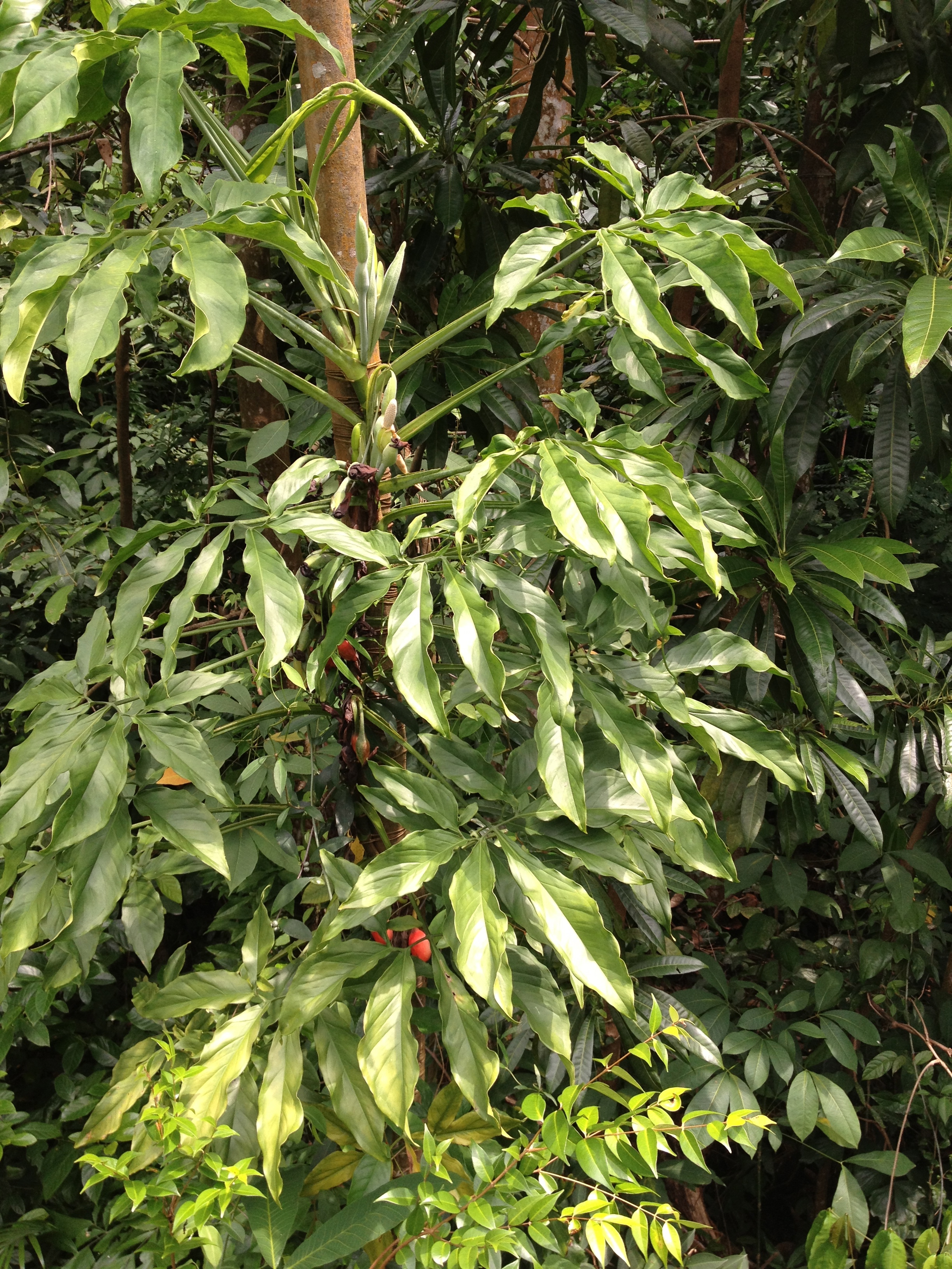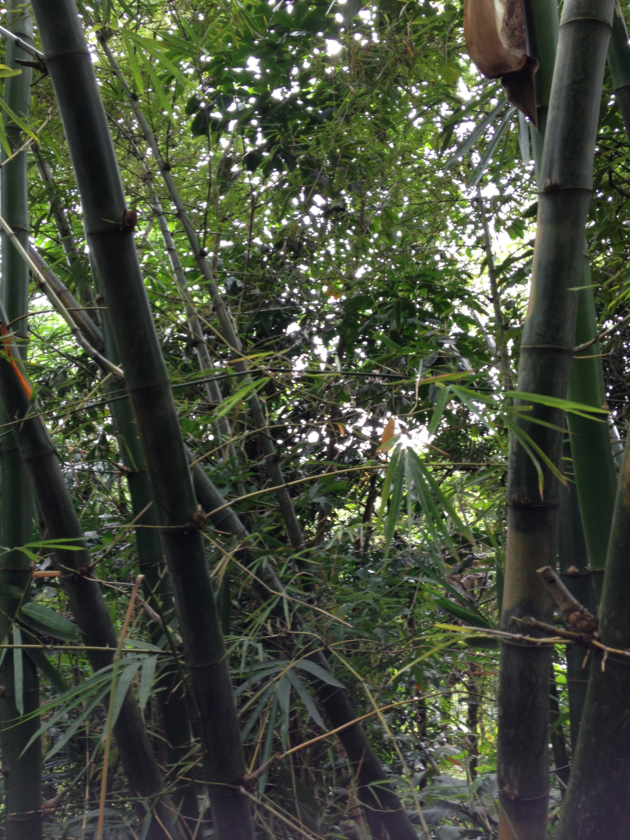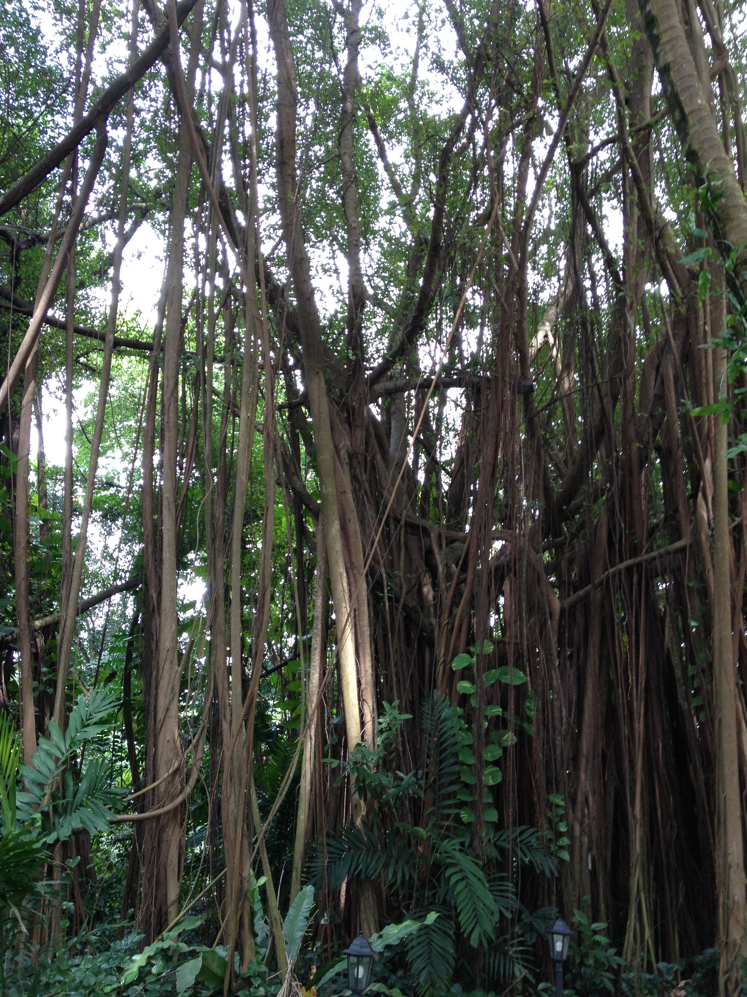 J’entame ensuite la partie la plus spectaculaire, la Forest Walk ; un chemin de structure métallique, sur plus d’un kilomètre, perché à la hauteur de la canopée de la forêt (18 mètres du sol par endroits) me plonge en pleine nature, avec ses parfums et ses bruits – et je ne me prive pas non plus d’en faire en marchant. Je croise peu de promeneurs, j’admire les grands arbres de caoutchouc, les bambous géants, les palmiers, les bois de santal aux feuilles découpées – j’aime particulièrement le Simpoh Air de Malaisie dont la fleur jaune ne dure qu’un jour, laissant place ensuite à un fruit qui éclate comme une chair rouge écarlate.