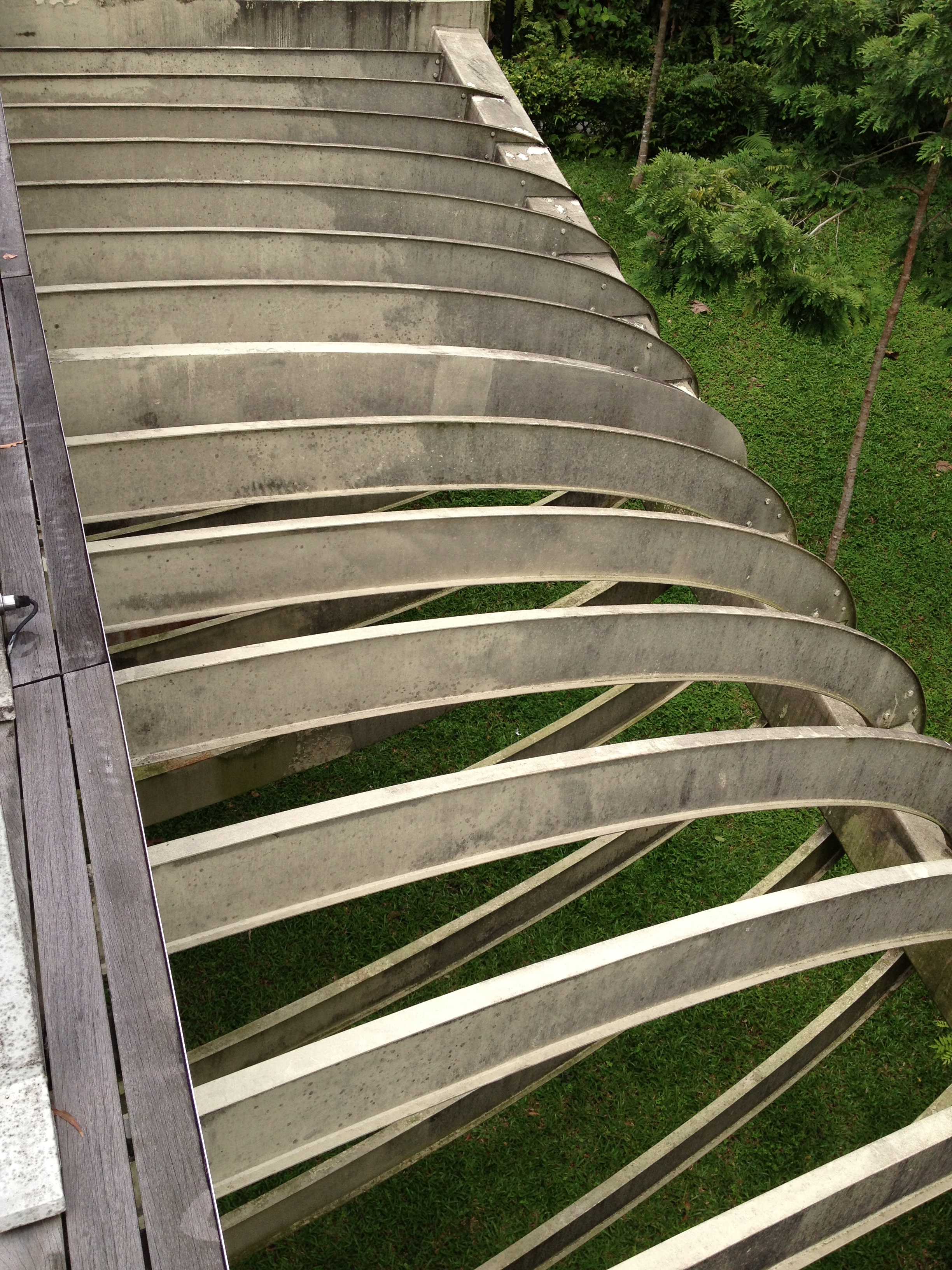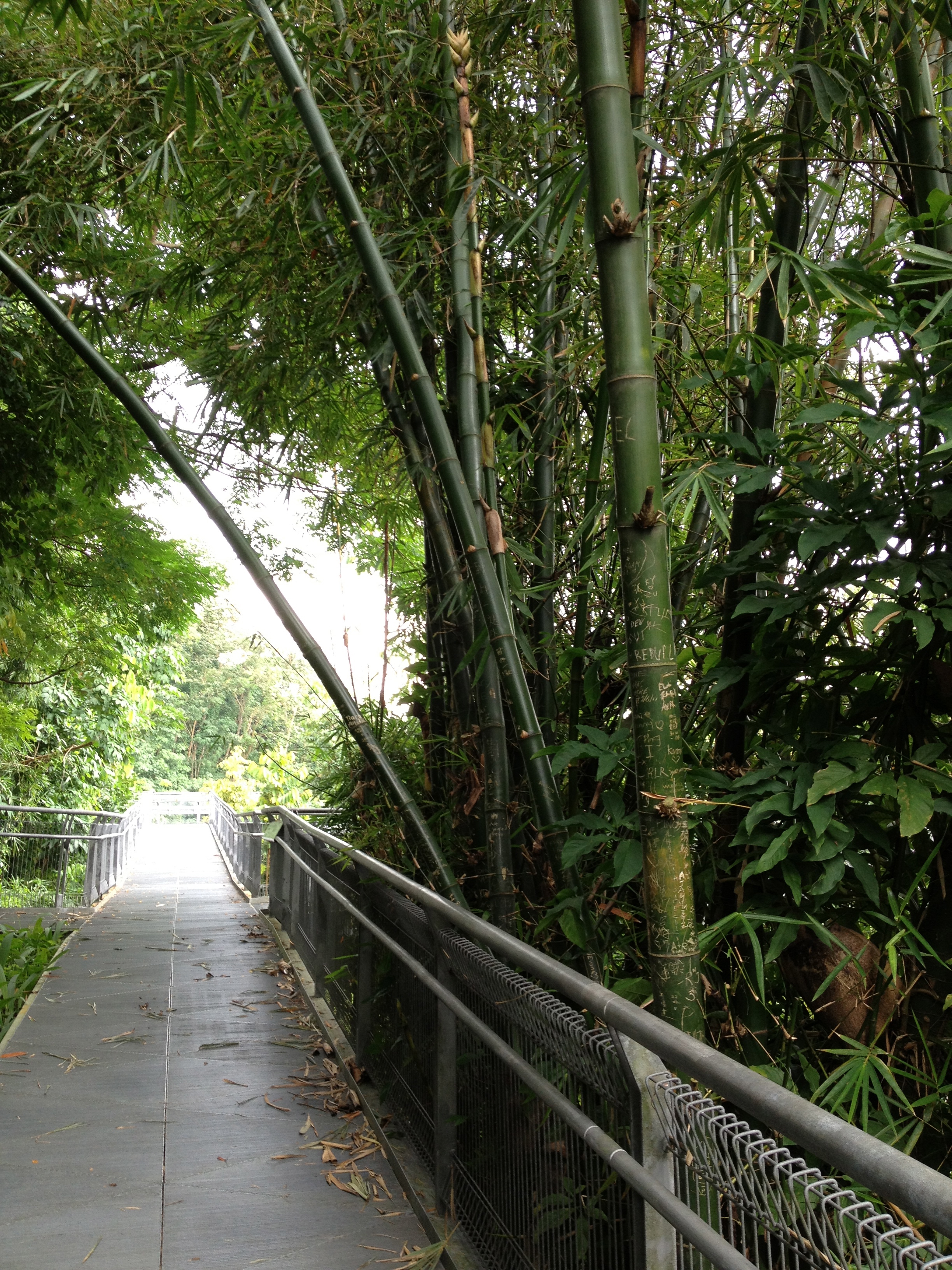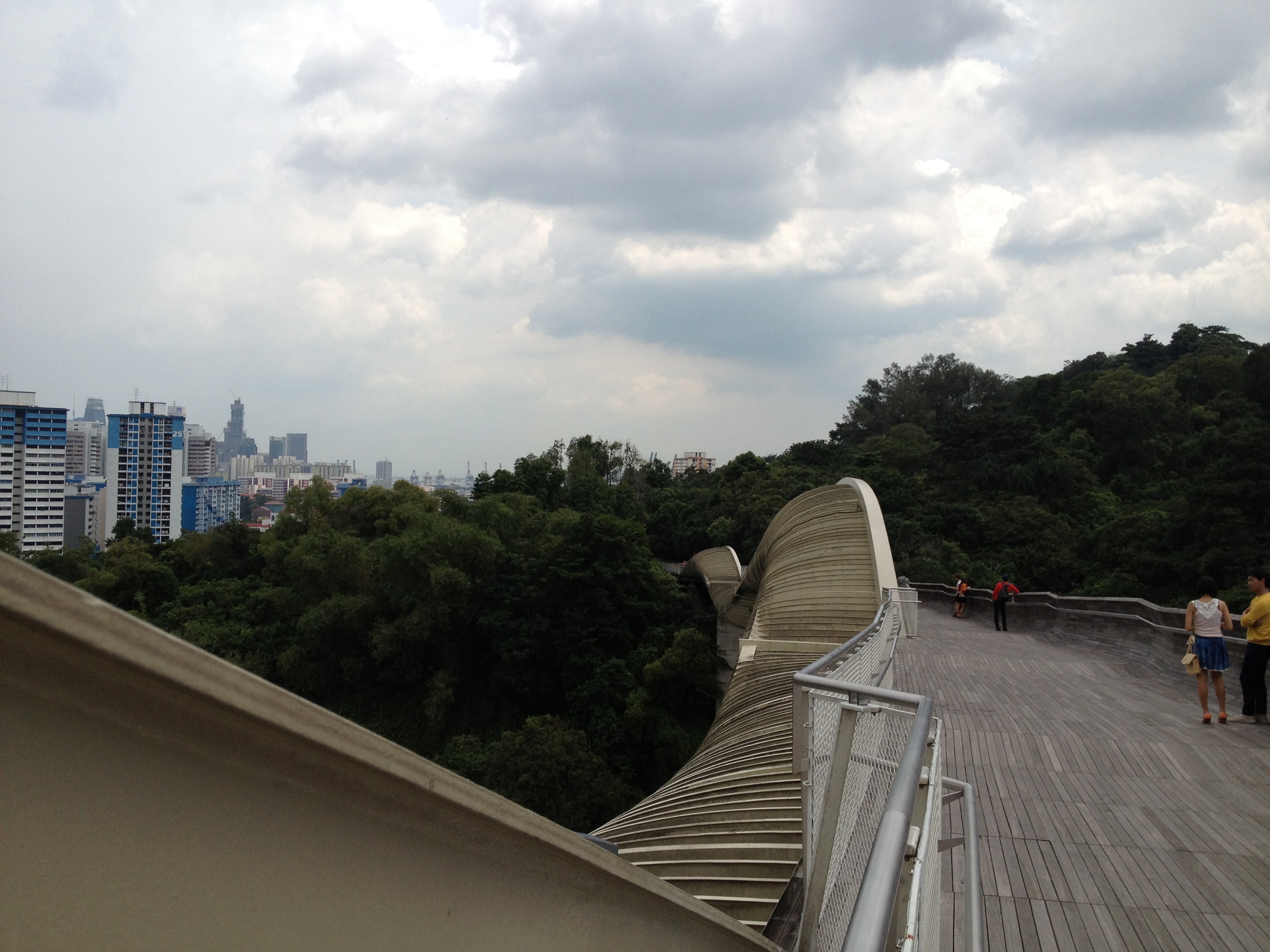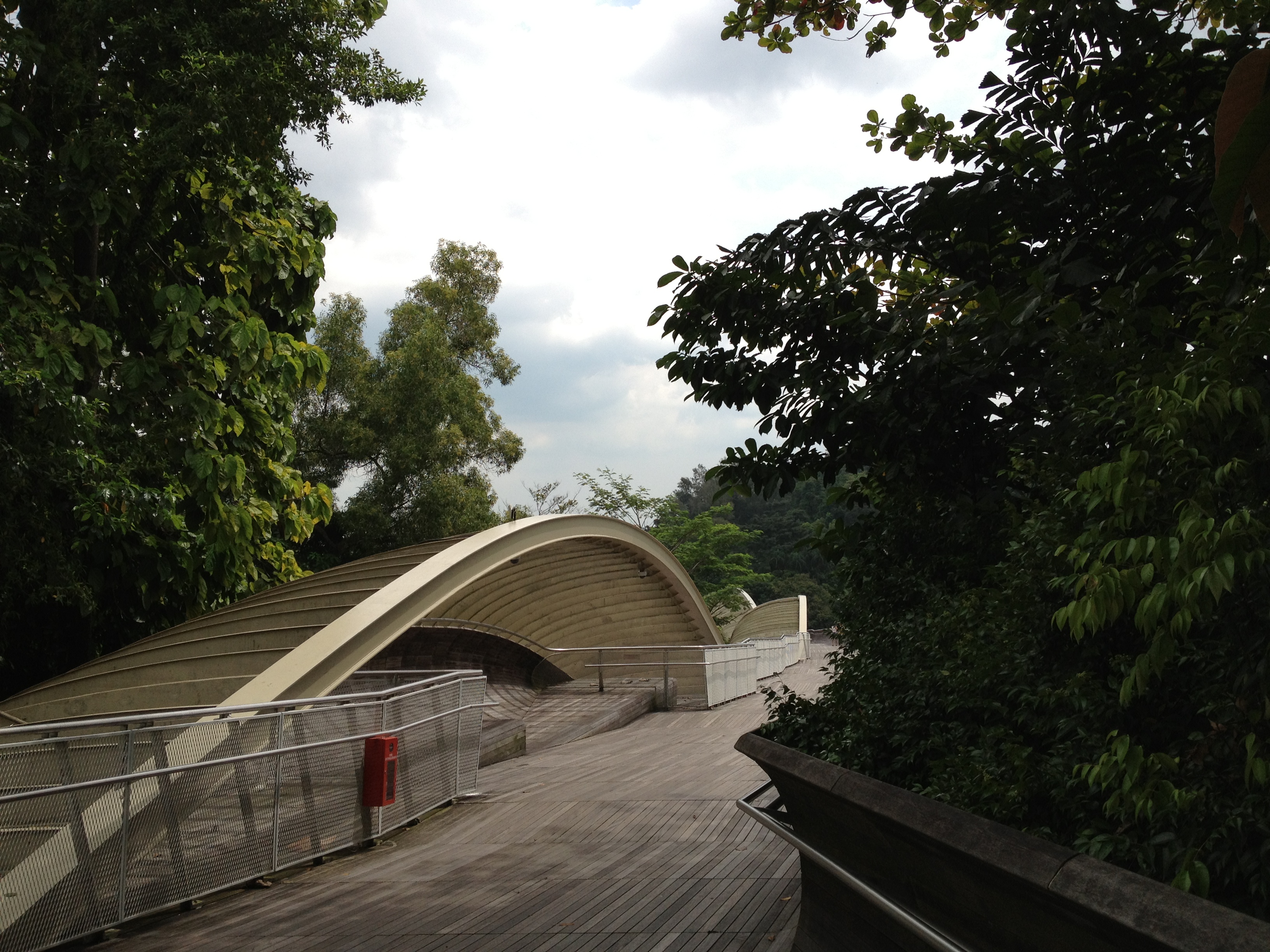 Je me reconnais dès que j’arrive au parking où notre exploration de Mont Faber il y a quelques jours avec Yves avait pris fin; redécouvrir de jour le pont fabuleux d’Henderson Waves, tout revêtu de bois, qui ondule tel une grosse chenille, à 36 mères au-dessous de la route avec la jungle d’un côté et de l’autre au loin la mer.