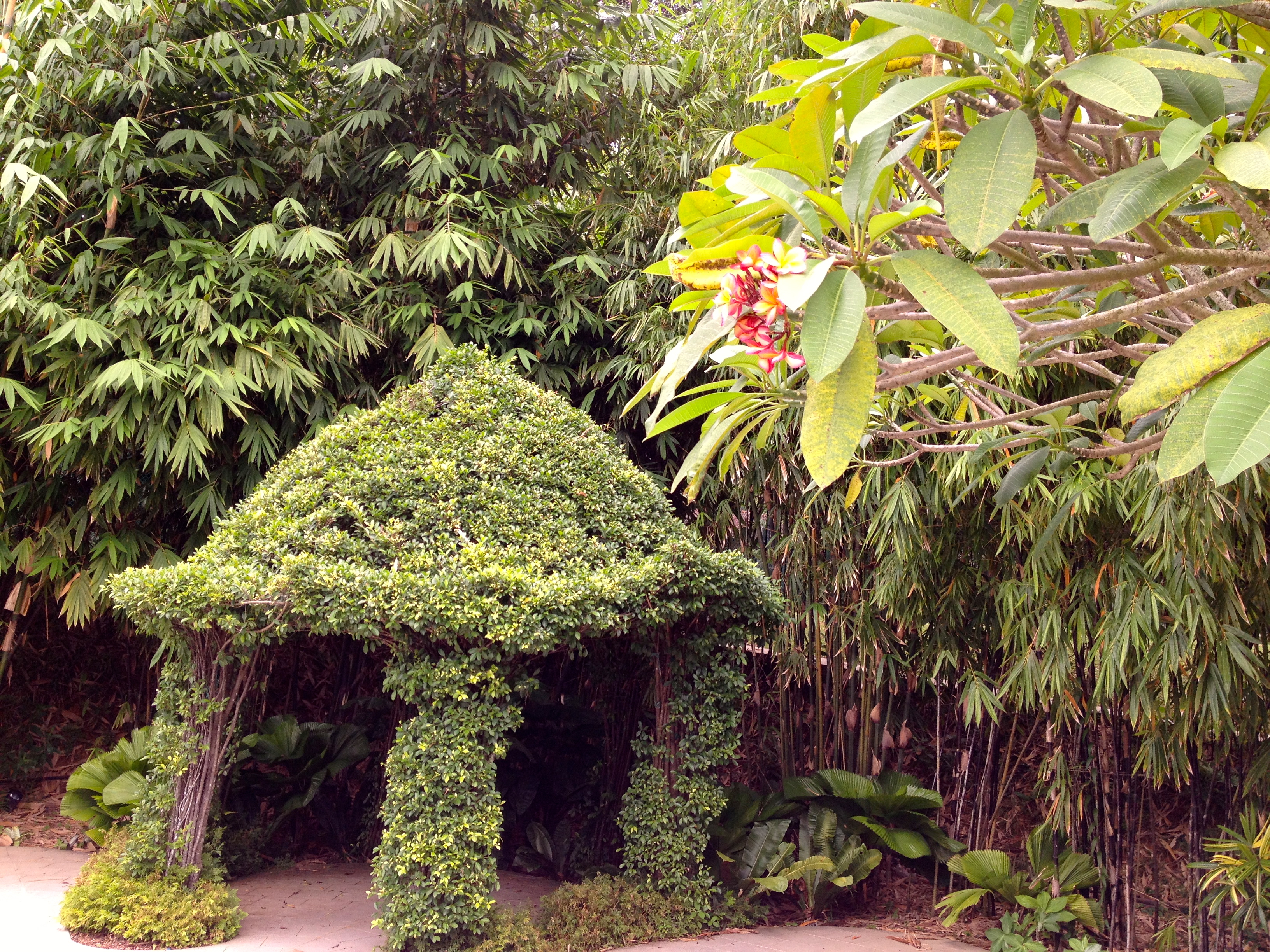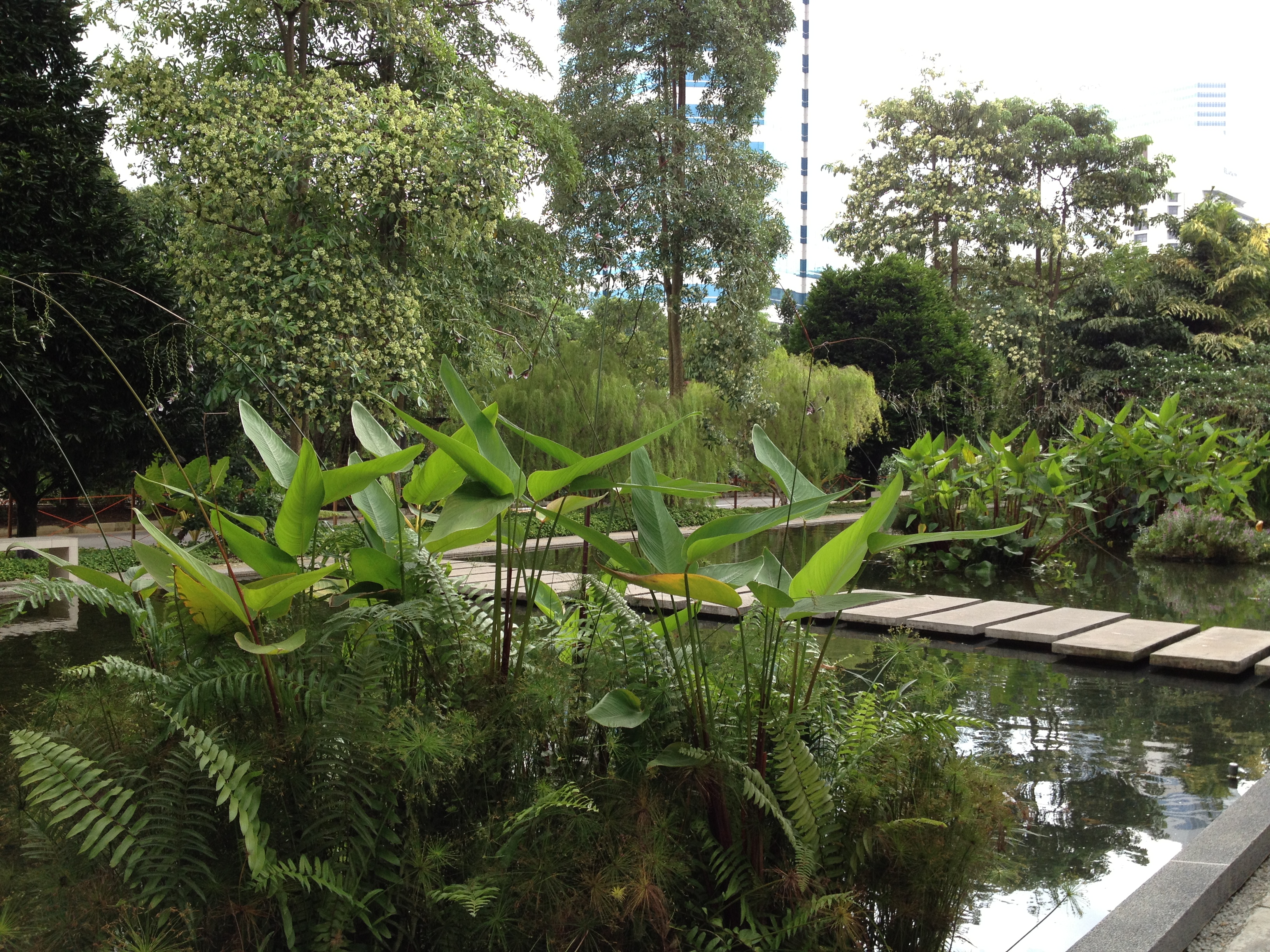 Ici que faire ? Je me sens encore en forme pour poursuivre et je rebrousse chemin pour me retrouver au point de départ sur Alexandra. En partant cette fois dans l’autre direction, je prends plaisir à sillonner dans Hort Park, dont le nom est le raccourci de ‘Horticultural Park’, soit un hub pour les amateurs de jardinage. Le site doit être assez récent ; une terrasse en bois domine à l’entrée, devant un plan d’eau débordant, surplombant une alignée merveilleuse de petits coins de jardins à thème soigneusement entretenus. On y donne des idées pour l’arrangement d’un jardin balinais, d’un potager ou d’un verger, une cour intérieure de style Peranakan ou de tendance japonaise. Un vrai plaisir de flâner dans ce milieu aux fleurs, aux plantes, aux arbres, aux couleurs et parfums très variés.