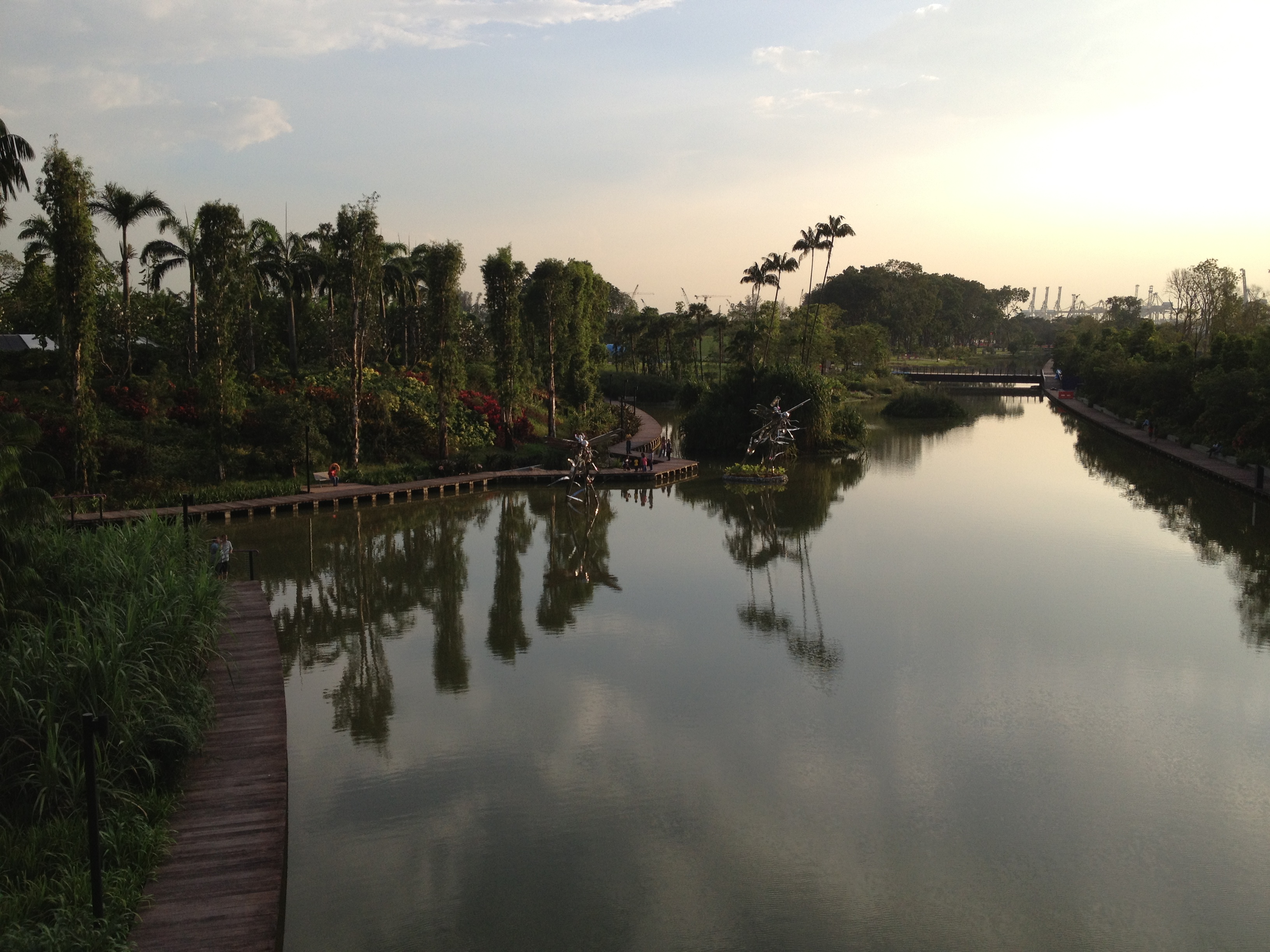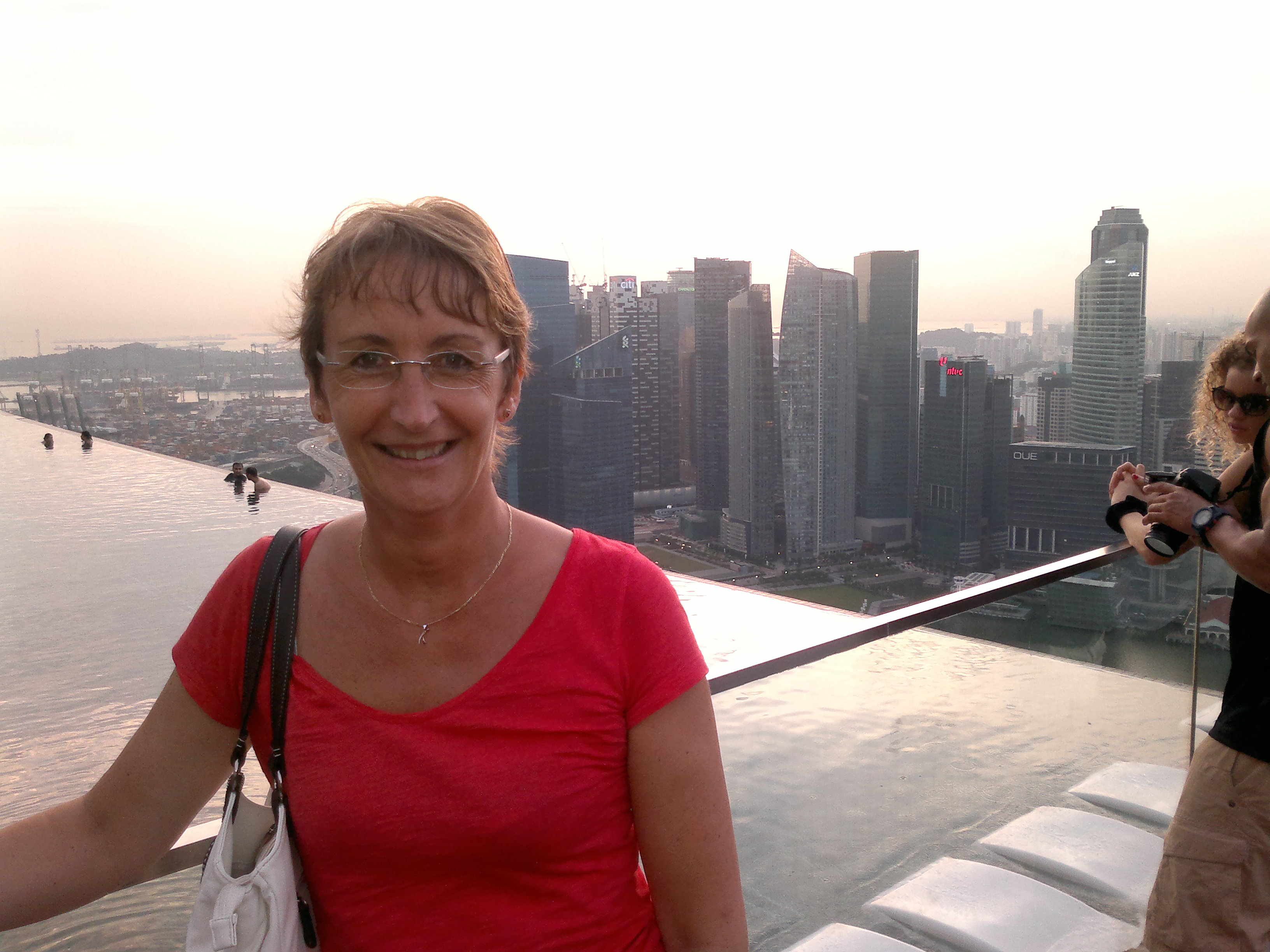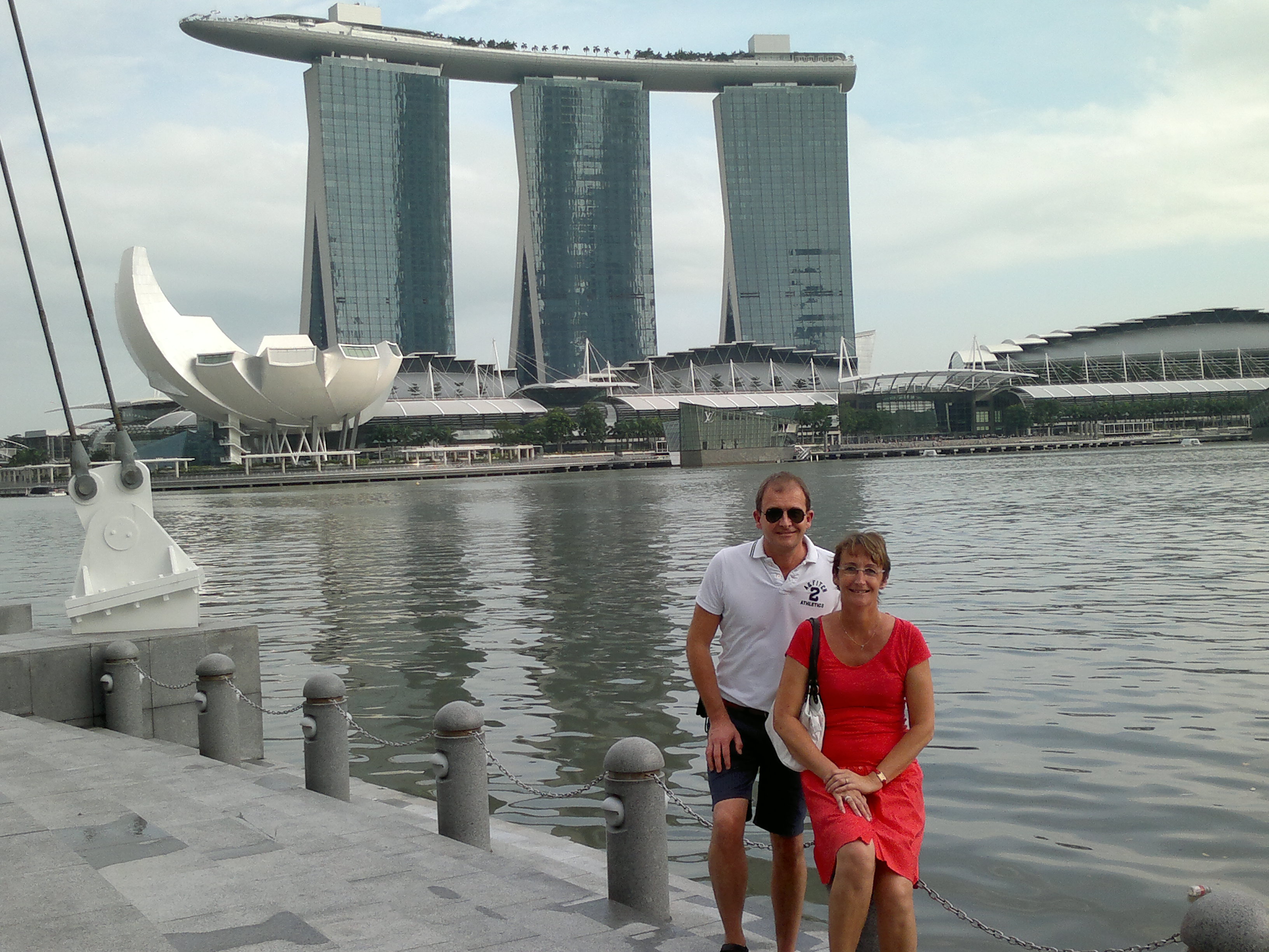 Le pont tubulaire permet de superbes photos sur le quartier de la finance, le musée en fleur de lotus, la baie et Marina Bay Sands que Olivier voit plutôt comme un TGV que comme un bateau!