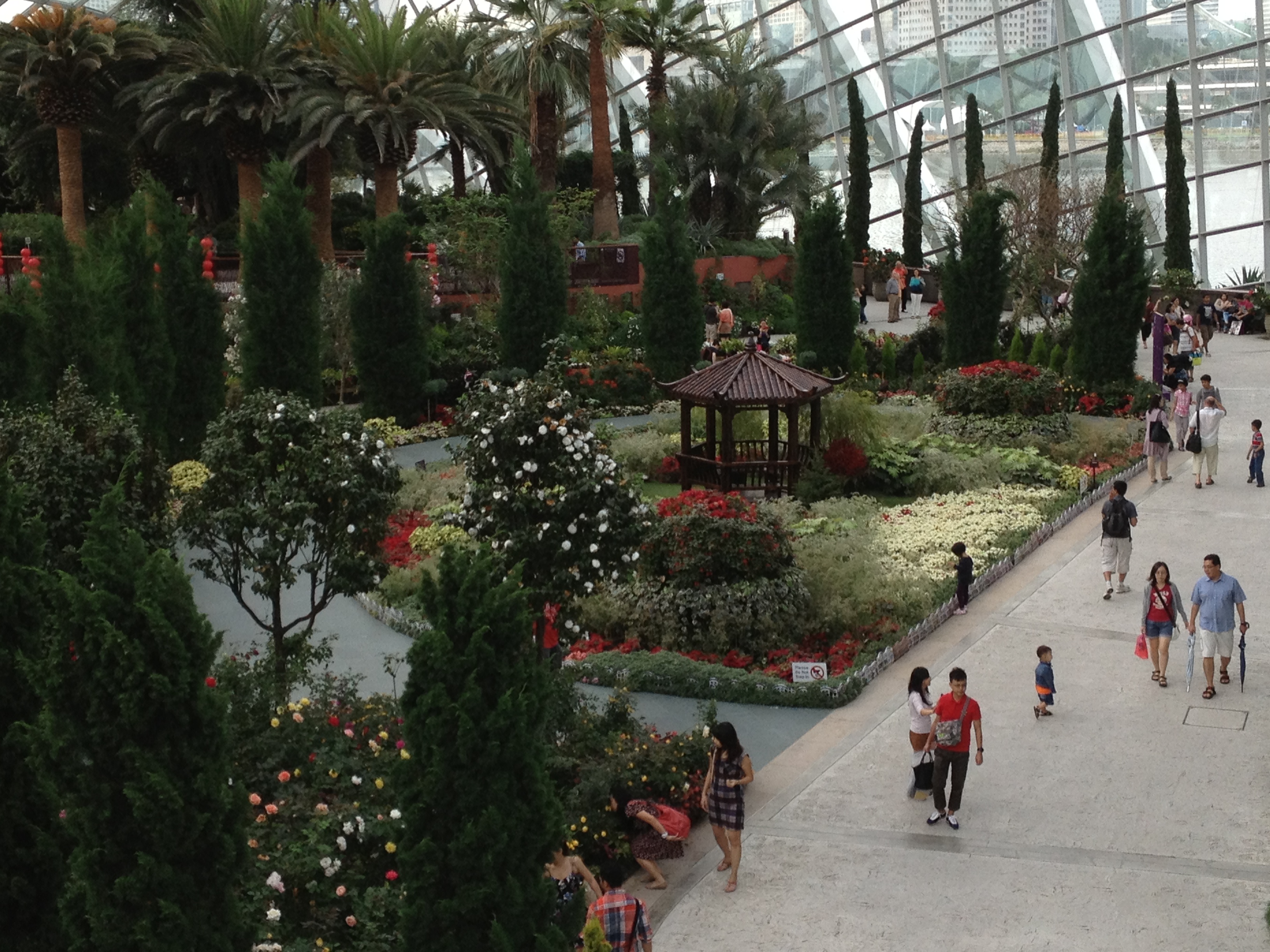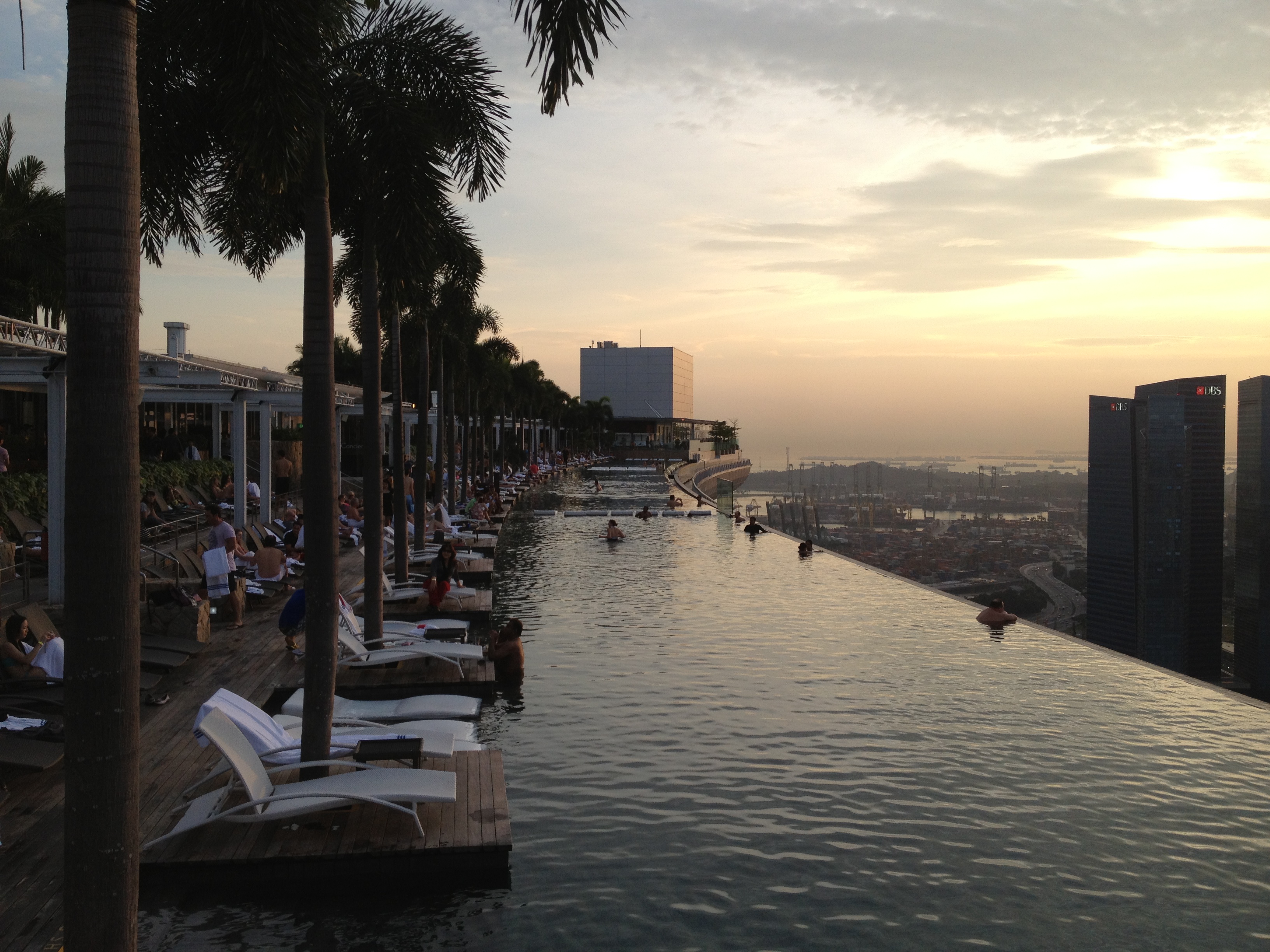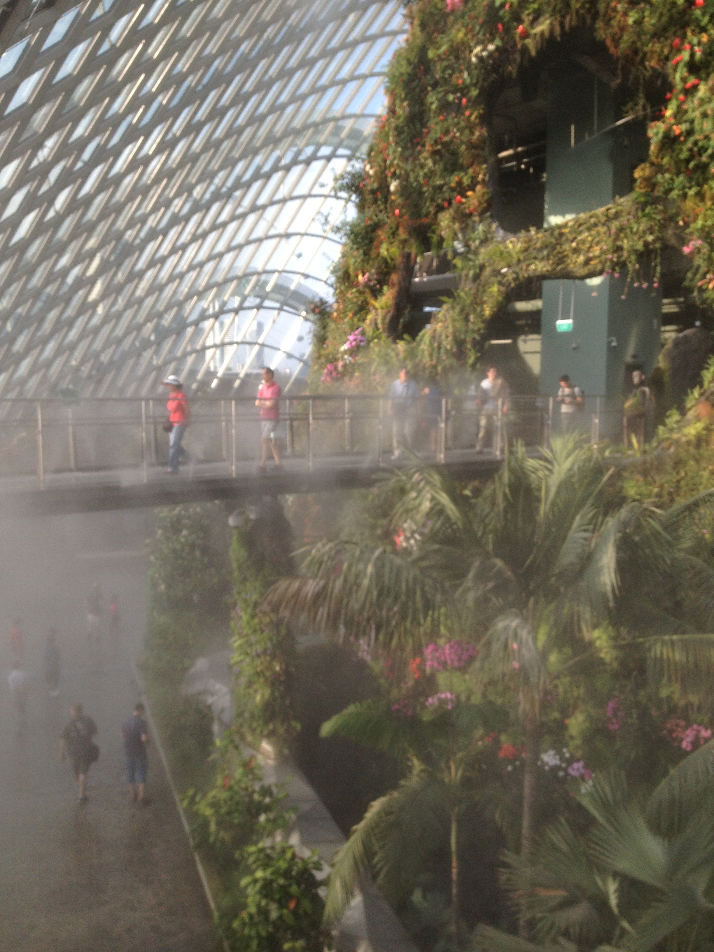 Le pont tubulaire permet de superbes photos sur le quartier de la finance, le musée en fleur de lotus, la baie et Marina Bay Sands que Olivier voit plutôt comme un TGV que comme un bateau!