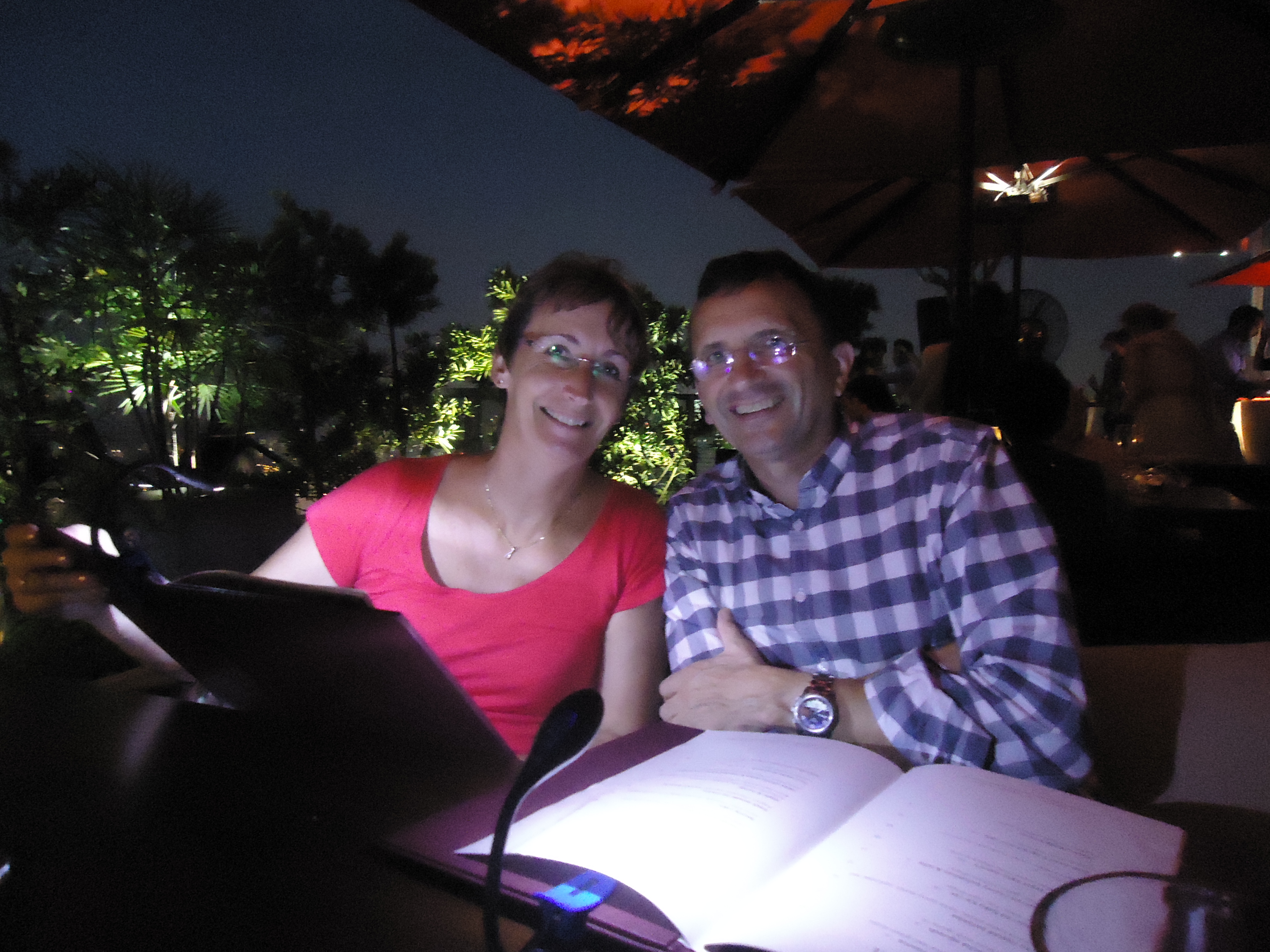 Quelques photos magiques au coucher du soleil depuis le Club Lounge et un repas où selon la coutume on partage tous les plats posés au centre de la table. Magique, fantastique!