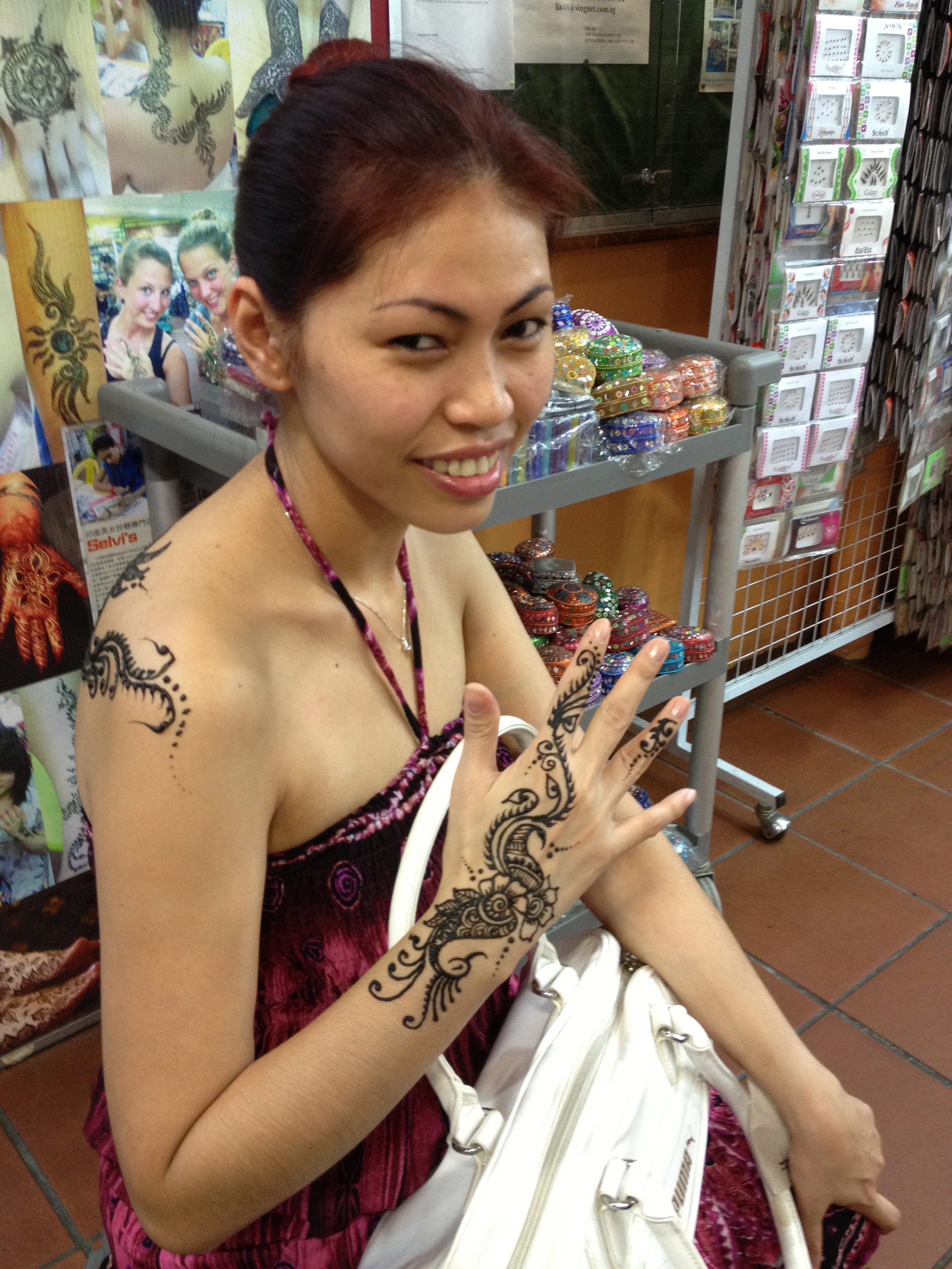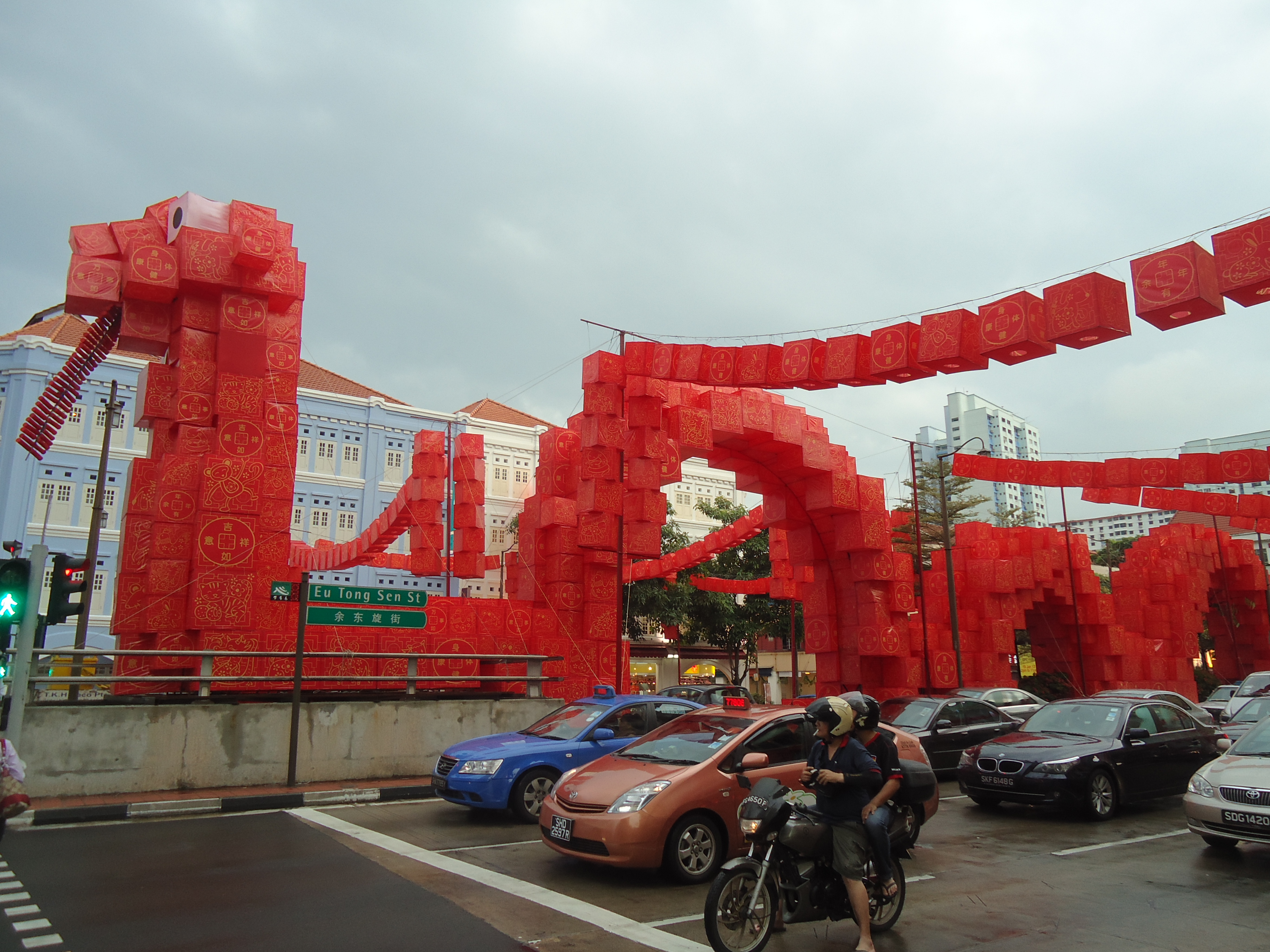 Il part seul rayonner en ville, me laissant du temps pour des mails et des contacts. Nous nous retrouvons début d’après-midi pour un tour en bus City SightSeeing, depuis le Raffles vers Chinatown, qui se prépare pour le Nouvel An chinois, pour un premier arrêt avec la visite du temple Bouddha Thoot Relic et ensuite vers Little India où la pluie décide de freiner un peu notre enthousiasme. Les échoppes extérieures de fruits et légumes, les soieries multicolores, les marchands d’or, la célèbre tatoueuse Vanessa … nous amènent vers Mustafa et vive les arcades des shophouses qui nous permettent de ne pas être trop trempés. Il est aisé de deviner le rayon qu’Olivier cherche chez Mustafa … et il le trouve!