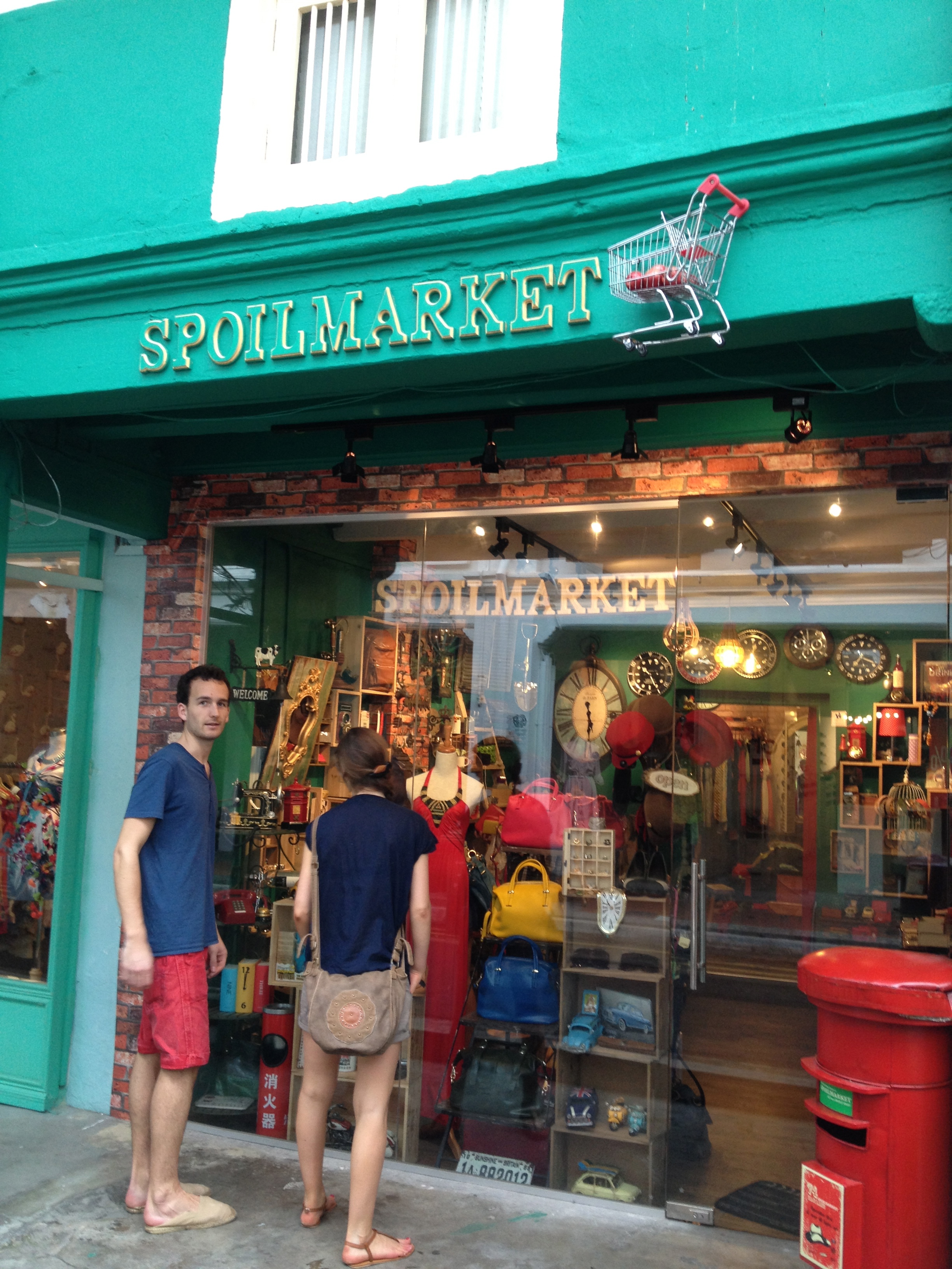 Nous nous protégeons de la pluie sous les arcades de Chinatown où le monde s’accumule pour les derniers achats, de décorations entre autres … le rouge est la couleur dominante! Dans le planning de la journée, j’avais pensé à un massage au Tan Dynasty mais c’est ici à Chinatown que nous nous laissons entraîner à l’étage d’une maison toute étroite pour un moment de détente … massage des pieds pour les filles et Mathieu préfère lui le dos et la nuque, tandis que Yves nous attend sur une terrasse. Les masseuses sont sympathiques, papotent entre elles dans leur langue et cela nous berce … un vrai bonheur.