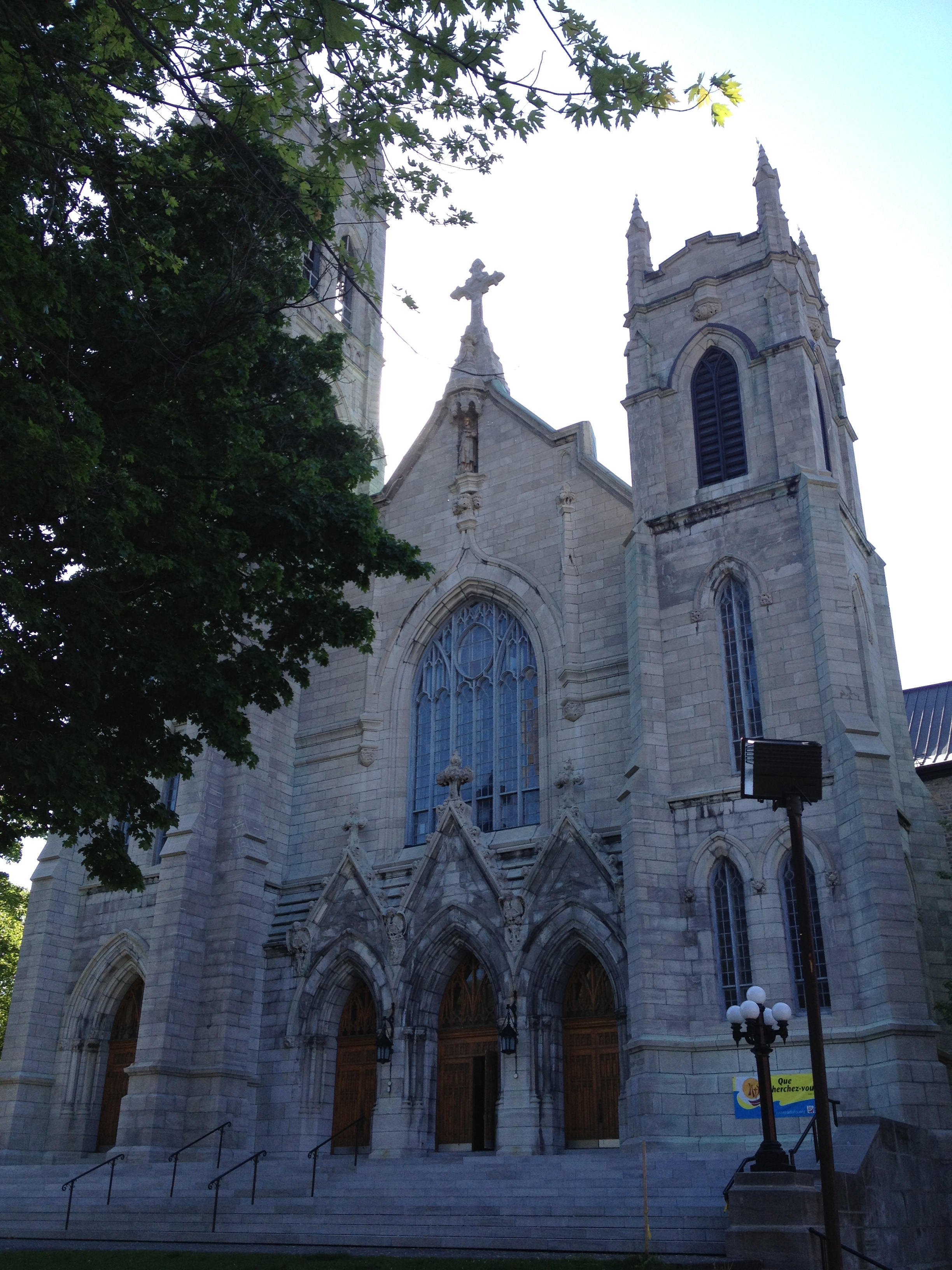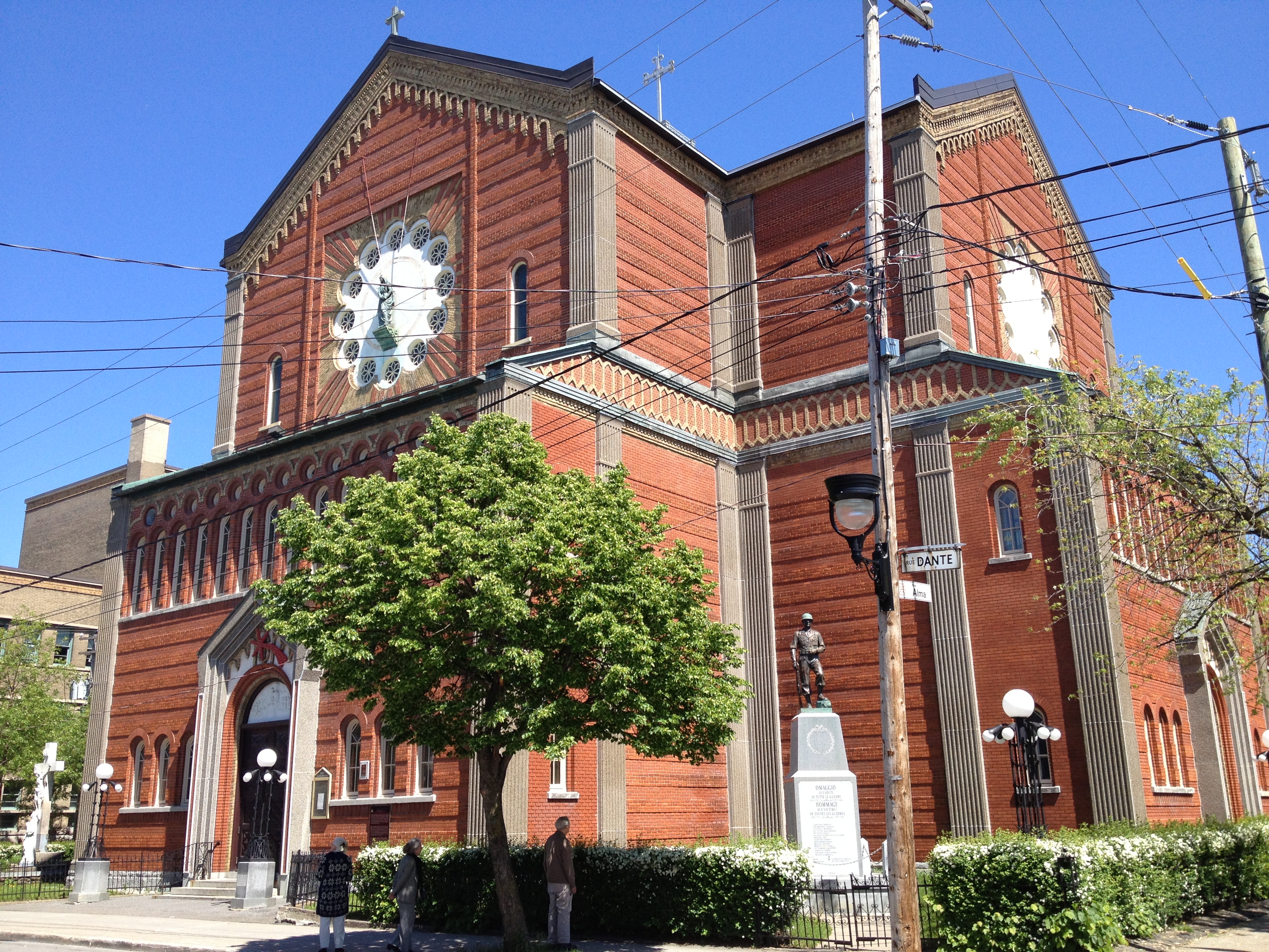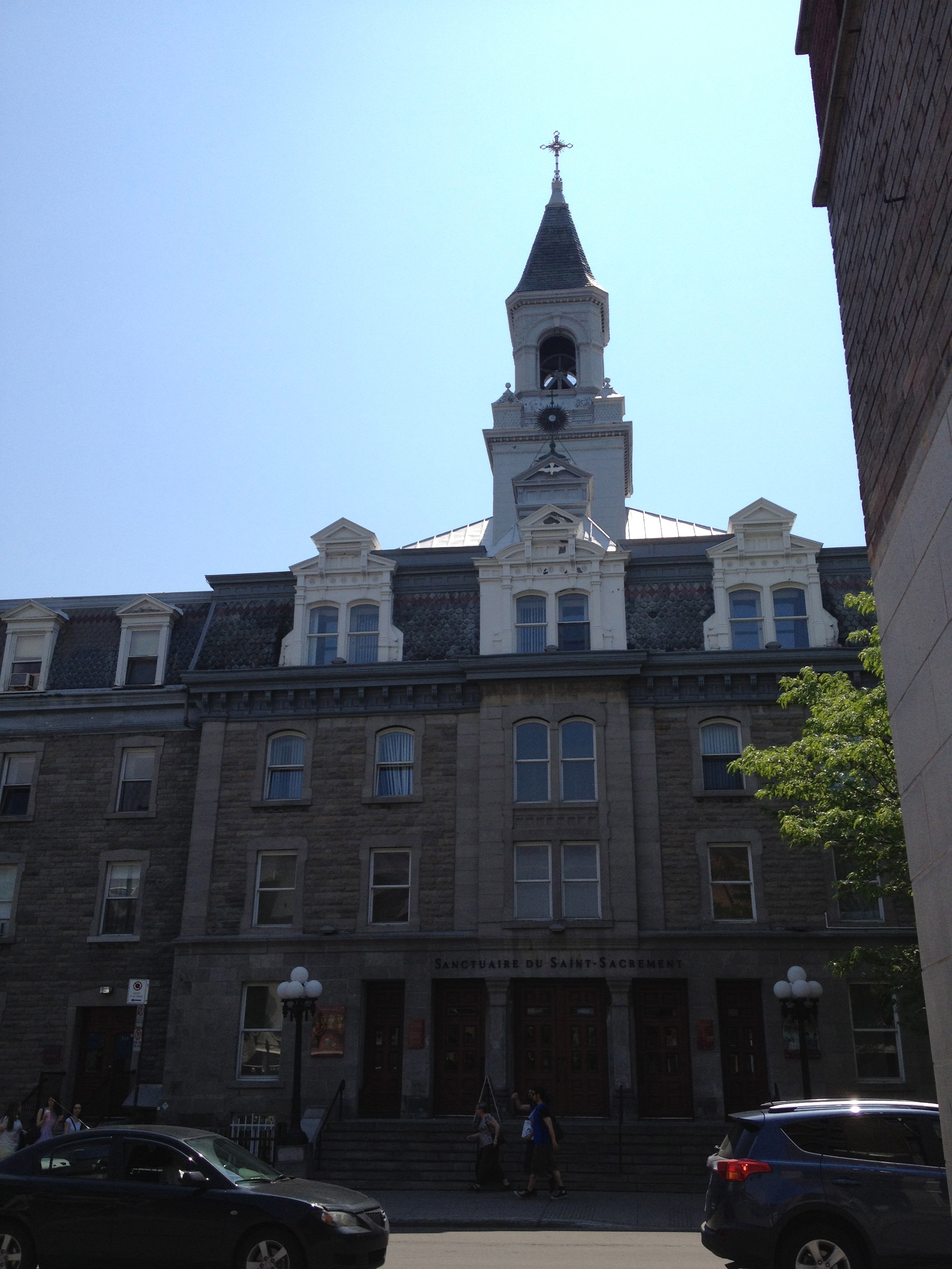 Deux églises imposantes sont sur mon parcours; l’église Notre-Dame-du-Saint-Sacrement dont la façade est un peu austère, on y accède, passée la première lourde porte, par une rampe d’escaliers et le décor intérieur est original, coloré, incitant à la prière devant l’exposition permanente de l’Eucharistie. L’église St. Jean Baptiste est un témoignage de la forte communauté ouvrière catholique du Plateau à la fin du dix-neuvième siècle mais cette église sera la proie des flammes et a dû être reconstruite; ses portes sont closes aujourd’hui et il me semble qu’elle est devenue un lieu pour des concerts. Il y a tant d’églises dans la ville et de moins en moins de pratiquants qu’elles sont rachetées et trouvent une deuxième vie, transformées en bibliothèque, en condos ou même en centre gym-Spa!