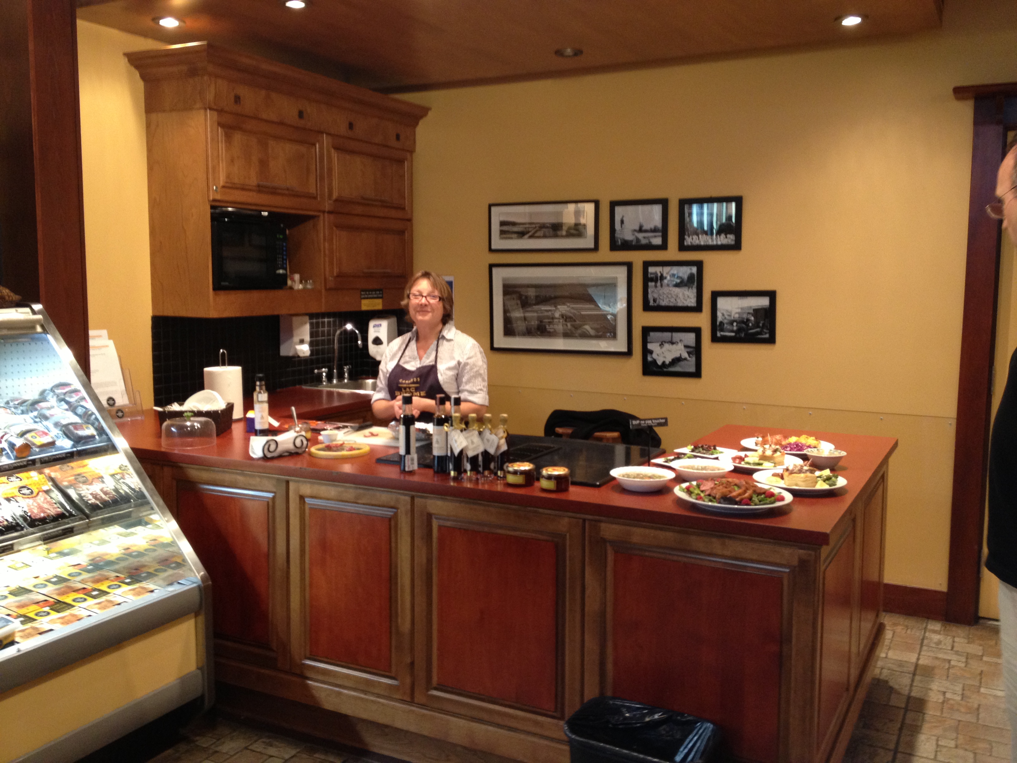 Nous sommes au bord du lac de Brome, où Alain a déjà couru un demi-marathon et connu pour son élevage de canards. Que de longs hangars aux alentours de la jolie petite boutique où nous craquons toutes les deux pour un beau magret, du foie gras, de la sauce Carminée aux pommes. Avant de reprendre l’autoroute vers la ville, une halte pour un café dans le village Sutton; situé au pied des Monts Sutton qui culminent à 960 mètres, c’est le pied à terre des amateurs de ski sur ces montagnes qui offrent une vue à la ronde. Ces villages sont typiques avec les maisons dont les pignons sont recouverts de lattes de bois peint.