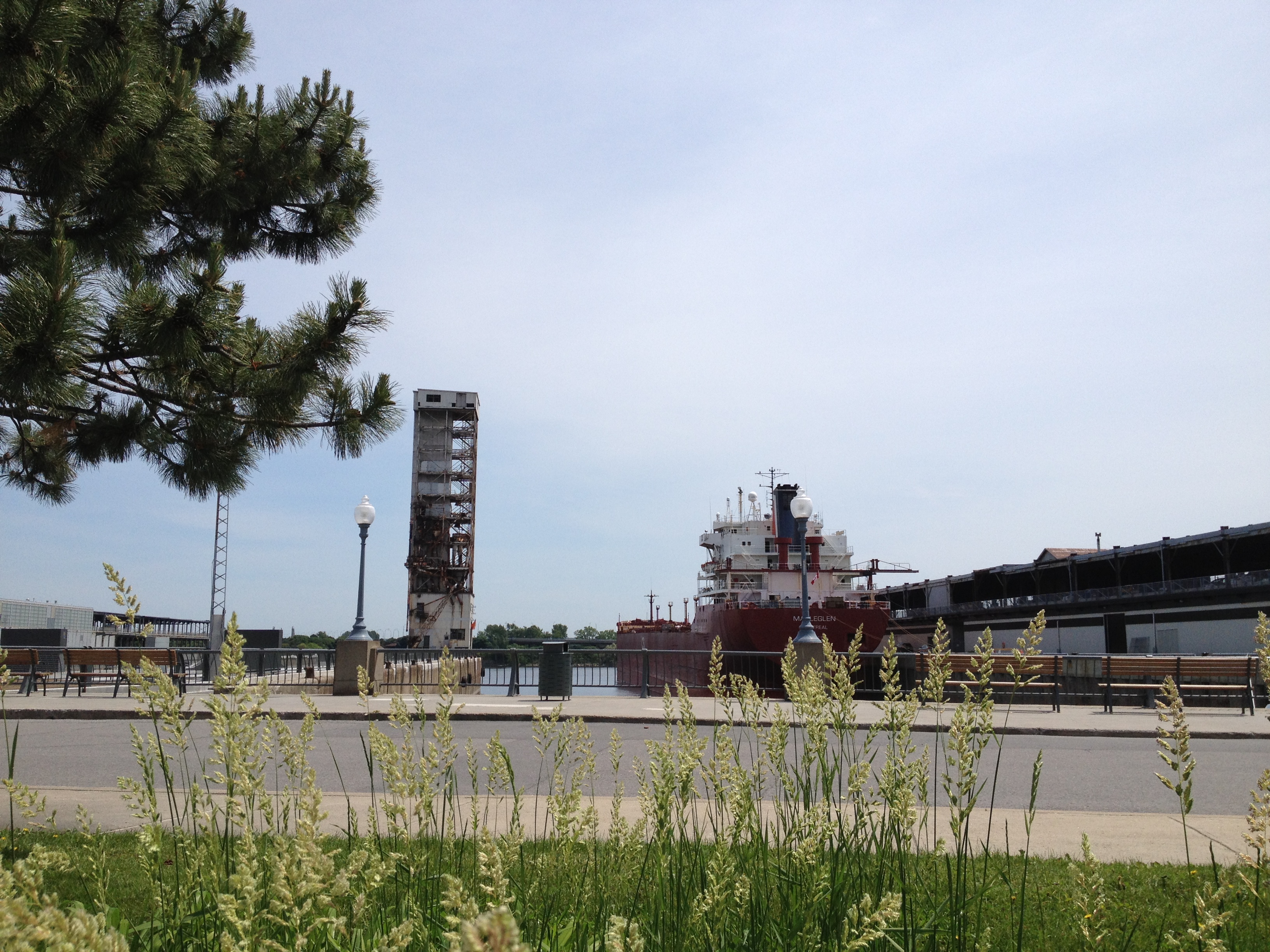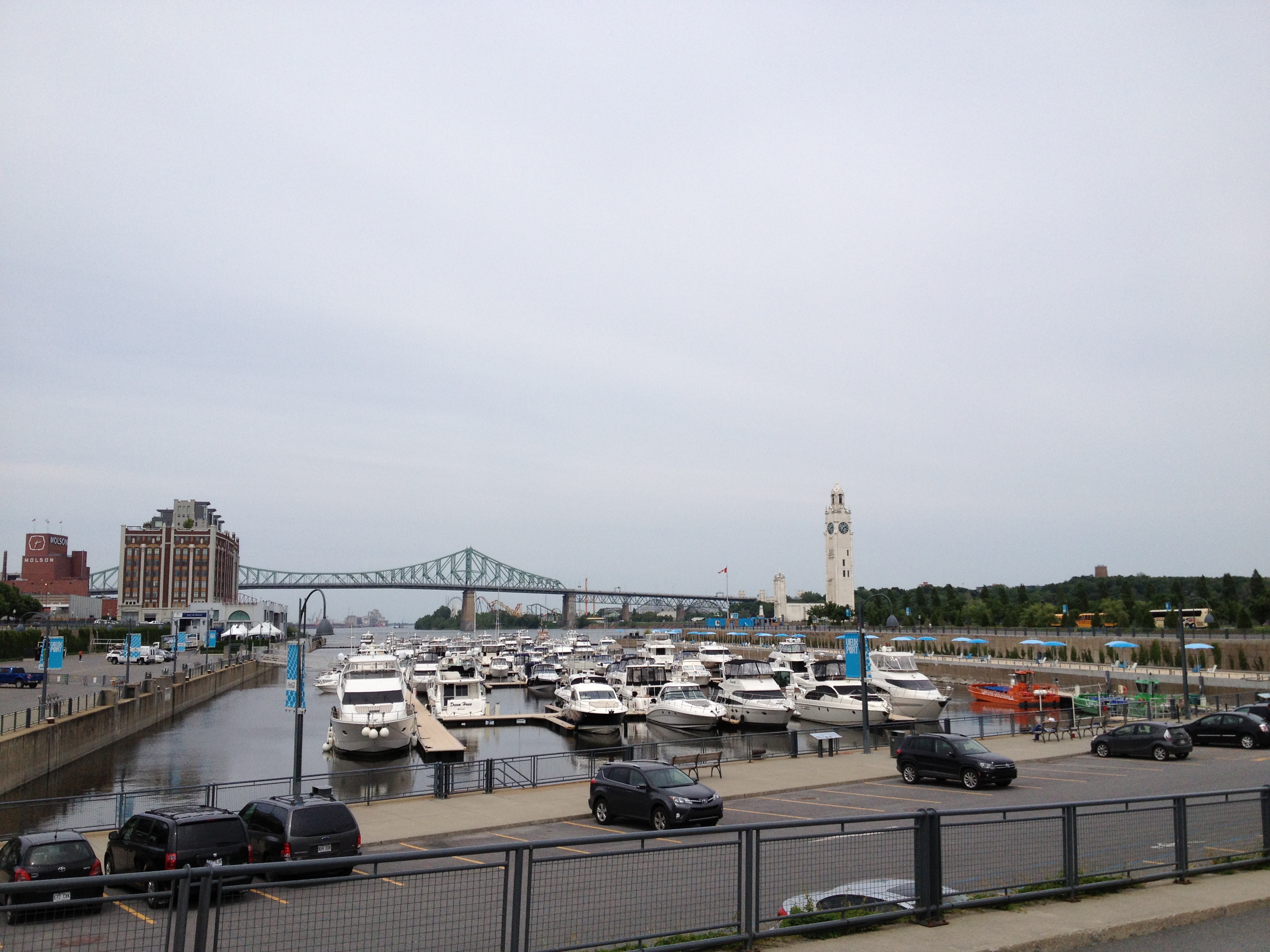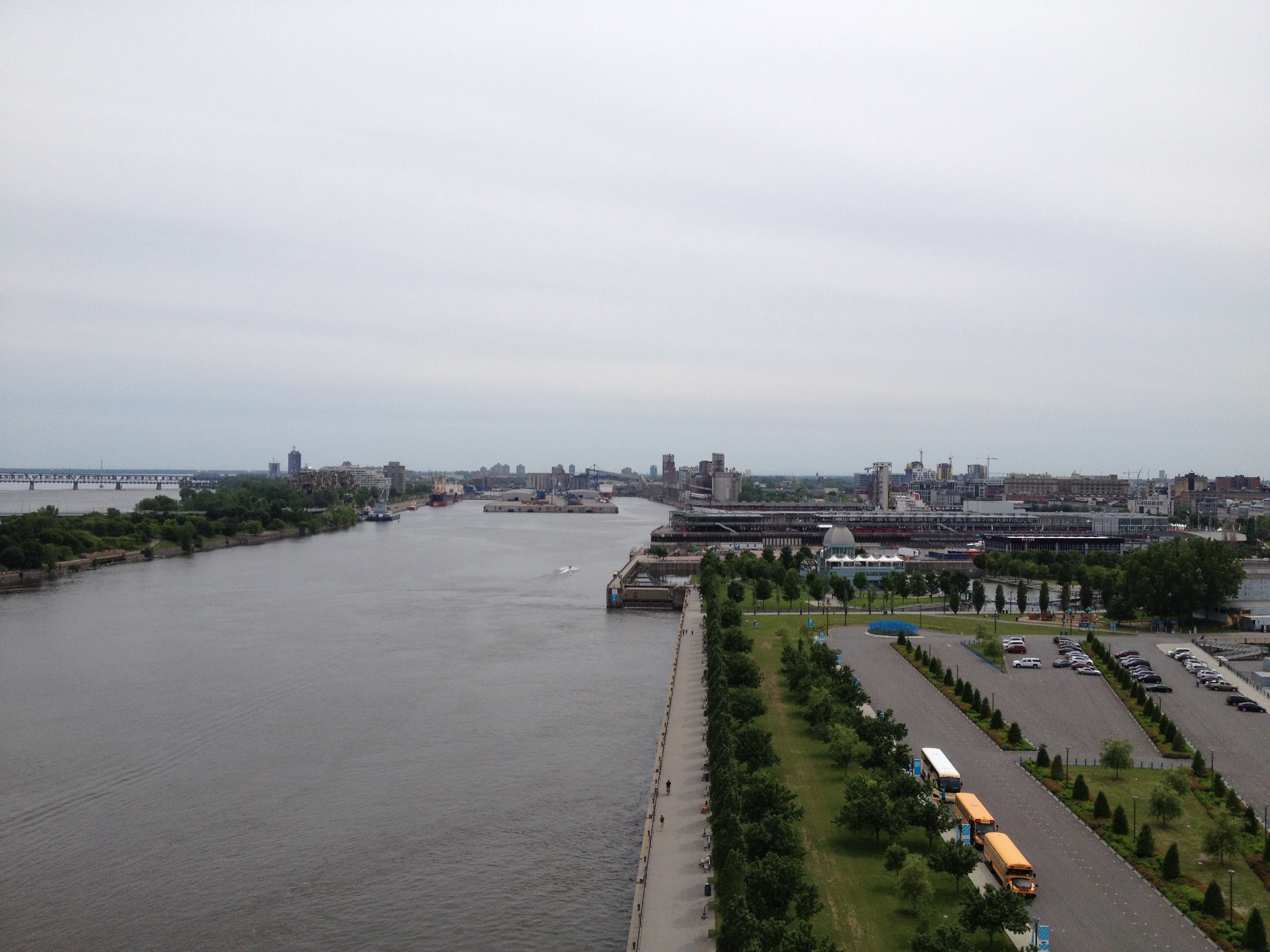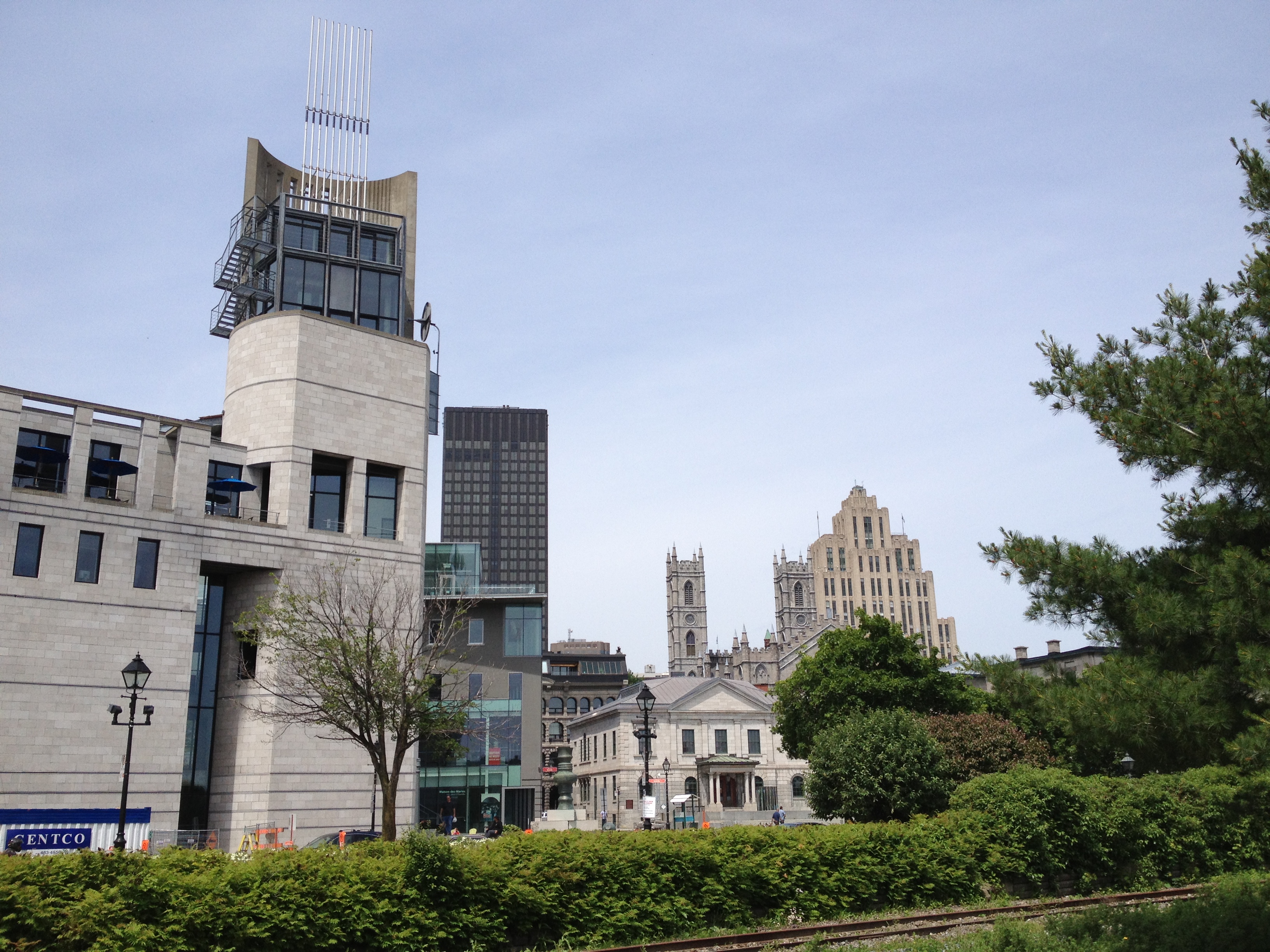 L’eau a joué un rôle très important dans l’histoire de Montréal, cette île où les premiers explorateurs ont mis pied à terre pour s’éloigner des courants rapides au large du St Laurent. Ce sont également ces rapides qui ont aidé à l’essor industriel par l’exploitation de l’énergie hydraulique et le canal de Lachine avec ses écluses, a permis de relier Montréal aux Grands Lacs à l’époque du commerce de la fourrure; il devient le premier port intérieur d’Amérique du Nord, s’étendant sur vingt-cinq kilomètres le long du fleuve. Depuis la fin des années 1970, des travaux de rénovation du quartier du Vieux Port sont à l’œuvre pour que soit expliquée l’histoire de ce lieu primordial, mais aussi qu’il devienne un port de plaisance et un endroit de détente et de culture. Ainsi des parcs, des étangs, des chemins de balade à pied, rollers ou vélos sont agréablement aménagés. Quelques quais sont restaurés, pour accueillir les ferries de croisières, également un centre des sciences avec le cinéma IMAX et sur le Quai des Convoyeurs, on peut encore voir la haute tour qui servait au transbordement des céréales provenant de l’Ouest canadien. La Compagnie du Grand Tronc comptait huit voies ferroviaires ici près du port, assurant la liaison maritime et terrestre pour le transport des marchandises, avant l’avènement du transit par camions; il reste aujourd’hui deux voies de ce chemin de fer, le long d’une piste cyclable.