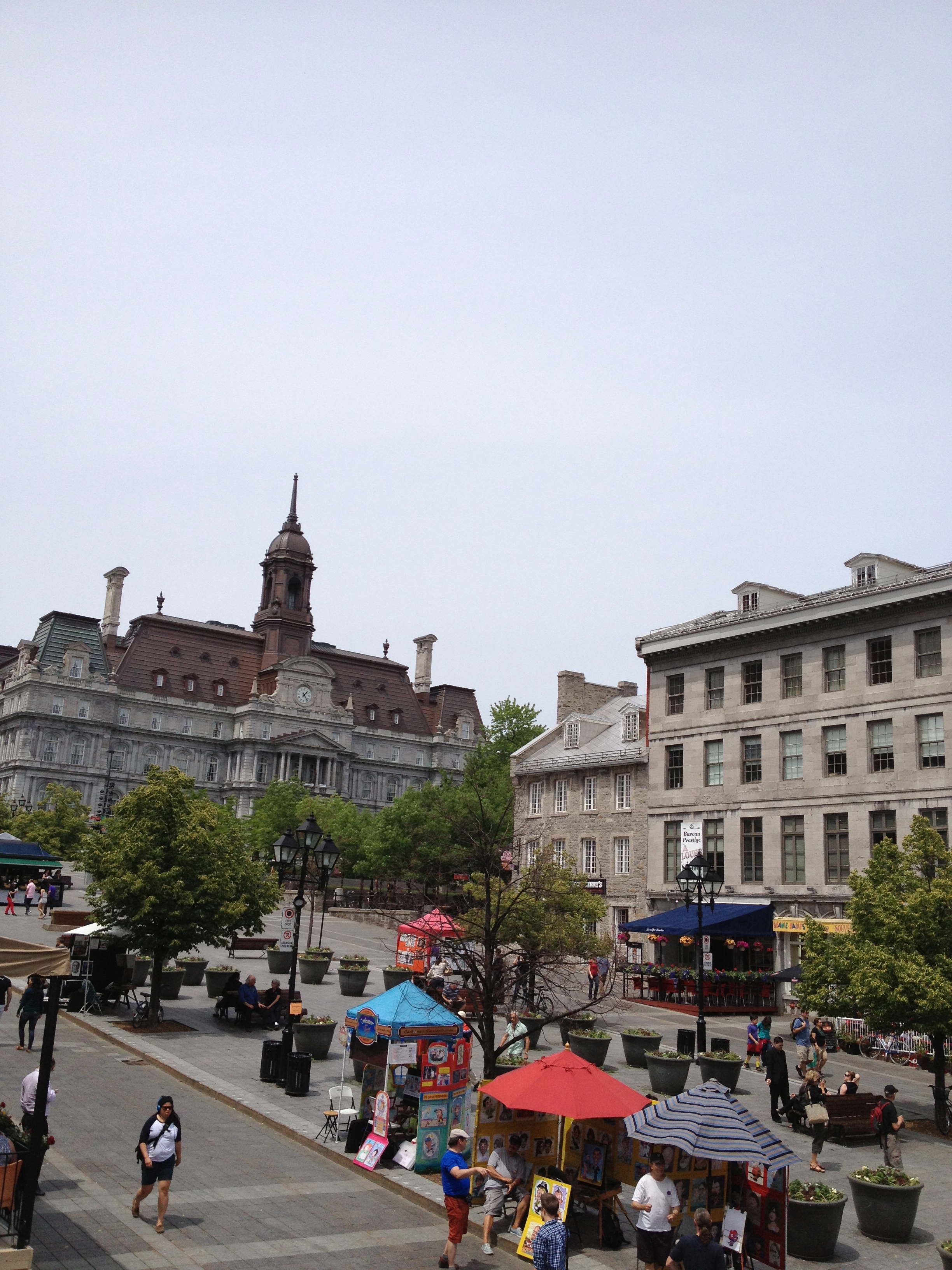 Le marché Bonsecours, de pierres grises et au dôme argenté, servait autrefois de grande halle pour les maraîchers, il a ensuite abrité le siège du Parlement Canadien alors que le bâtiment orignal avait brûlé et aujourd’hui on s’y balade entre boutiques et expositions, sans rien d’exceptionnel. Par contre en face, je prends un vrai plaisir à découvrir les œuvres de Peter W. Hart, aux couleurs vives et aux mouvements captivants.