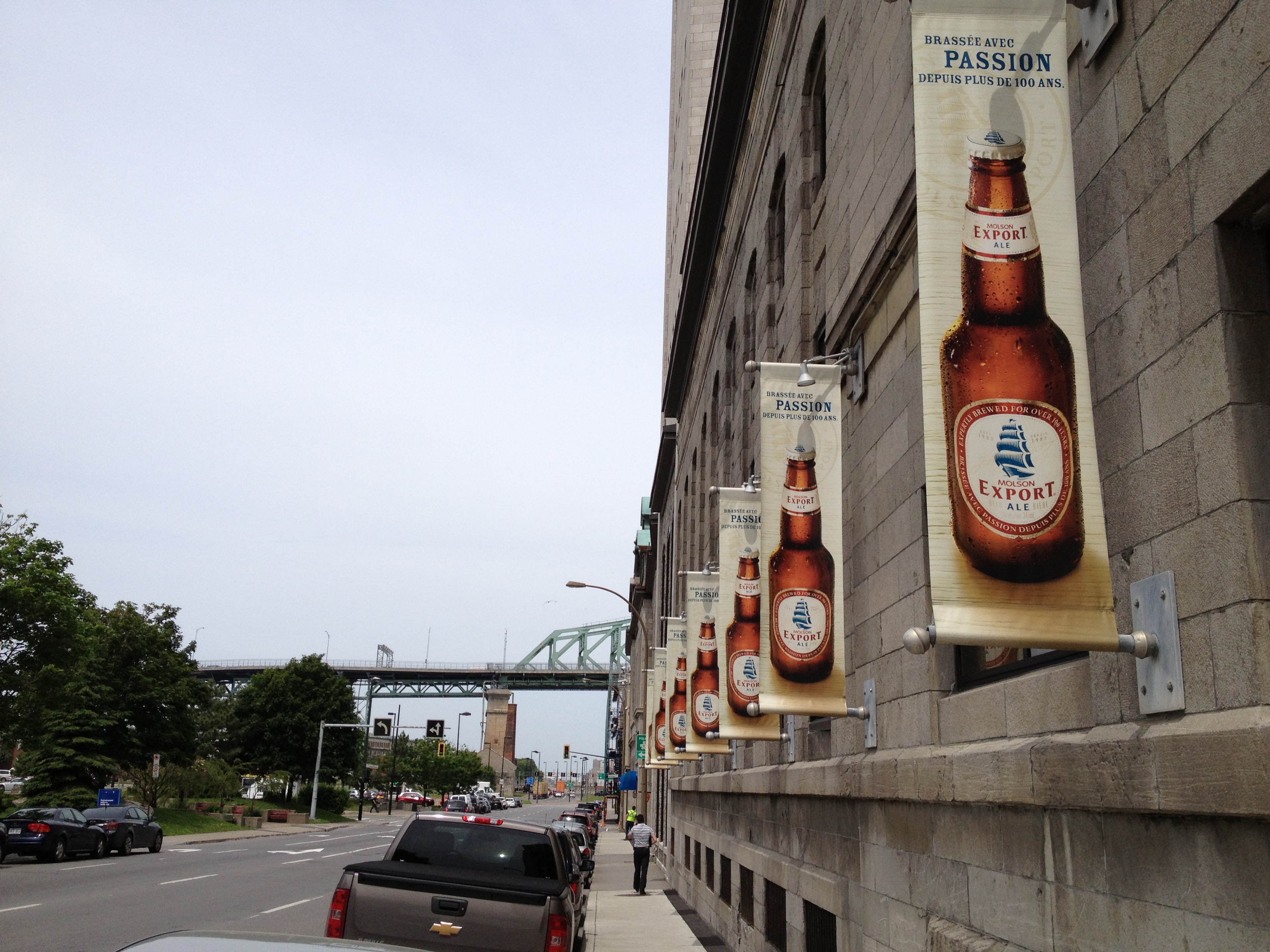 La rue Notre-Dame m’amène, hors du circuit touristique vers l’énorme brasserie Molson dont on repère de loin le bâtiment de briques rouges et dont les effluves sur le trottoir sont assez fortes. Fondée en 1786, elle est la plus ancienne brasserie du Canada et après la Compagnie de la Baie d’Hudson, la deuxième plus ancienne entreprise du pays. Le quartier intermédiaire semble devenir un lieu de résidence avec de jolis immeubles modernes, et en contre-bas, je découvre par surprise le siège du cirque Eloize fondé en 1993. Il s’est installé dans l’ancienne gare Dalhousie qui avait accueilli en juin 1886 le premier train de passagers transcontinental canadien; cette gare a été excavée à l’emplacement d’une colline boisée, proche des fortifications de l’ancienne Ville-Marie.