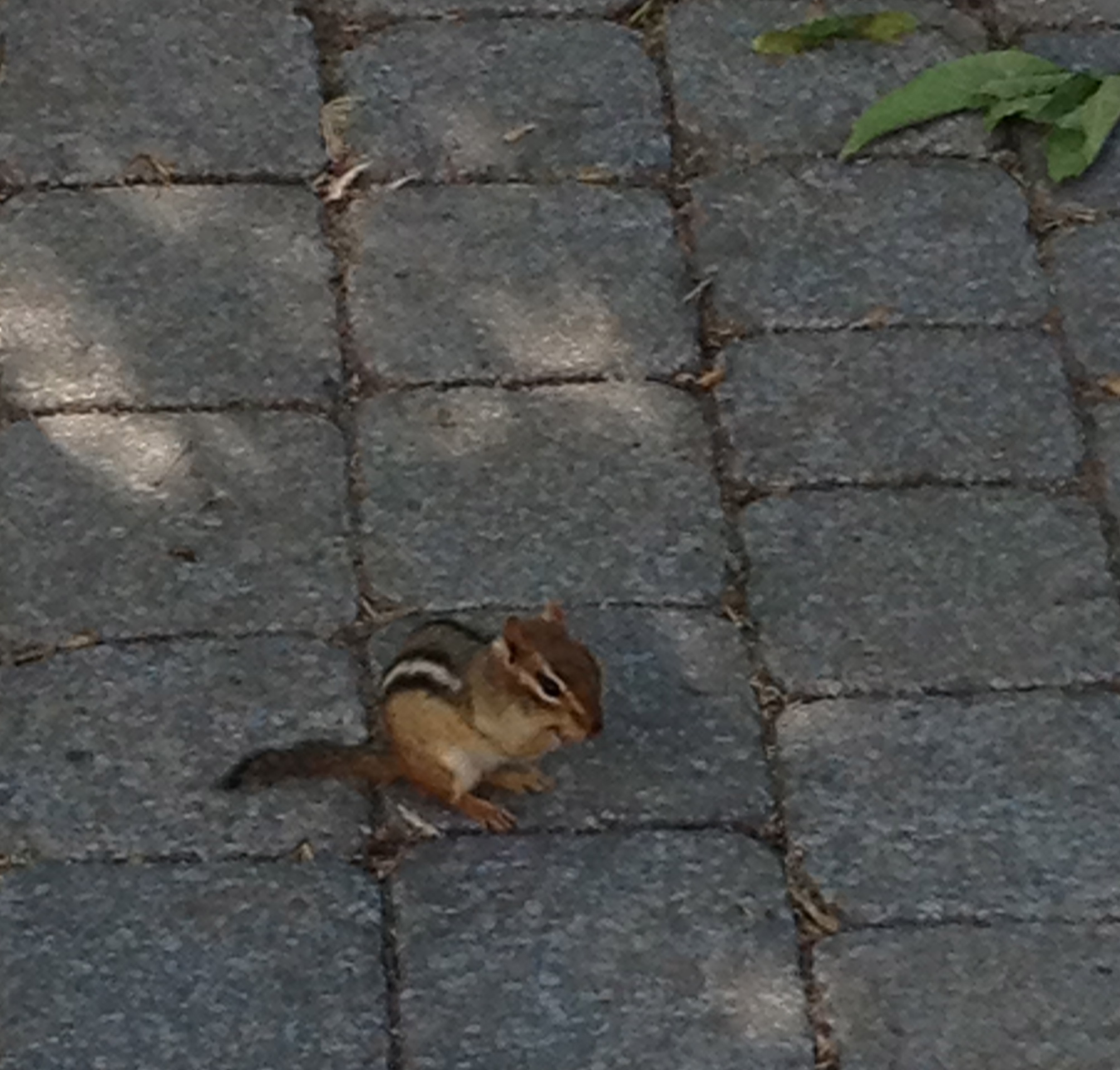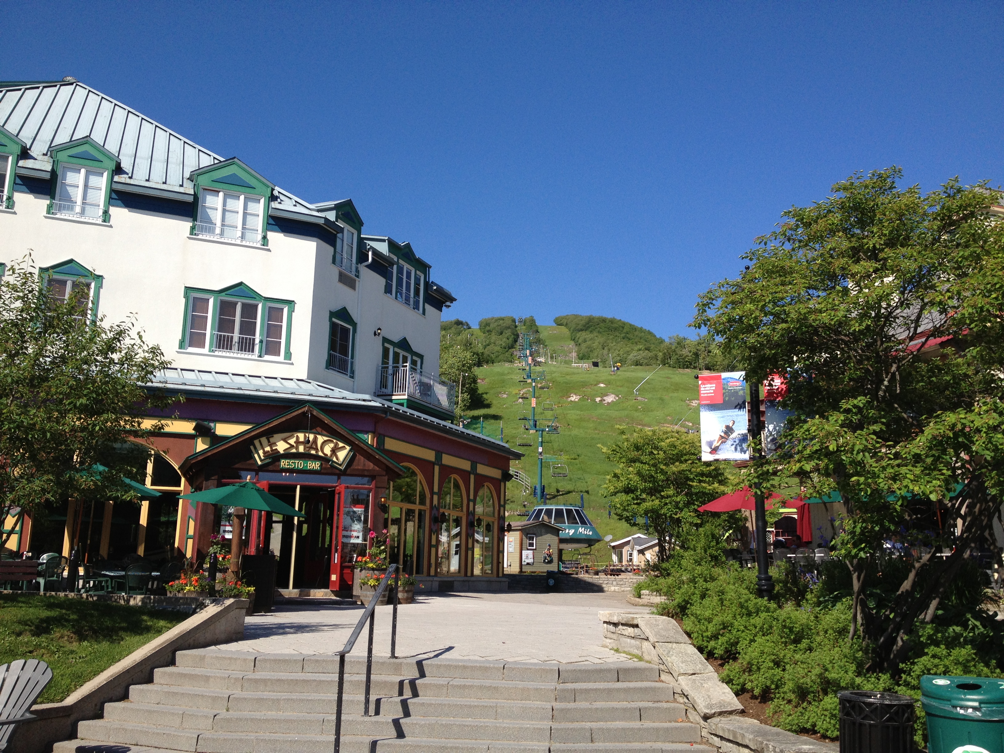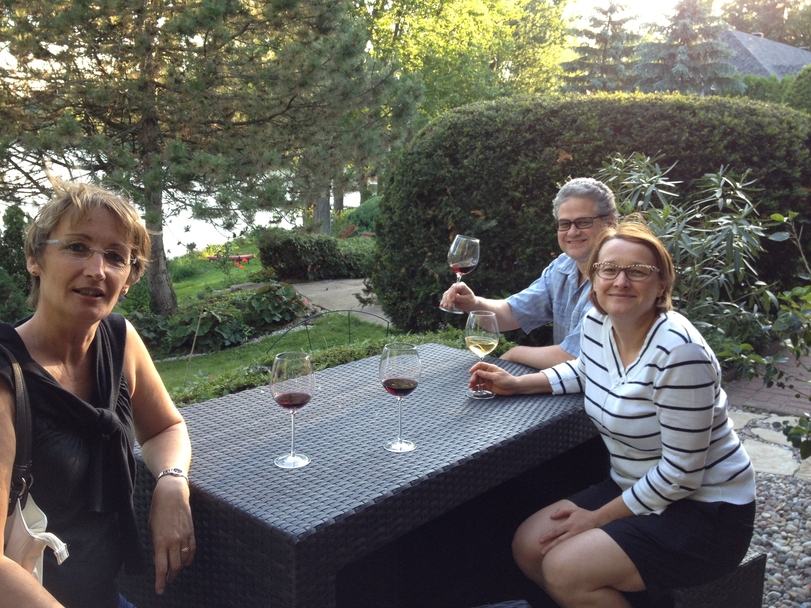 Autrefois les pêcheurs et les agriculteurs arrivaient ici par bateau au Quai Victoria pour aller vendre leurs marchandises dans les marchés publics; il fut renommé Quai de l’Horloge depuis qu’en 1922 cette tour fut construite pour rendre mémoire aux marins de la marine marchande morts durant la première guerre mondiale – elle sert aussi de phare alors aux navires entrant dans le port. Elle ressemble à un petit Big Ben avec ses faces couvertes d’horloges et les quelques deux cents marches nous montent à cinquante mètres du niveau de la mer, offrant de l’observatoire une vue sur le fleuve, ses îles et ses ponts et sur le Vieux Montréal. Au pied, une plage urbaine a été créée, comme c’est la mode en Europe aussi, avec du sable fin, des transats et des parasols, des brumisateurs mais pas de possibilité de se baigner – c’est désert à cette saison, en semaine en tout cas. Ce long parcours m’a plongée dans l’histoire de la ville, fort intéressante et c’est une pause bien agréable que me propose Martine, sur sa terrasse, avant que je rentre préparer un bon repas.