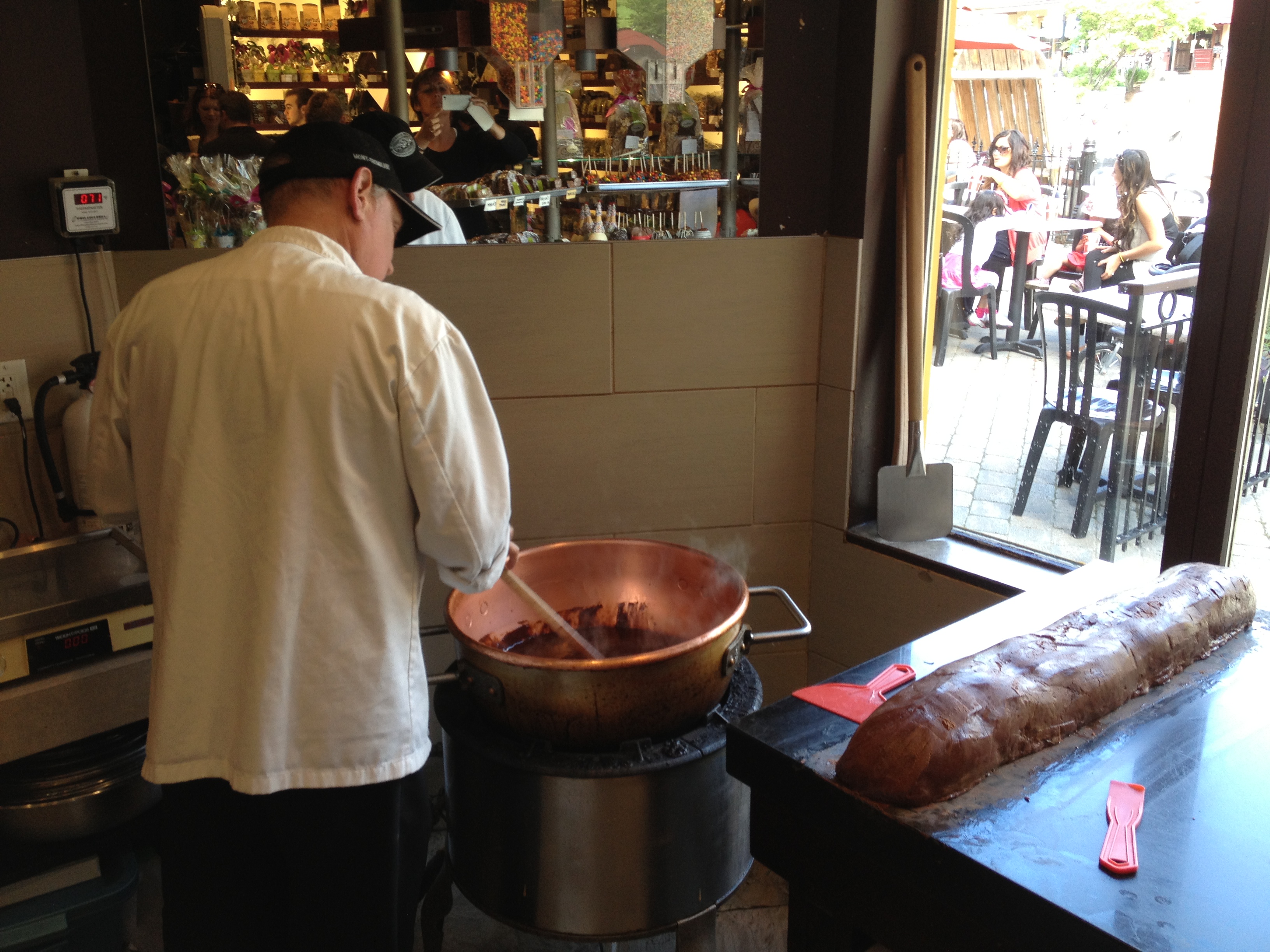 La rue St Paul serait la plus ancienne et pendant longtemps la principale artère commerciale; elle est bordée de boutiques et de galeries magnifiques – super art inuit entre autres-, installées dans des anciens immeubles de pierre – on y prépare déjà l’hiver à ce que je peux observer par le dépôt d’un tas de bûches dans un hôtel particulier. Elle mène à la Place Royale, ainsi nommée par l’explorateur Samuel de Champlain en 1611, qui souhaite y installer un poste pour la traite des fourrures mais dont les projets seront stoppés par les guerres entre les tribus amérindiennes. La Place Royale sera renommée Pointe-à-Callière et c’est ici que fut fondée Montréal en 1642, avec la colonie missionnaire de Paul de Chomedey et Jeanne Mance ainsi qu’une cinquantaine de pionniers arrivés de France. La visite du Musée Pointe-à-Callière sera très intéressante, il y aura aussi le Centre d’Histoire de Montréal – à côté du restaurant Gibby’s de Nestor et des anciens bureaux de Alain – et l’ancien Hôpital des Sœurs Grises, dont la place porte le nom de la fondatrice de cette communauté, la Mère d’Youville. Ce terre-plein tout en longueur est un endroit vert et paisible, un obélisque rend hommage aux fondateurs et premiers colons arrivés à Montréal. Voici un quartier dont je reviendrai visiter quelques musées.