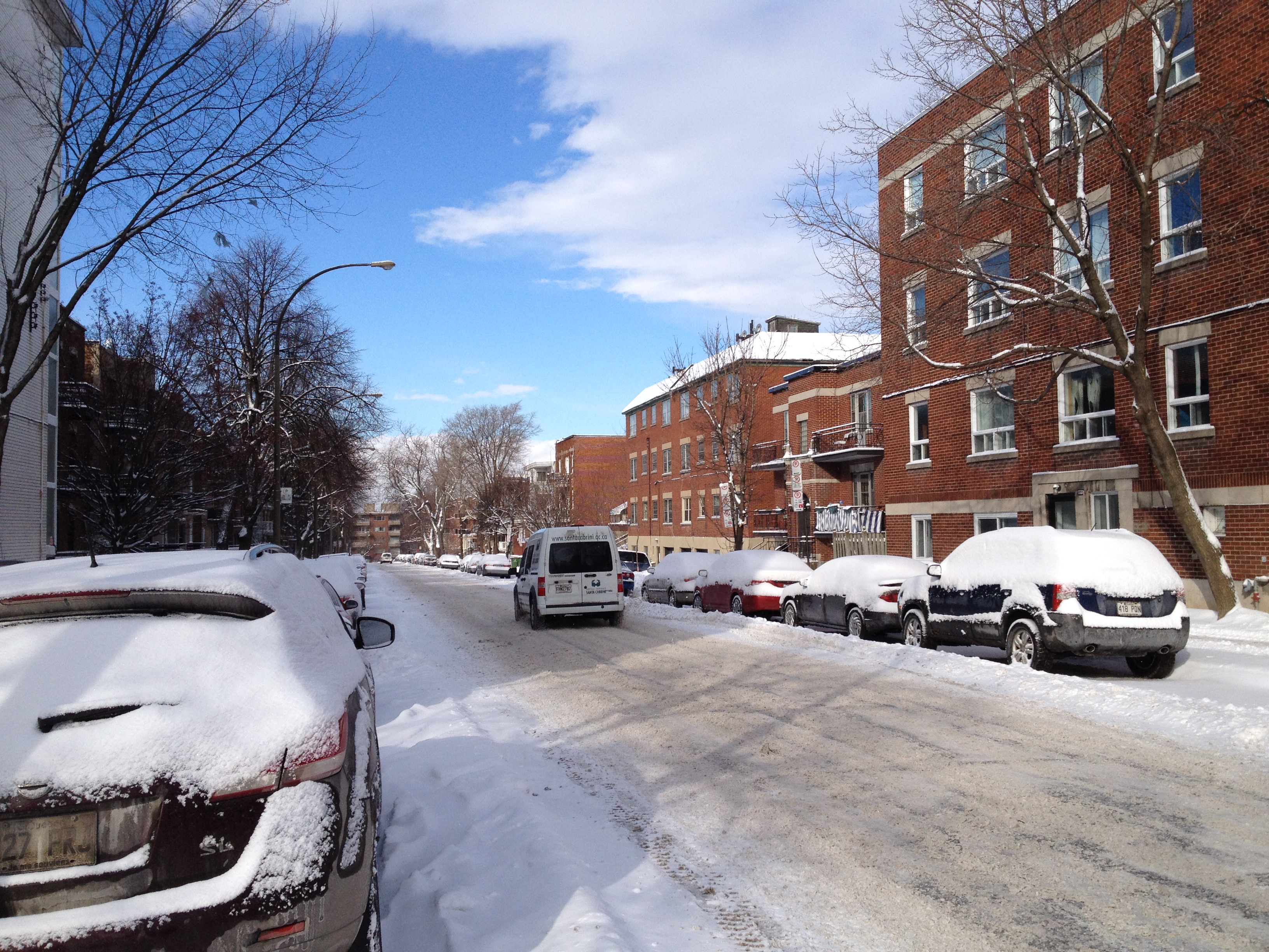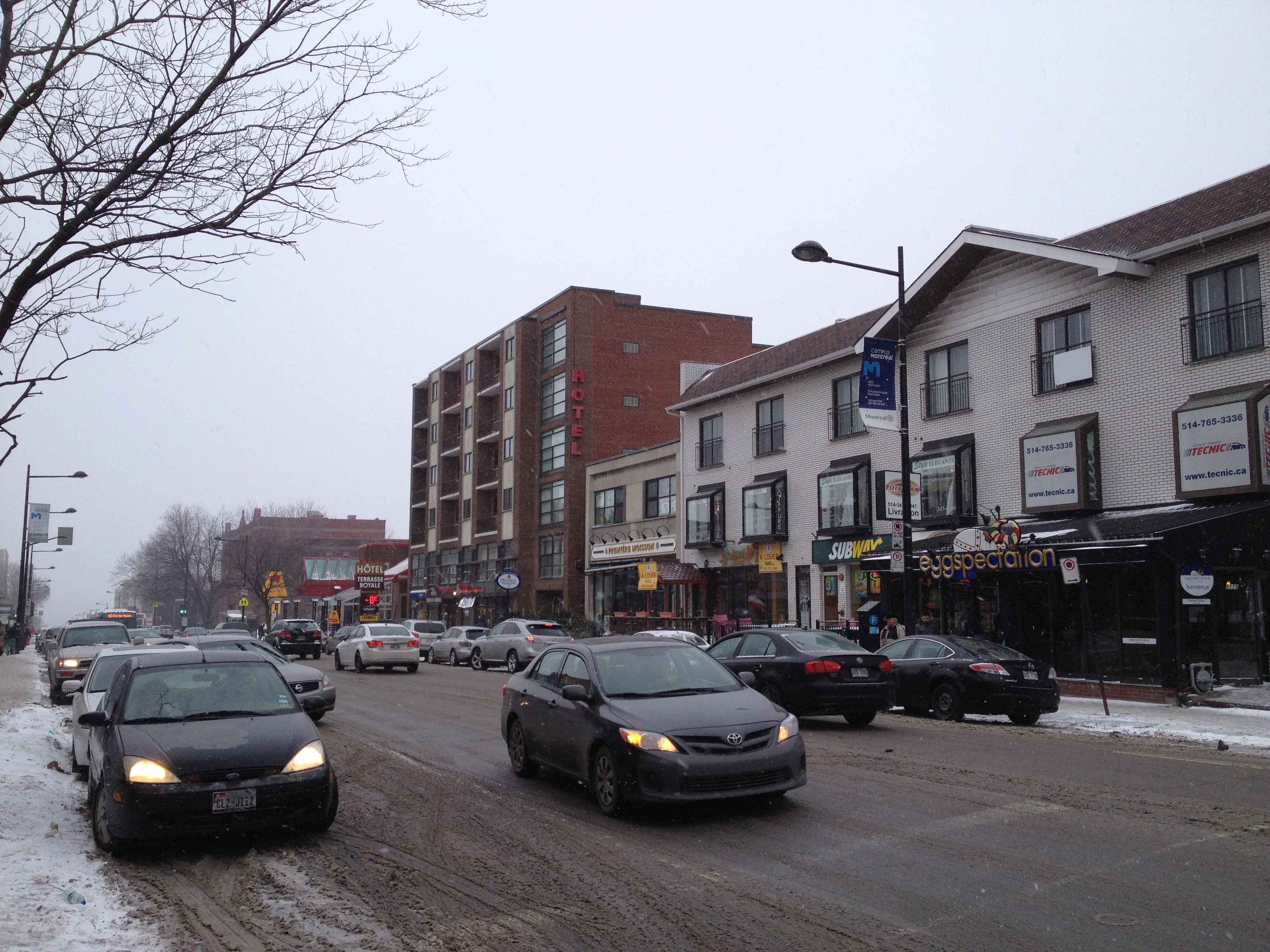 L’hiver est trop long, la météo ne peut pas empêcher les montréalais de sortir – sauf peut-être quand la température descend sous les -20 degrés – et j’ai moi aussi réintégré mon quartier de la Côte des Neiges – qui porte bien son nom maintenant – aussi animé que durant l’été. Un repas chez Olivieri, un autre au Bistro Figaro ; nous retrouvions nos repères si aisément. Les gens sont toujours aussi charmants et bavards, dans les restaurants et les commerces, un peu moins loquaces dehors mais toutefois toujours prêts à renseigner, aider ou blaguer. Les rues entre chez moi et le centre des commerces, je les ai parcourues avec plaisir – il y a beaucoup d’étudiants qui affluent vers l’Université.
