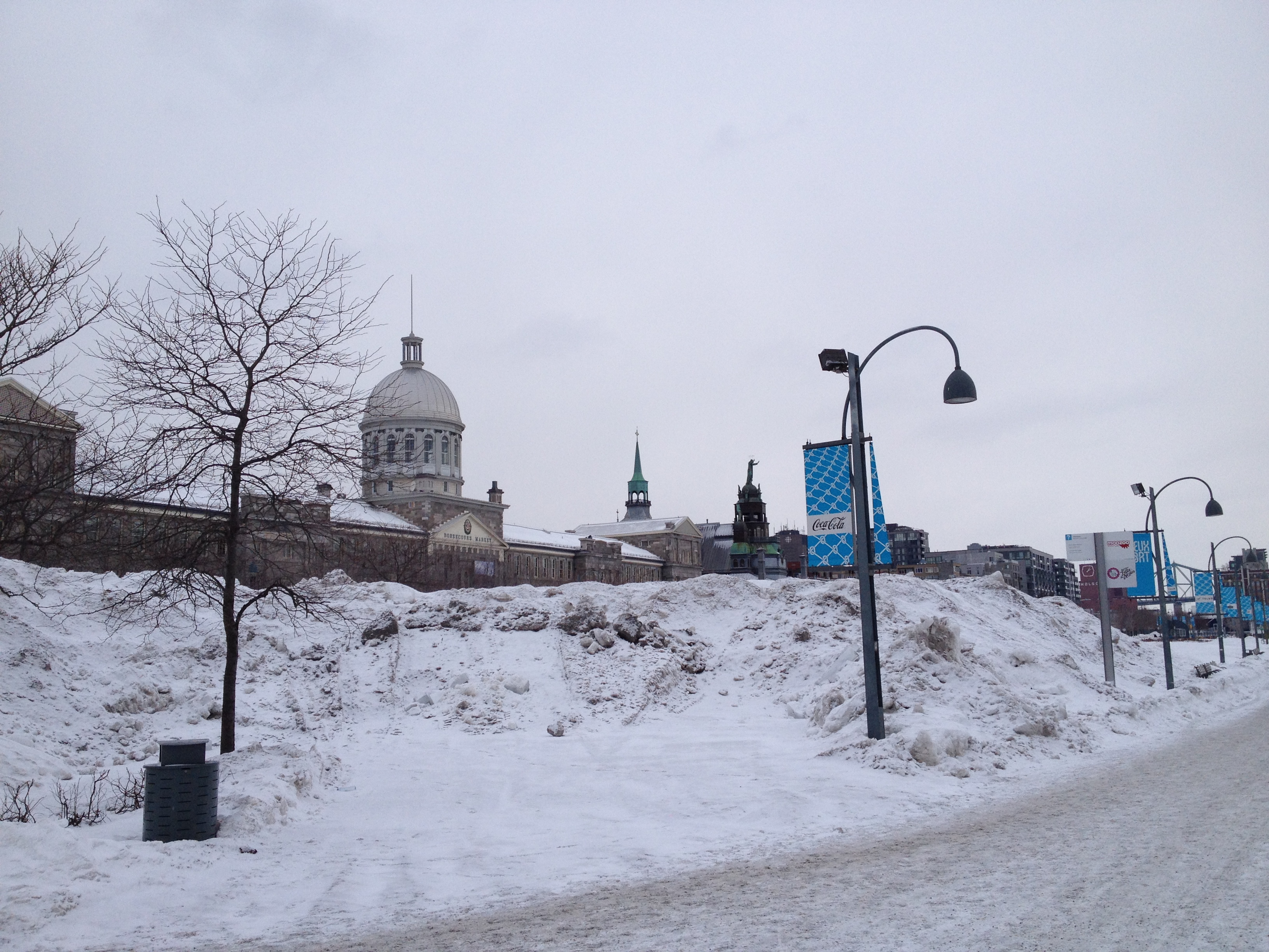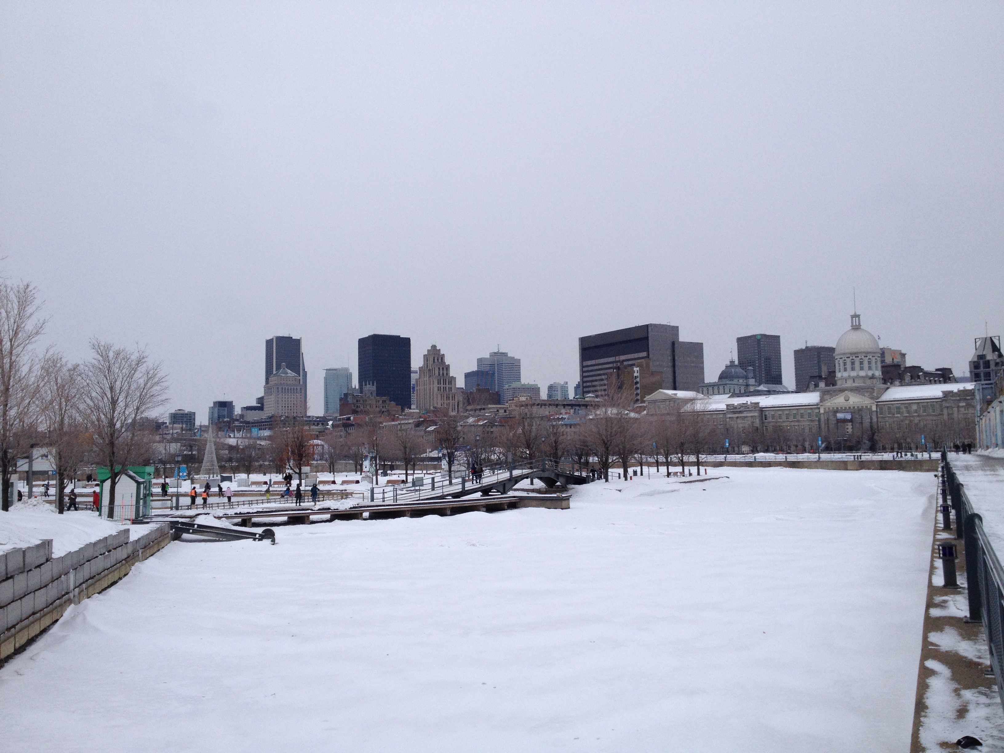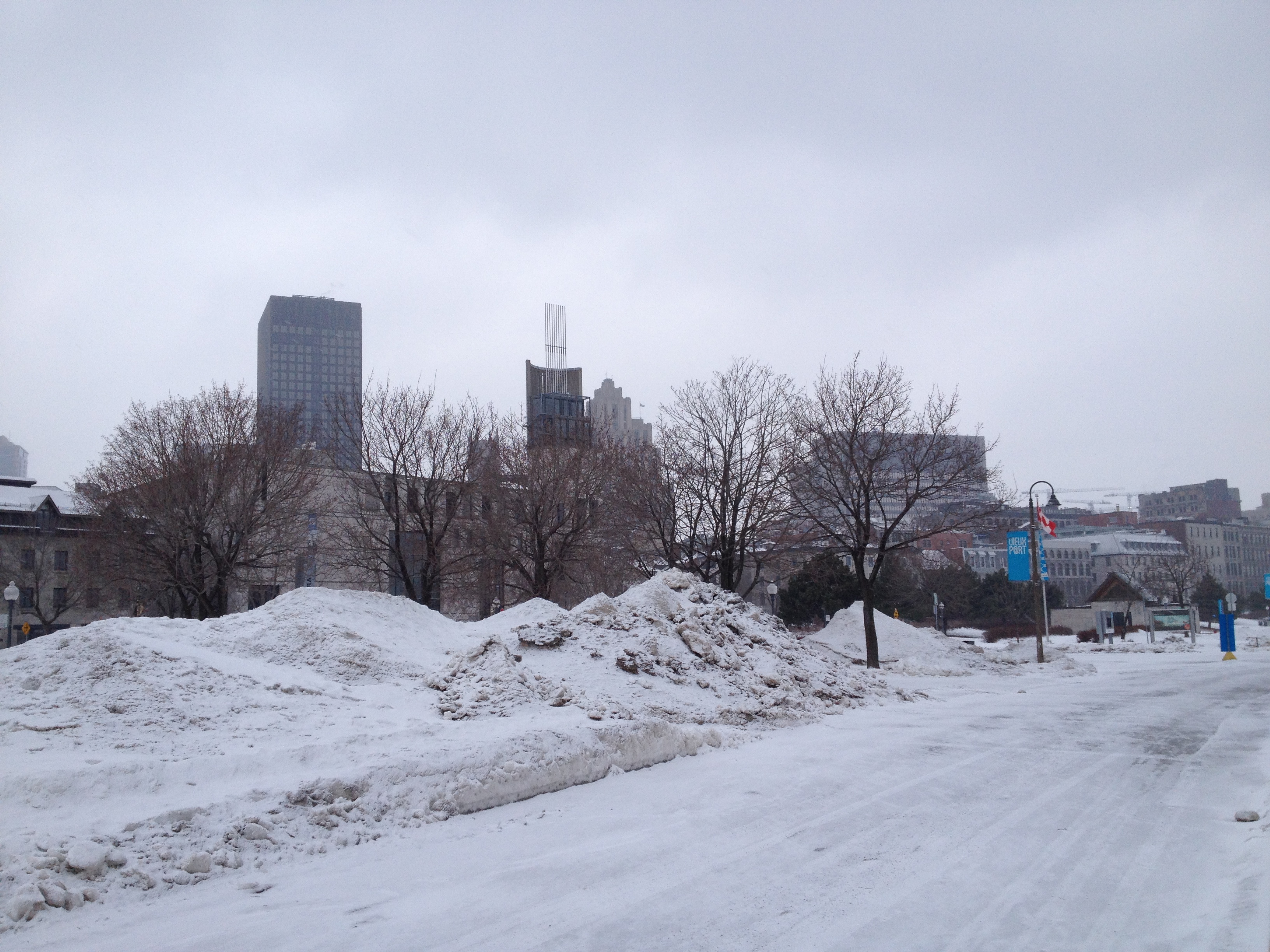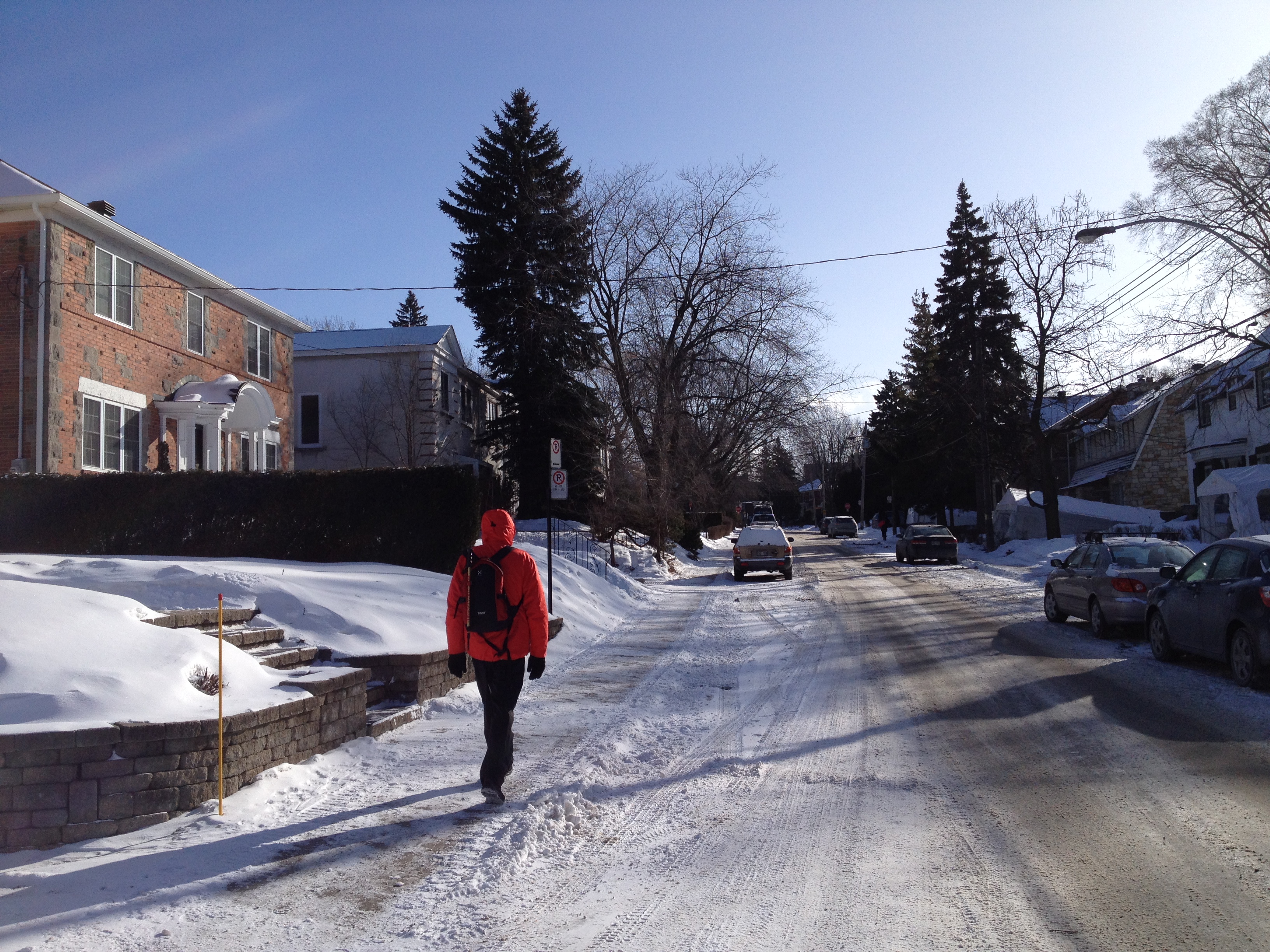 Le passage permanent du chaud au froid est inversé par rapport à la bonne saison ; les immeubles, les magasins, les restaurants mais aussi les voitures, les bus, le métro sont très chauffés. Et il s’agit de s’équiper pour sortir : des couches doubles, triples ou même plus et cela de la tête aux pieds, sans oublier les mains qui deviennent vite glaçon quand je ‘dégaine’ pour une photo rapide – je dois être la seule d’ailleurs à en prendre. C’est un avantage pour nous de venir de Suisse où les vêtements et chaussures sont assez techniques pour faire face à ce type de météo mais c’est ici à Montréal, un vrai défilé de bottes de toutes sortes et de doudounes avec presque toutes une couronne de fourrure autour du visage. Le visage, c’est lui qui souffre le plus chez moi, surtout les pommettes qui deviennent rapidement douloureuses et mes yeux qui ne supportent pas très bien le froid et la luminosité. Le nez ne coule pas, il gèle dehors et dedans … et le sel des larmes laisse un maquillage blanc autour des yeux. Le corps, les pieds ne ressentent eux pas trop la froidure ; par contre qu’est-ce que les jambes chatouillent quand on retrouve le chaud à la maison !