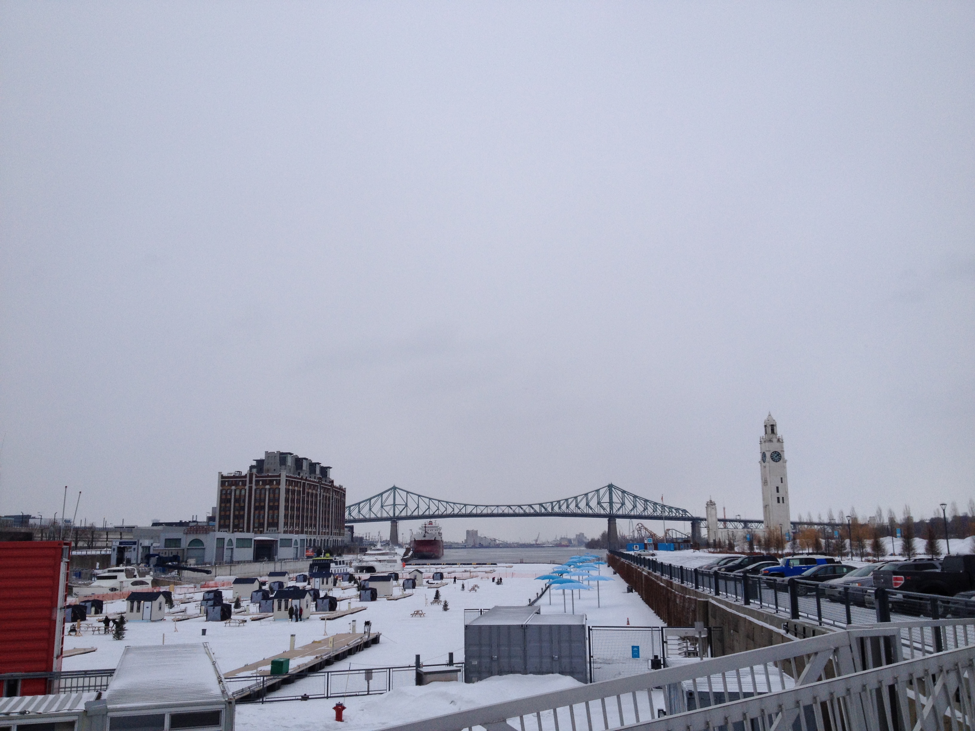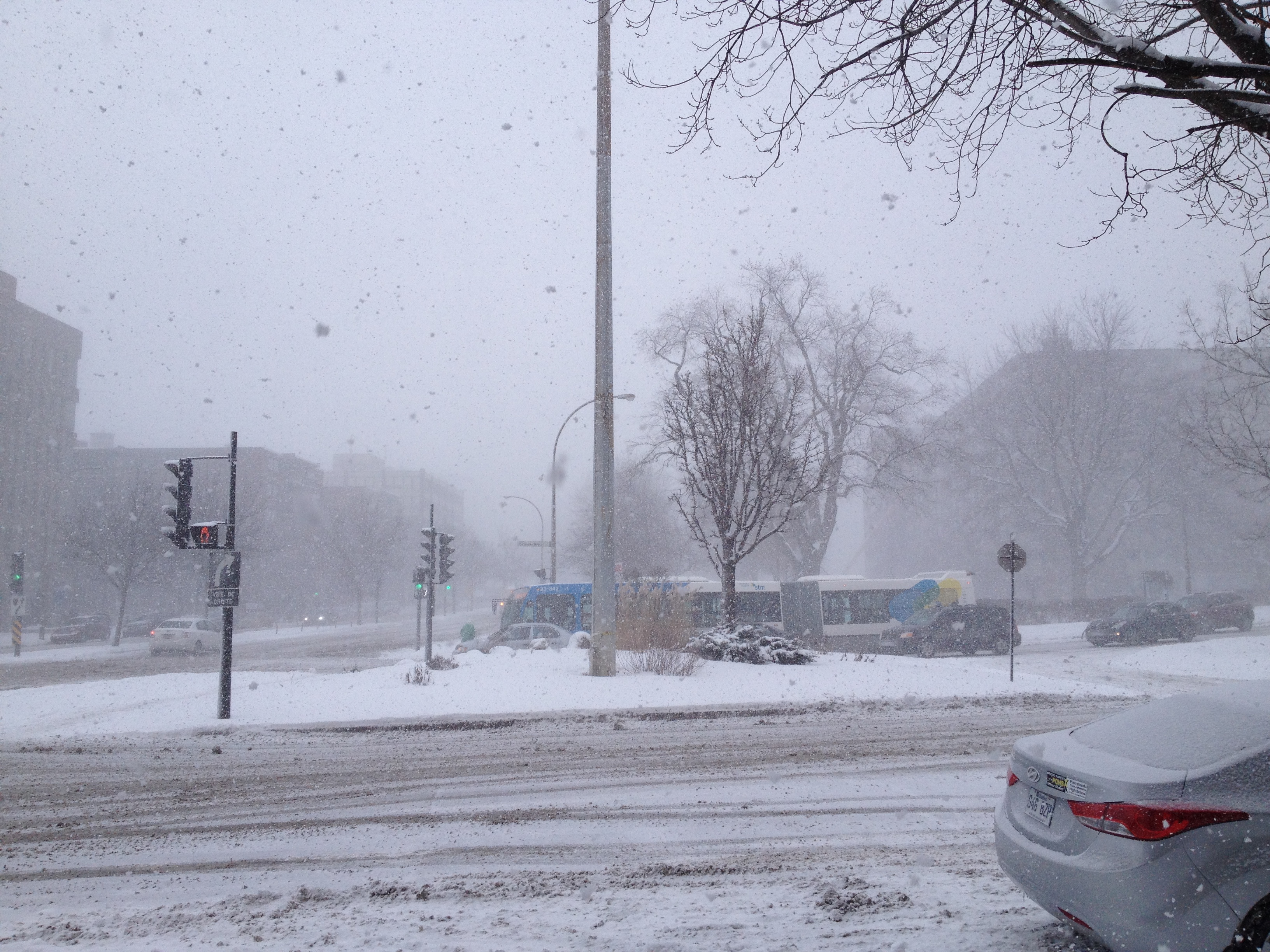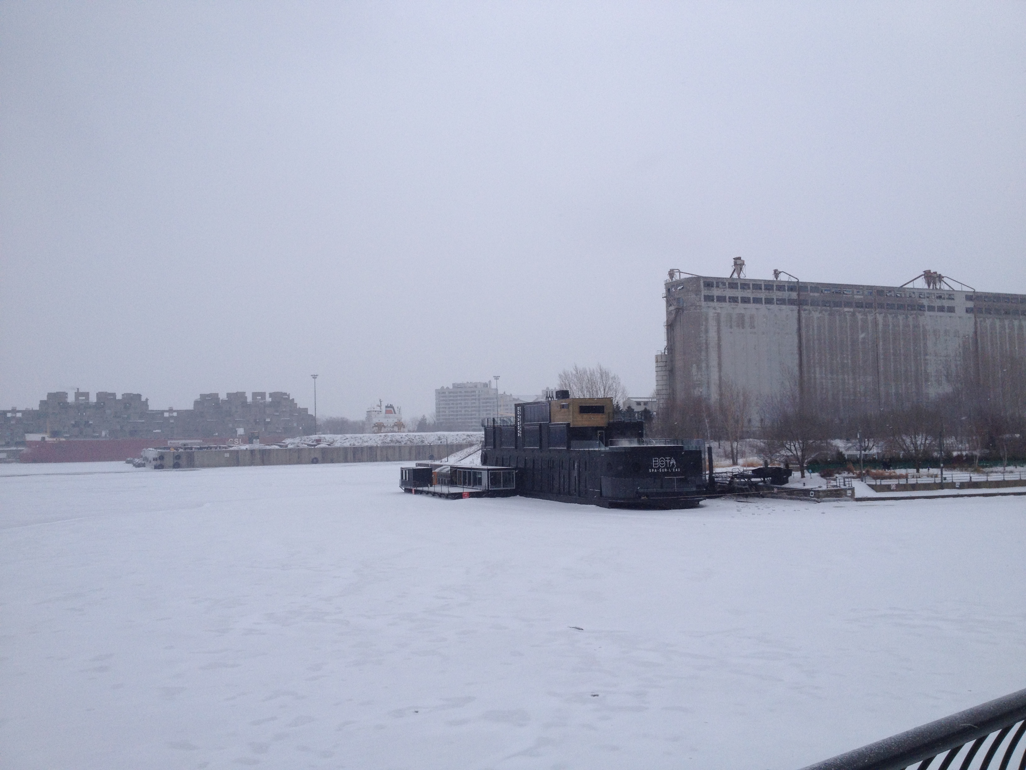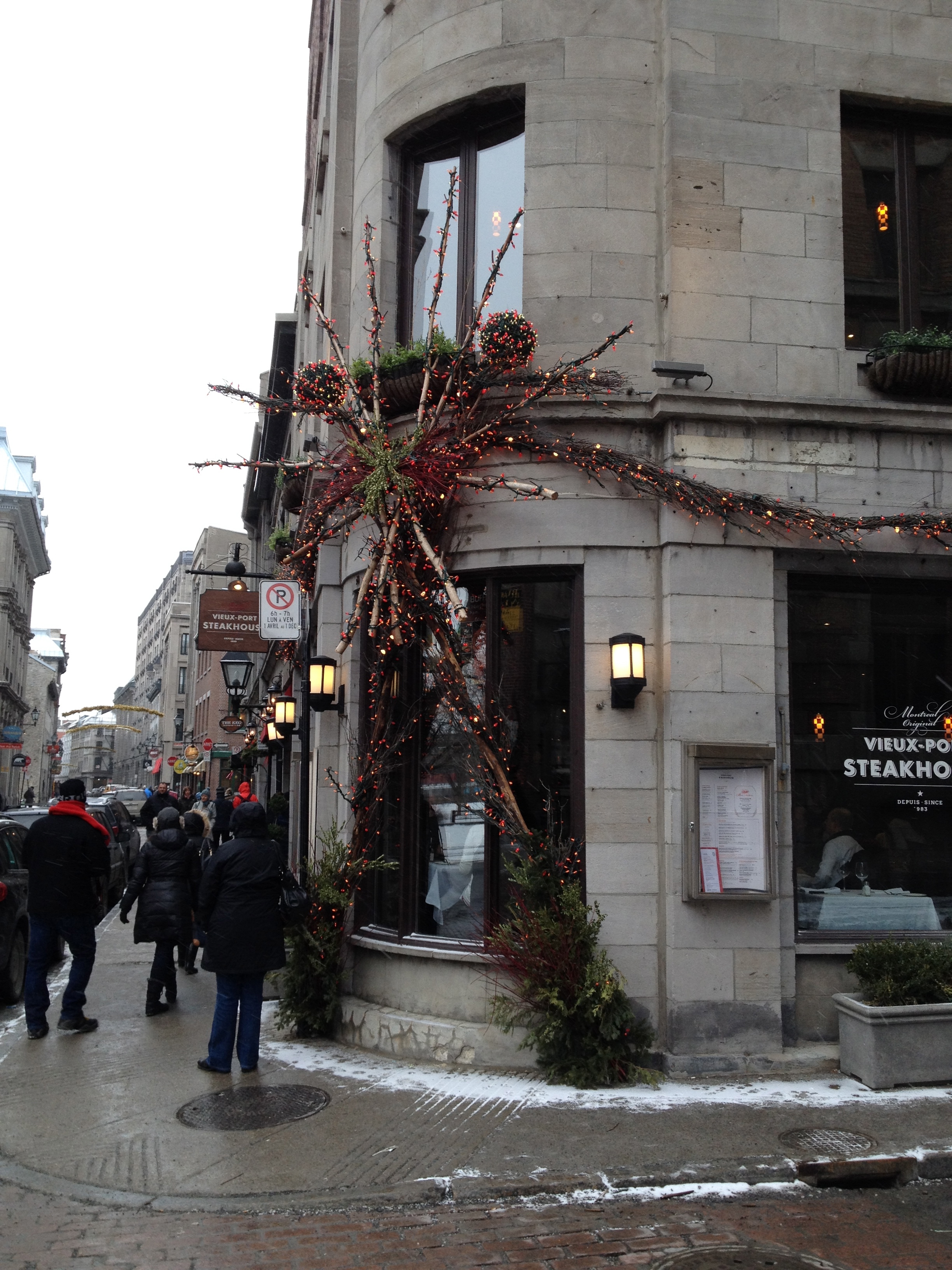 Le passage permanent du chaud au froid est inversé par rapport à la bonne saison ; les immeubles, les magasins, les restaurants mais aussi les voitures, les bus, le métro sont très chauffés. Et il s’agit de s’équiper pour sortir : des couches doubles, triples ou même plus et cela de la tête aux pieds, sans oublier les mains qui deviennent vite glaçon quand je ‘dégaine’ pour une photo rapide – je dois être la seule d’ailleurs à en prendre. C’est un avantage pour nous de venir de Suisse où les vêtements et chaussures sont assez techniques pour faire face à ce type de météo mais c’est ici à Montréal, un vrai défilé de bottes de toutes sortes et de doudounes avec presque toutes une couronne de fourrure autour du visage. Le visage, c’est lui qui souffre le plus chez moi, surtout les pommettes qui deviennent rapidement douloureuses et mes yeux qui ne supportent pas très bien le froid et la luminosité. Le nez ne coule pas, il gèle dehors et dedans … et le sel des larmes laisse un maquillage blanc autour des yeux. Le corps, les pieds ne ressentent eux pas trop la froidure ; par contre qu’est-ce que les jambes chatouillent quand on retrouve le chaud à la maison !