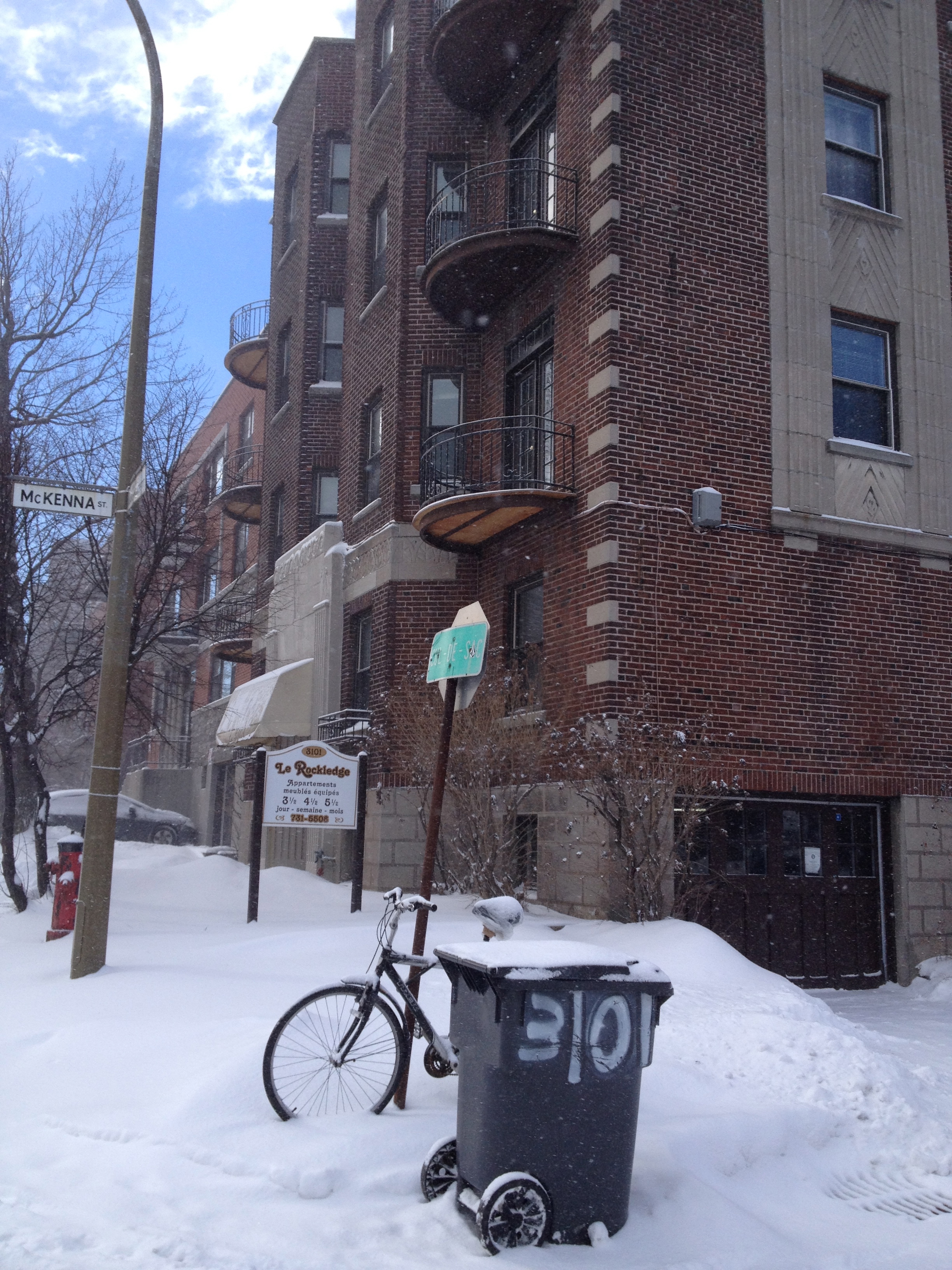 Nous avons retrouvé notre immeuble Le Rockledge, dans lequel nous avons occupé l’appartement situé juste en face de celui de cet été. Il est tout aussi ‘art déco’, beaucoup plus lumineux, le wifi très performant cette fois, plusieurs robinets montés à l’envers – pas grave, le chauffage tourne à plein régime je pense, vu qu’il fait bien chaud partout mais on ne règle pas nous même – il semble que ce soit ainsi dans les vieux bâtiments. Rien n’a changé, le bus 51 s’arrête toujours devant notre porte et croyez-moi c’est un détail qui vaut de l’or en hiver ! De plus la maison qui était en vente de l’autre côté de la rue a été ramenée au niveau du sol ; ainsi le soleil nous sourit dans la salle de séjour le matin.