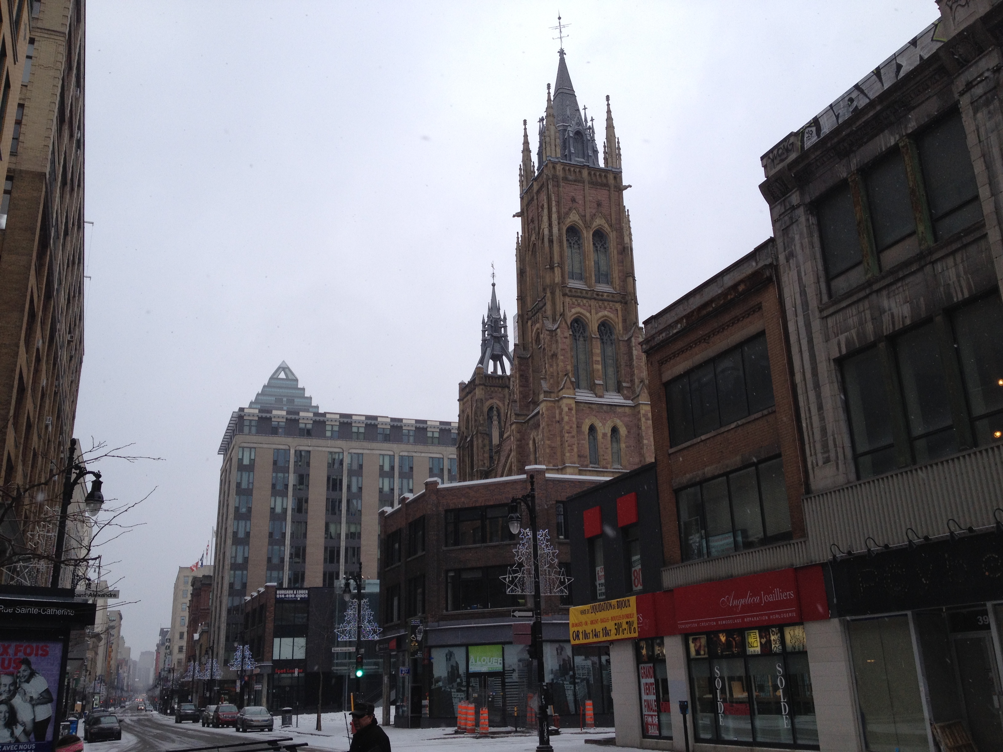 Descendue au centre-ville pour cette visite culturelle, il aurait été dommage de ne pas me balader sur Sainte-Catherine, magasiner un peu, surtout en cette période des soldes. Le ciel est parfaitement bleu mais le vent s’engouffre dans les rues et aux carrefours ; c’est ainsi plaisant de pouvoir se réfugier dans la ville souterraine pour accéder d’un centre commercial à l’autre, bien au chaud !
