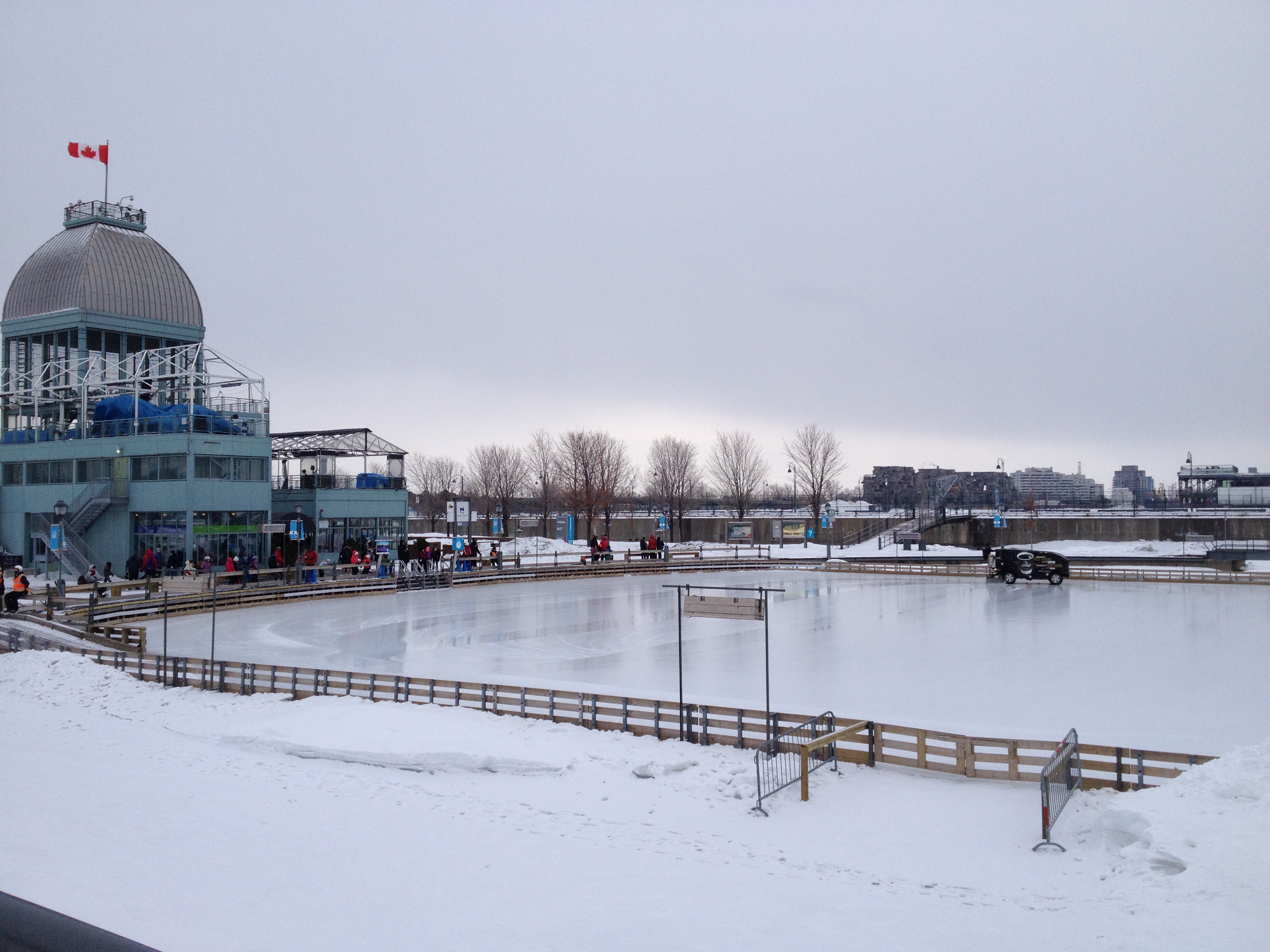 Durant le week-end c’est au Mont-Royal que le monde se retrouve pour un bon bol d’air, très frisquet dimanche dernier. On y fait de longues glissades sur la montagne, comme des toboggans alignés, les raquettes ou skis de fond sont de sorties et même des vélos mais c’est surtout la patinoire, sur le Lac des Castors, qui vaut le détour. Il n’y avait pas affluence, comme c’est beau une patinoire ainsi en pleine nature et d’ailleurs il s’en crée dans de plus petits parcs où l’été les enfants jouent à la balançoire. Sur la montagne la musique accompagne les patineurs, c’est Charles Aznavour ce dimanche qui chante à tue-tête dans les haut-parleurs ! J’ai juste eu le temps de filmer une courte séquence et ensuite mon iphone n’a plus voulu me répondre, à croire qu’il avait bien plus froid que moi.