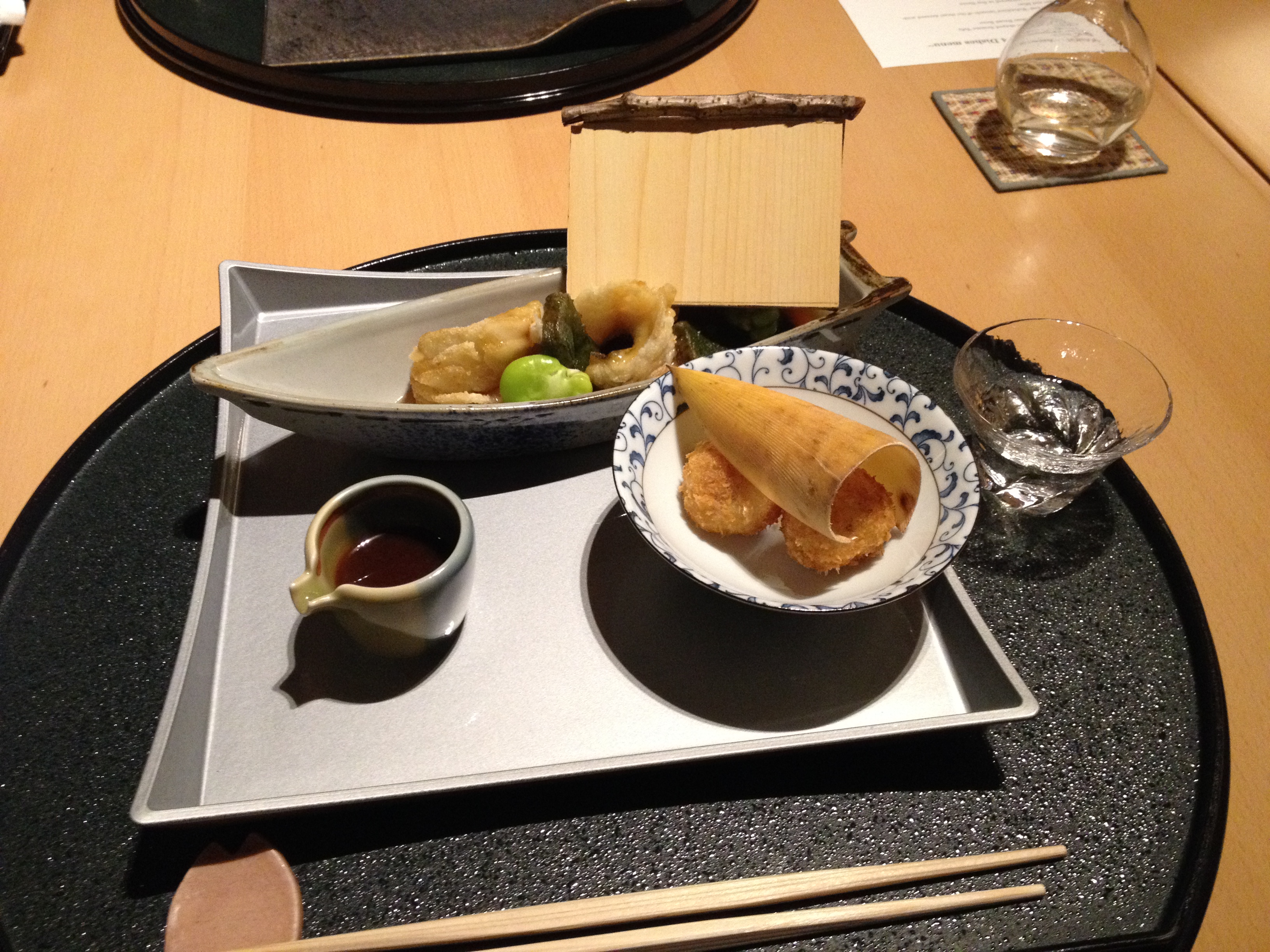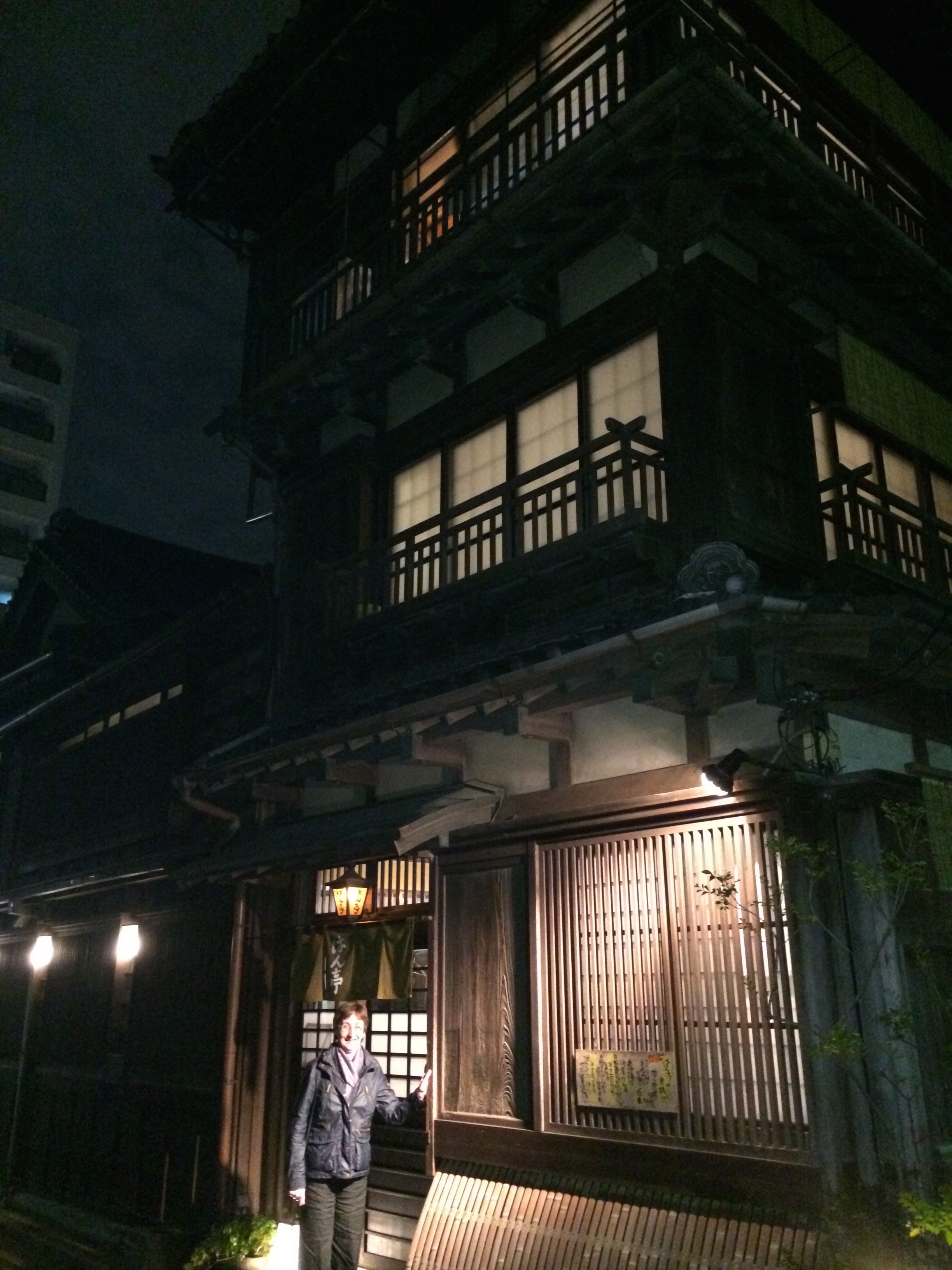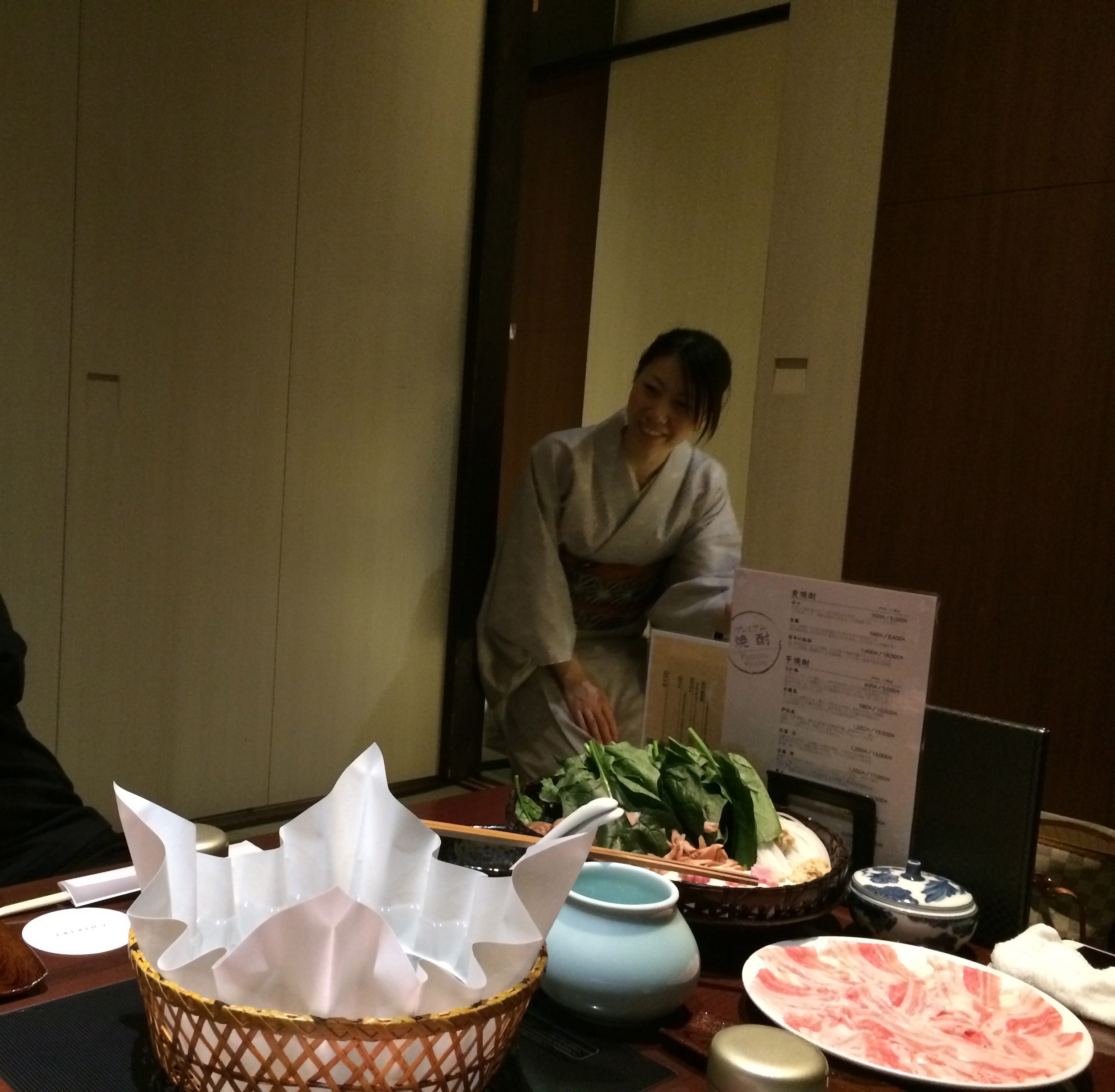 Le souper clôture cette journée productive; le comité s’est restreint autour de Shin et Tobi, les organisateurs ainsi que Yukiko, de l’Université KIT et un autre juriste comme elle, venu expressément de Osaka. L’ambiance est chaleureuse et formidable, avec ce sentiment de nous connaître depuis longtemps et de partager le même enthousiasme pour le business, les voyages et la culture. Yukiko était en charge du choix du restaurant et elle a marqué des points! Le Chiriri nous propose une salle isolée pour nous six et en y pénétrant c’est la surprise d’une magnifique table déjà garnie pour le shabu shabu. La version japonaise de la fondue viande est un régal et le décor ici est original; sur des plaques chauffantes en milieu de table, dans un panier qui ressemble à de l’osier, une marmite en papier où bouillonne une eau pure qui va recevoir les légumes et la viande. Un bol de sauce soja améliorée de piquant et d’oignons rend à la viande une saveur dont on ne se lasse pas. L’utilisation des baguettes pour cuisiner et pour manger nous est de plus en plus aisée, si ce n’est pour les nouilles dans la soupe, qui terminent souvent le repas – il est préférable de ne pas porter une blouse blanche! L’équipe se disperse, avec des poignées de mains – sans doute à cause de nous – et avec l’espoir partagé de nous revoir en Suisse ou au Japon. Comme ils sont attachants ces japonais!