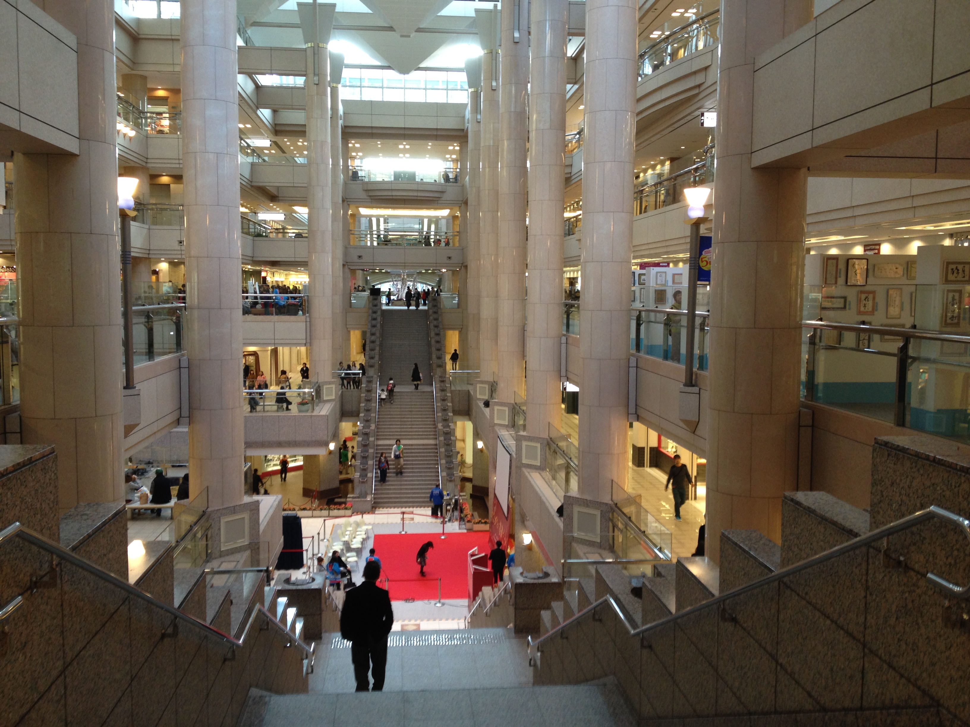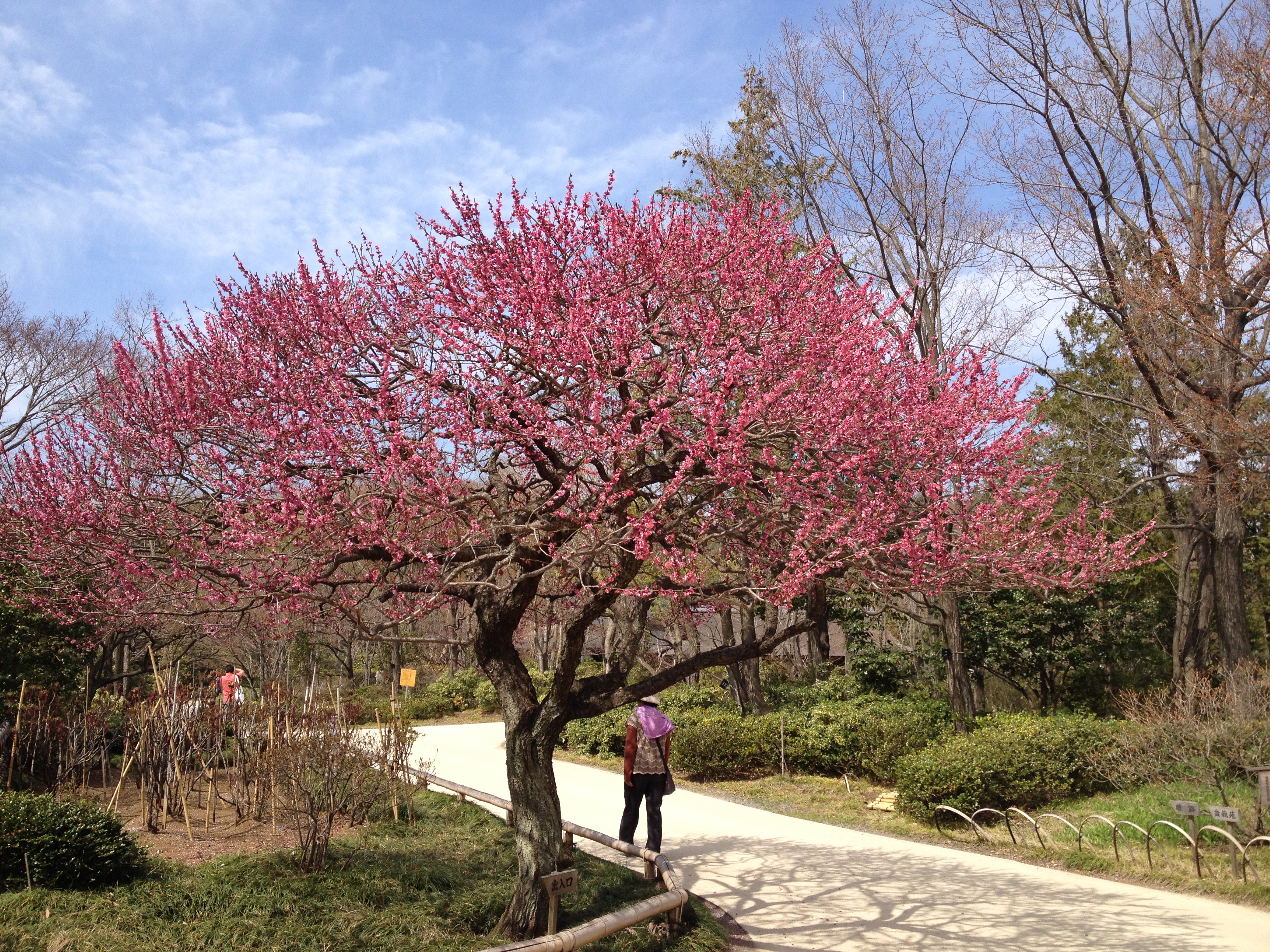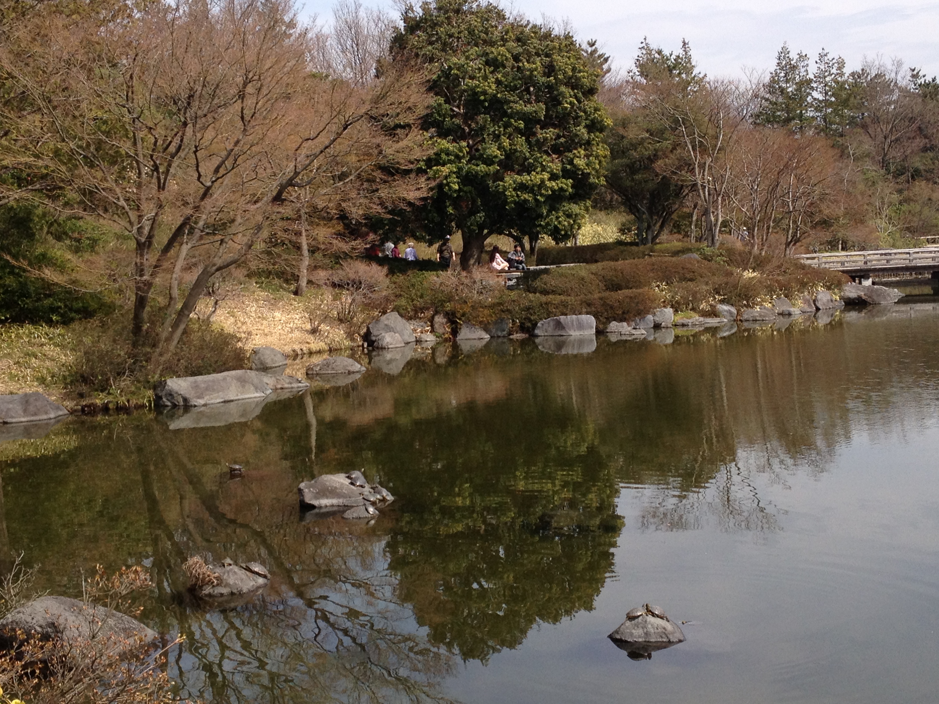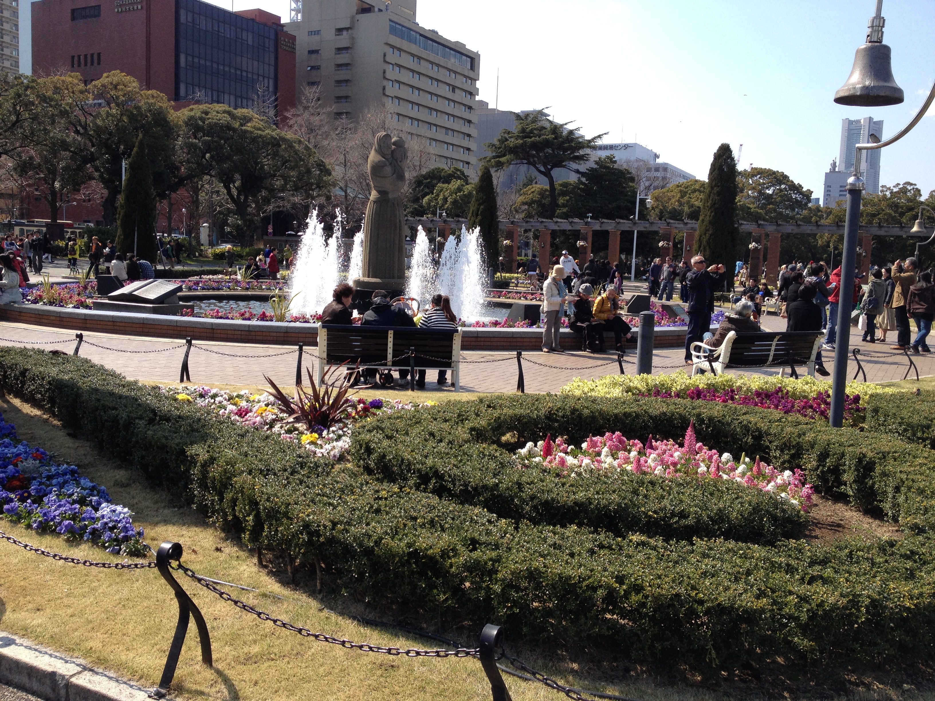 Il est 10 heures, je retrouve Sheena à la gare Keisei pour me laisser guider – une fois n’est pas coutume – à la découverte d’un parc dit gouvernemental, situé une heure à l’ouest de la ville (mais toujours DANS la ville). Comment a-t-elle donc compris mon attirance pour les jardins, les fleurs, les espaces verts? Il se fait que pour elle aussi c’est un plaisir de s’éloigner une journée de la ville trépidante. Le temps passe vite à papoter dans le train bondé qui nous amène à Tachikawa ; c’est un district qu’elle ne connaît pas. Nous sommes surprises par la foule qui fourmille dans cette gare, par les grandes enseignes de Takashimaya, Isetan et même Ikea, par un monorail et aussi des trottoirs en altitude pour rejoindre notre destination – ce qui n’étonne par conte que moi, ce sont des dames qui frottent à faire briller les balustrades de notre chemin … ainsi en pleine zone d’affluence, de pollution!