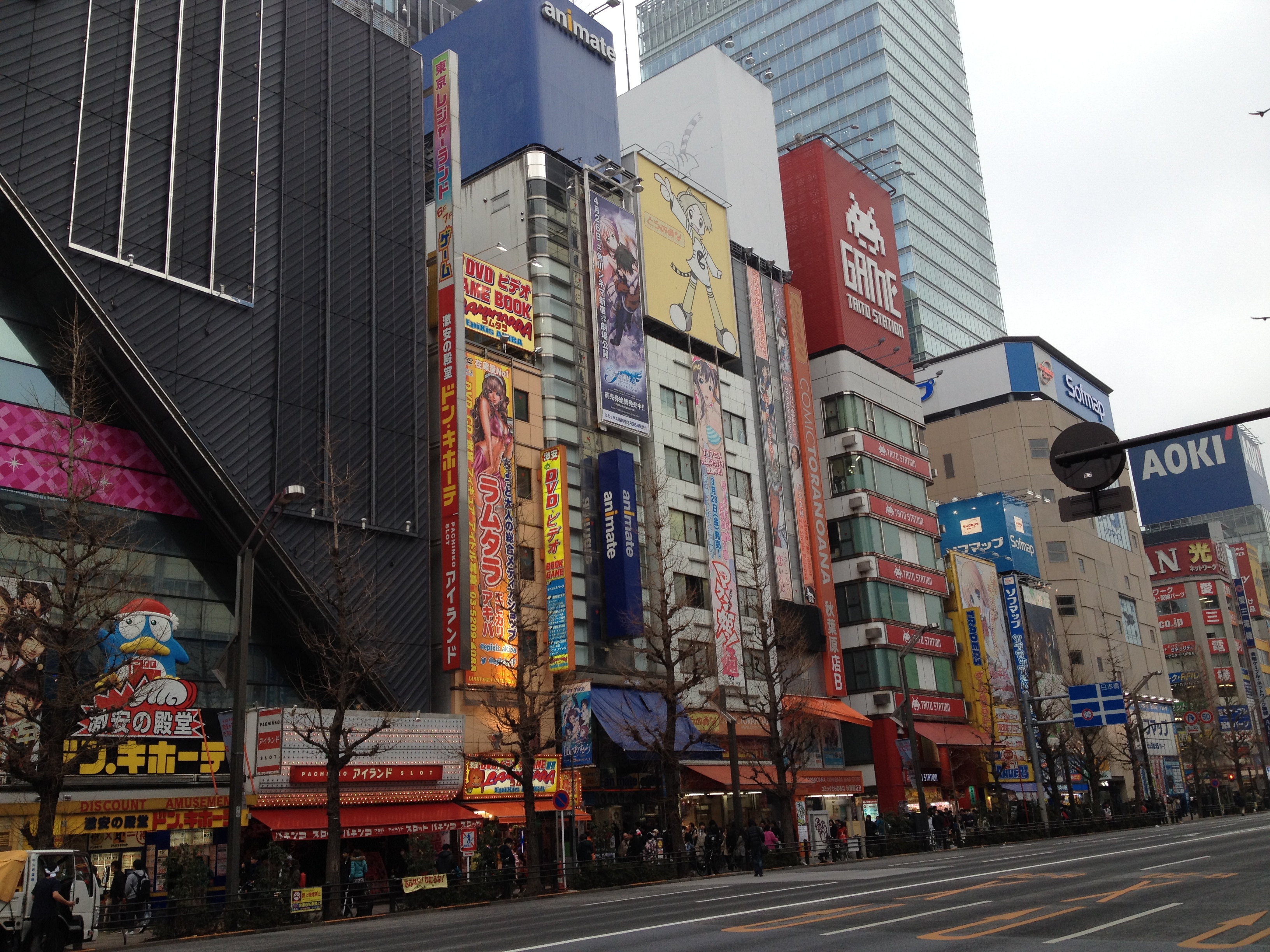 Les parapluies sont de sortie, ce sera un achat du jour … un parapluie transparent très à la mode ici! Nous poursuivons vers Akihabara, le quartier de l’électronique avec des magasins fous d’ordinateurs, jeux, mangas, etc. J’achète déjà ma première petite figurine porte-clé dans une machine à boules. Les salles de Pachinko sont toujours aussi bruyantes mais j’avais oublié les magasins qui vendent des petits chiots tout mignons. Les restaurants sont repérables souvent par les bandes de tissus à leur devanture et il est préférable d’en choisir un avec des photos ou des assiettes modèles en silicone car les menus en anglais ne sont pas fréquents ni détaillés. Nos deux premiers repas seront déjà très biens, correspondant à la commande passée, sans surprise et très bons – de suite une Sapporo et du saké assez bien choisi.