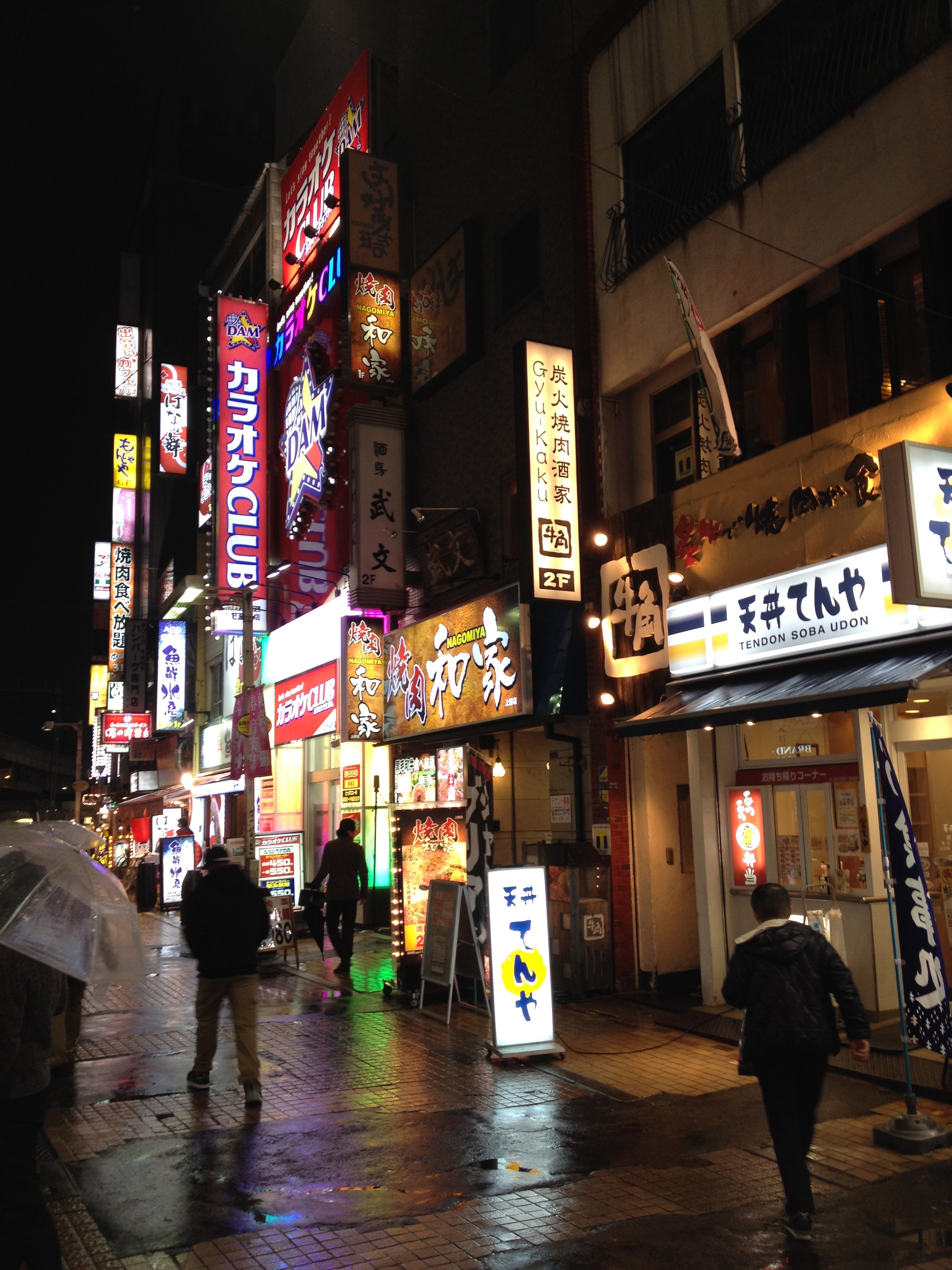 Elite-Inn est un petit immeuble de neuf étages, deux appartements seulement par étage, dans une ruelle toute calme – c’est même incroyablement calme pour dire que nous sommes dans un quartier bouillonnant de la capitale. Ueno est en effet un gros carrefour routier-trains-métro; nous partons faire quelques repérages dans l’après-midi. Beaucoup de monde dans les rues, lumières et grandes affiches comme dans nos souvenirs, certains magasins tout ouverts sur les rues avec des aguicheurs à l’entrée – bavards, au ton chantant. Les magasins dépanneurs que nous connaissions ne manquent pas, Family Mart, 7 Eleven, Lawson et Kato nous a renseigné un supermarché un peu plus important où nous remplissons un sac-à-dos pour garnir notre grand frigo!