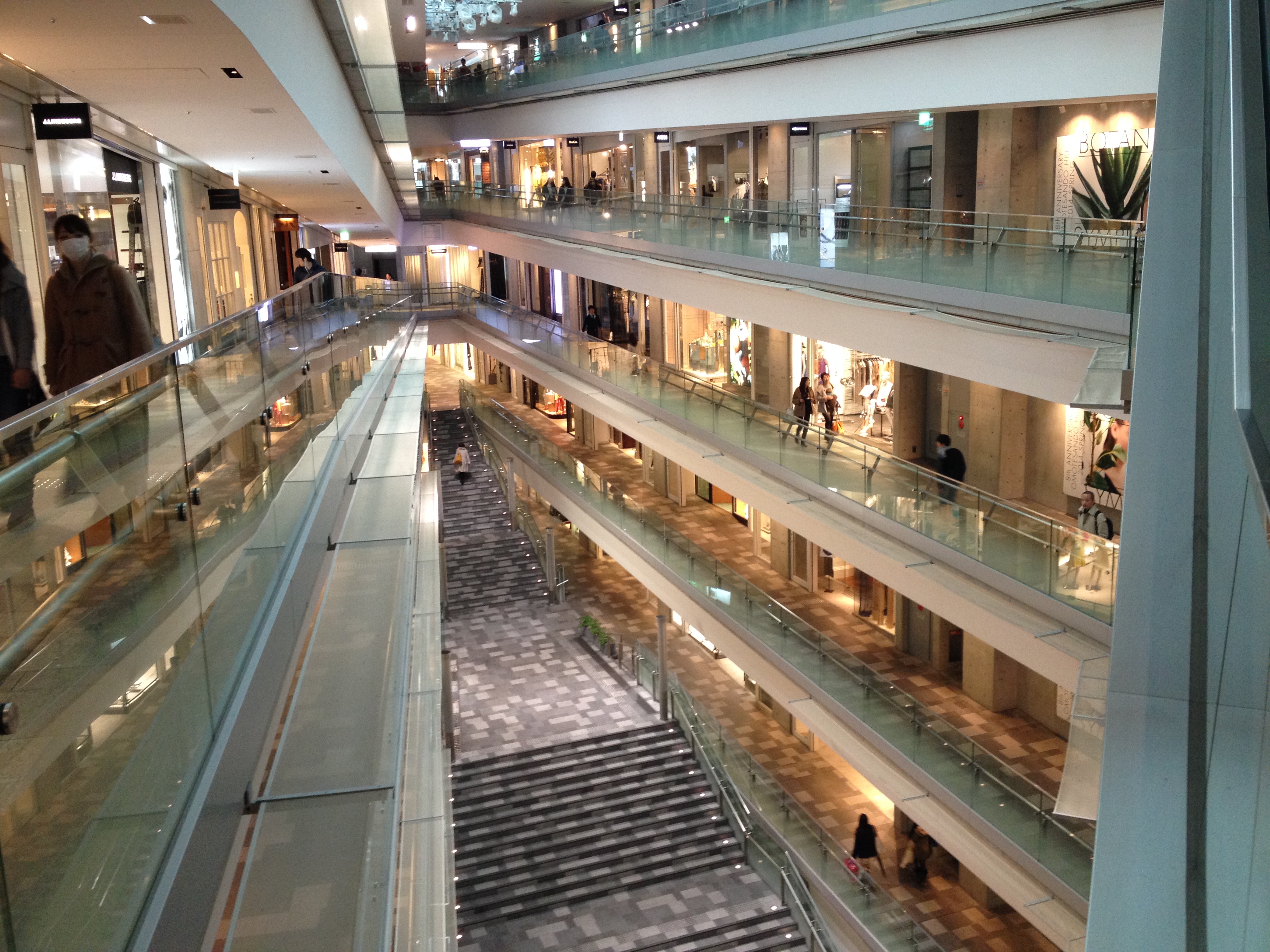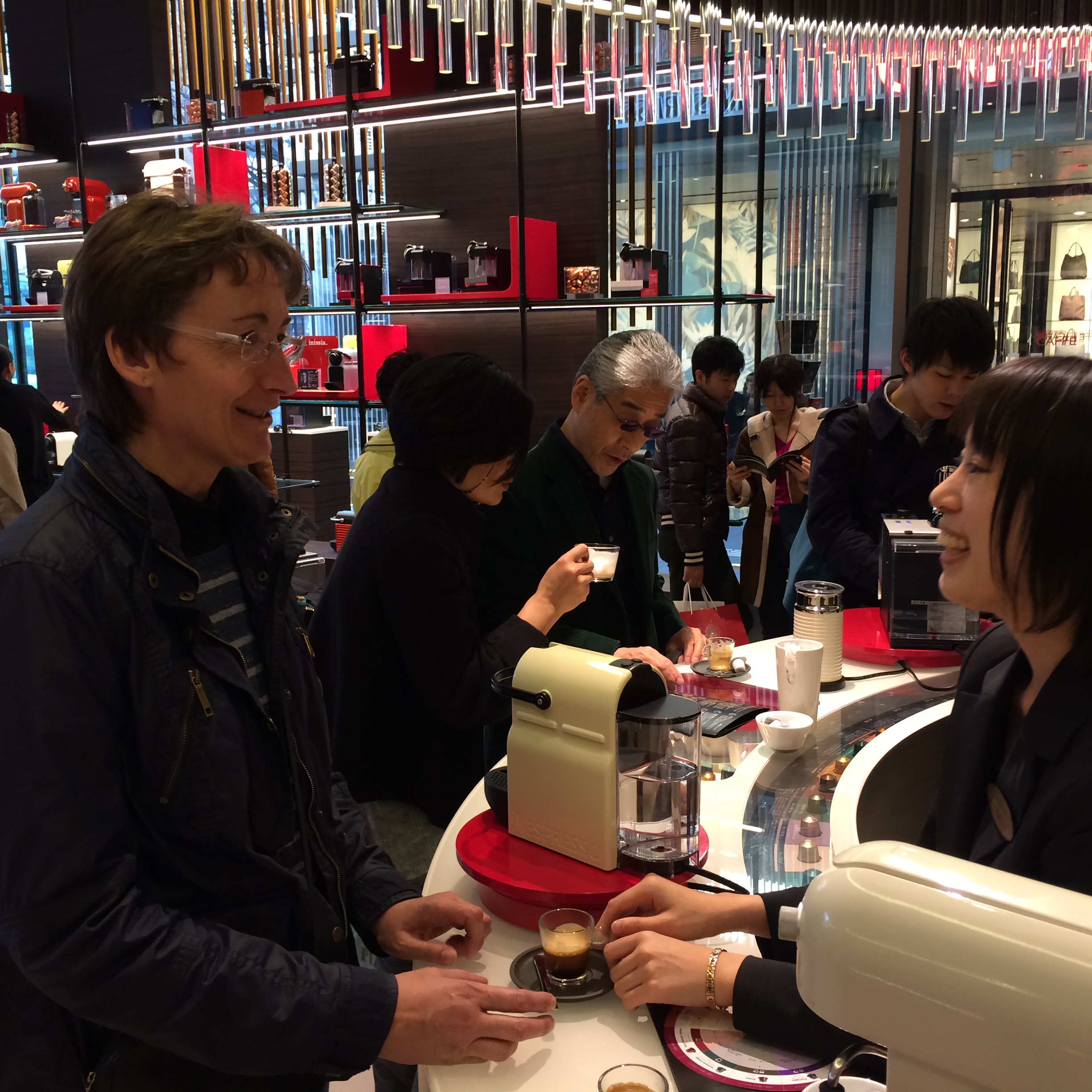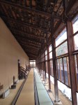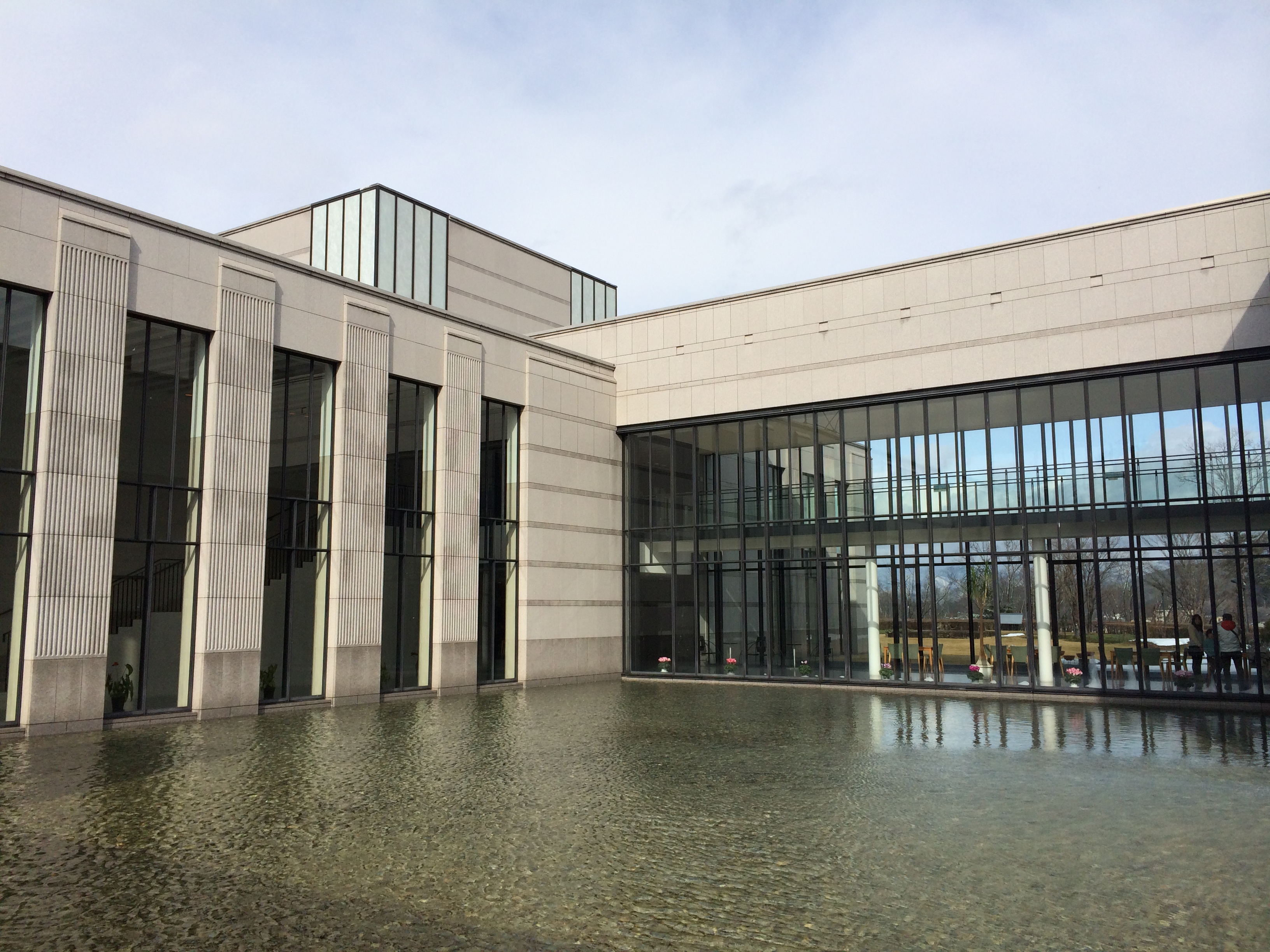 La descente à pied nous permet de nous arrêter au Musée des Arts et l’intuition est excellente; ce musée a reçu la distinction de trois étoiles au Michelin. Le bâtiment est déjà en lui-même une belle réalisation; perché sur une colline, il offre une vue imprenable sur les Alpes japonaises du nord. Il est dédié à l’Art Nouveau avec une influence d’Europe. Nous y admirons une collection de verreries, dont une fontaine en verre de trois mètres de haut, réplique d’une des Champs Elysées, œuvre du maître verrier René Lalique. Des vases, des plats, des bijoux d’autres artistes comme Tiffany, Gallé, Marinot me passionnent plus que mon mari et ensuite une exposition de mobilier art déco nous permet de connaître Charles Rennie Mackintosh. La boutique du musée présente des objets souvenirs très tentants et le café, au décor et à l’ambiance Mackintosh offre une pause bienvenue.