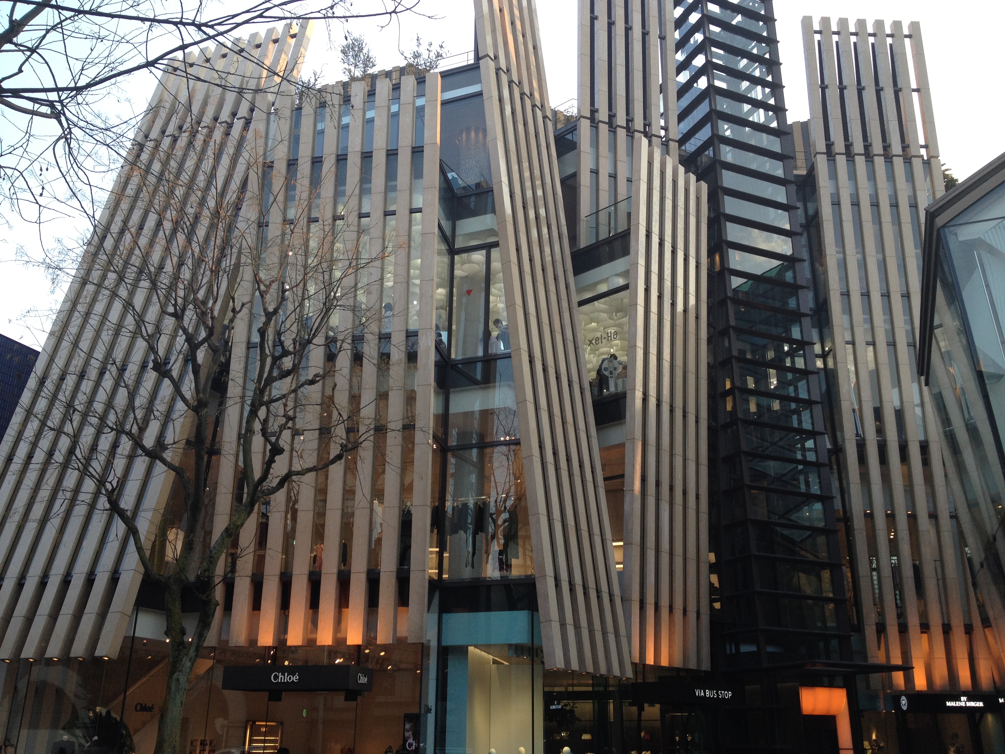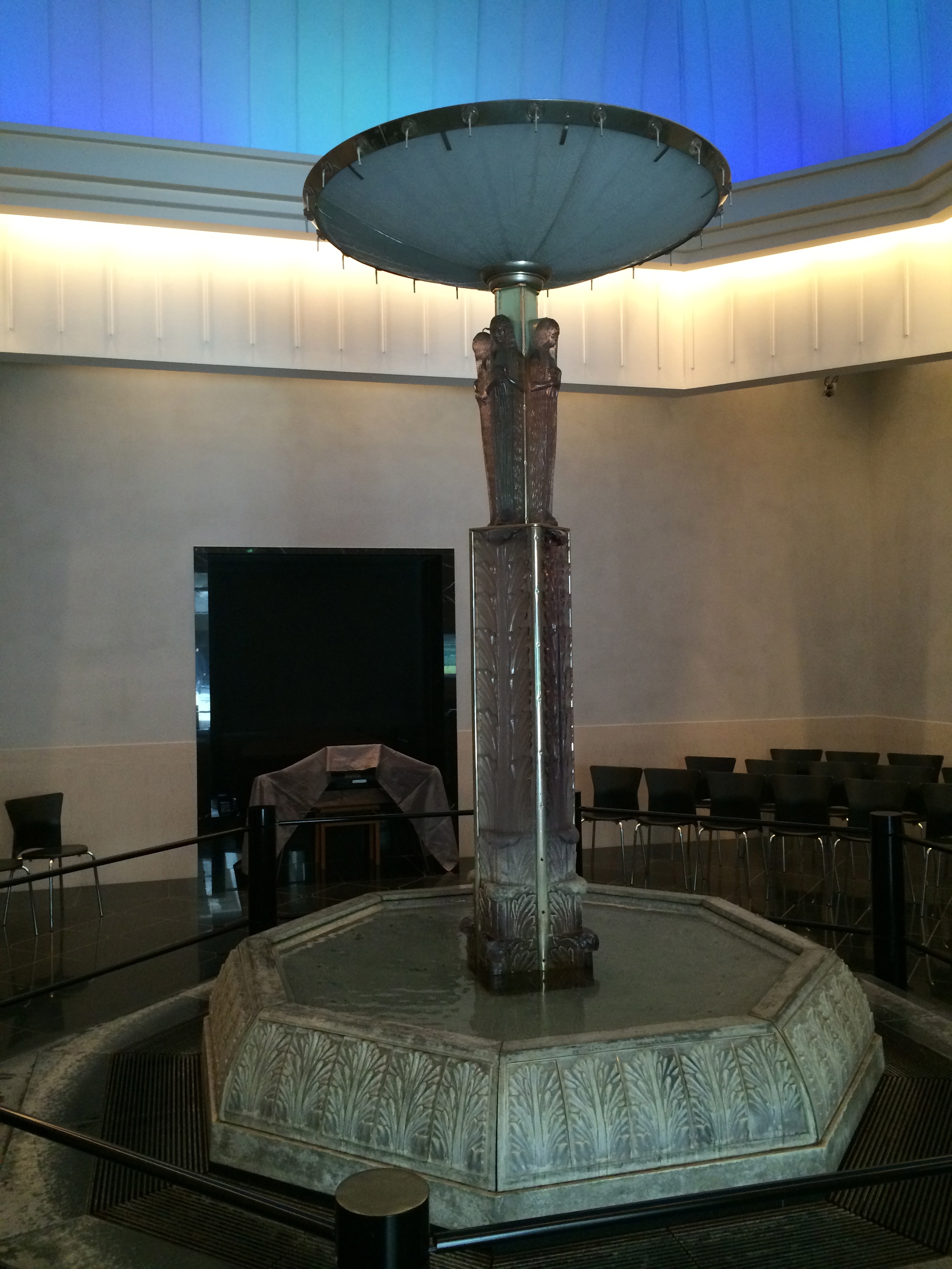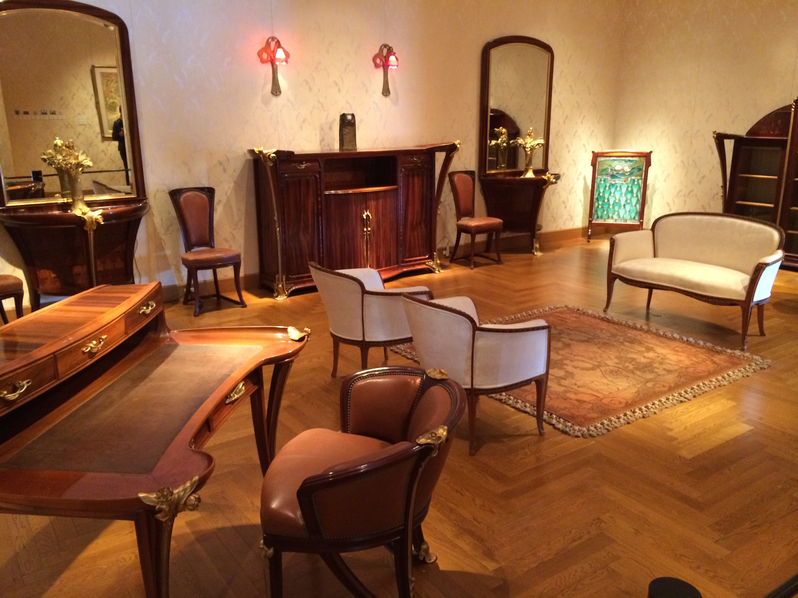 La descente à pied nous permet de nous arrêter au Musée des Arts et l’intuition est excellente; ce musée a reçu la distinction de trois étoiles au Michelin. Le bâtiment est déjà en lui-même une belle réalisation; perché sur une colline, il offre une vue imprenable sur les Alpes japonaises du nord. Il est dédié à l’Art Nouveau avec une influence d’Europe. Nous y admirons une collection de verreries, dont une fontaine en verre de trois mètres de haut, réplique d’une des Champs Elysées, œuvre du maître verrier René Lalique. Des vases, des plats, des bijoux d’autres artistes comme Tiffany, Gallé, Marinot me passionnent plus que mon mari et ensuite une exposition de mobilier art déco nous permet de connaître Charles Rennie Mackintosh. La boutique du musée présente des objets souvenirs très tentants et le café, au décor et à l’ambiance Mackintosh offre une pause bienvenue.