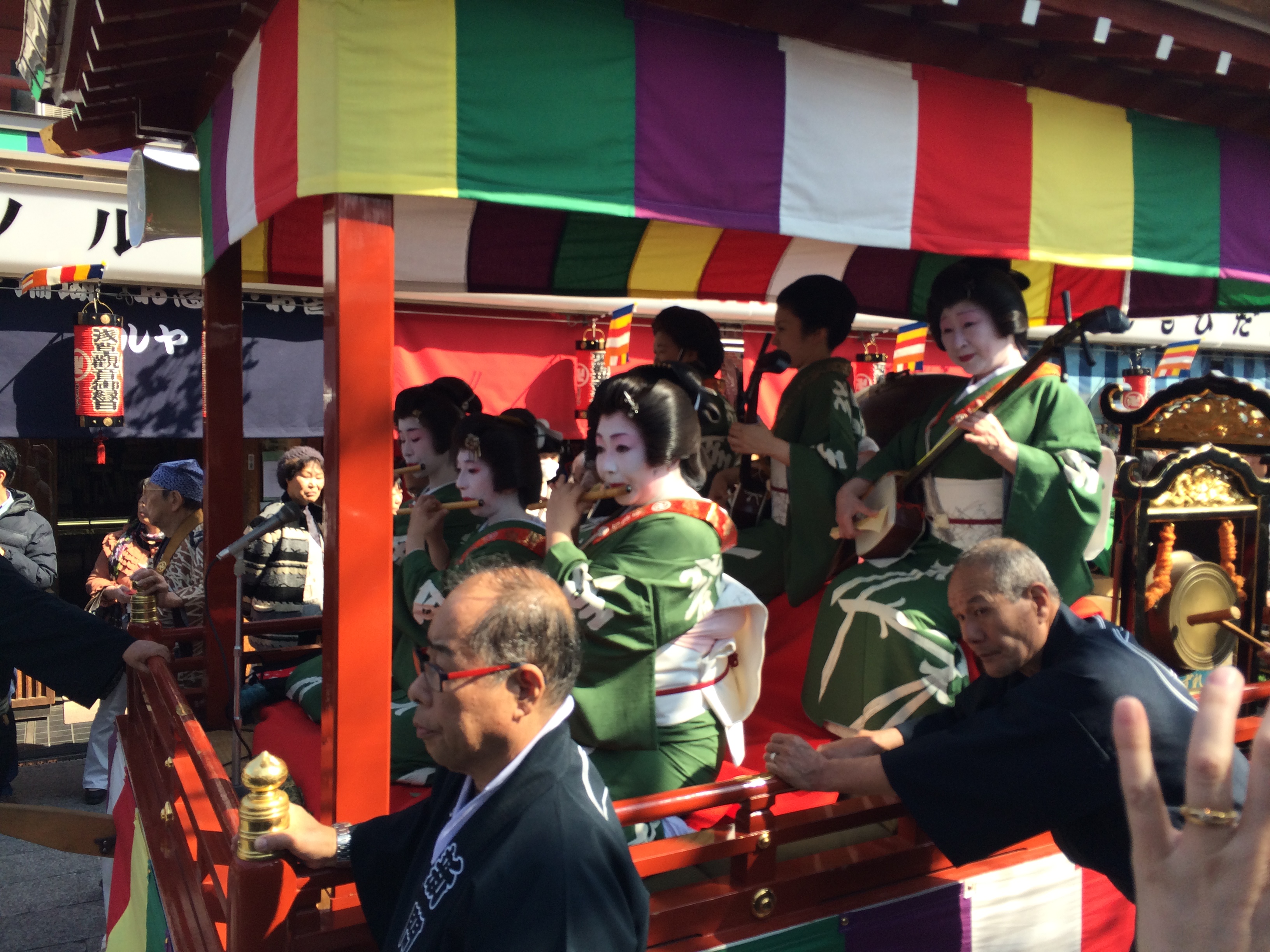 Le hall Yatai Kaikan en expose quatre durant toute l’année; c’est coloré et impressionnant par leur hauteur. Ils dateraient tous du 17ième siècle et la tradition se perpétue, attirant toujours les foules – les photos et courts-métrages font rêver. Ces chars sont montés sur roues mais il en existe un, appelé Mikoshi, qui fut porté à l’époque par 80 hommes et son poids est de 2,5 tonnes – une réplique plus petite le remplace, il devenait impossible de trouver 80 volontaires qui de plus devaient avoir la même taille.
