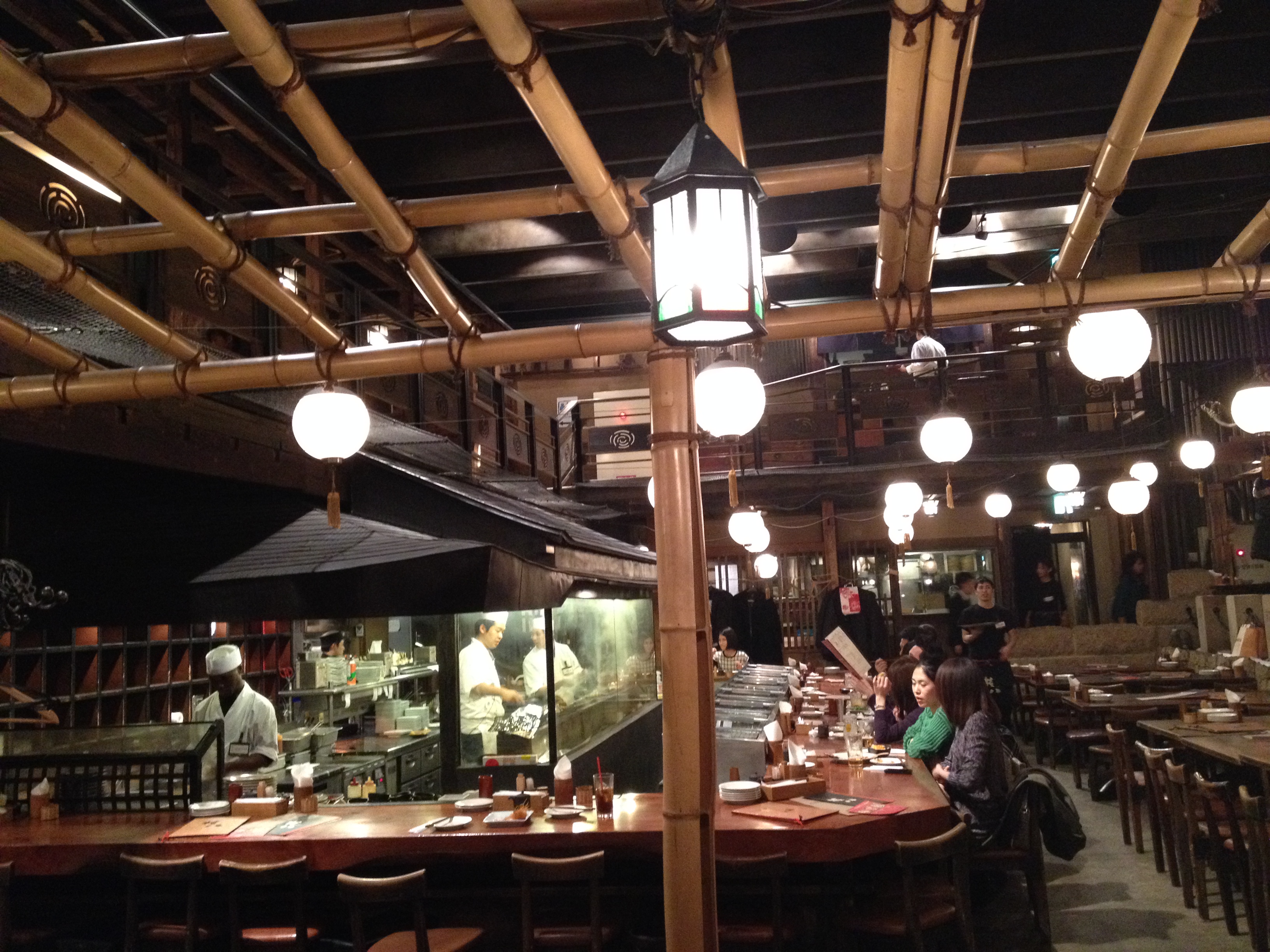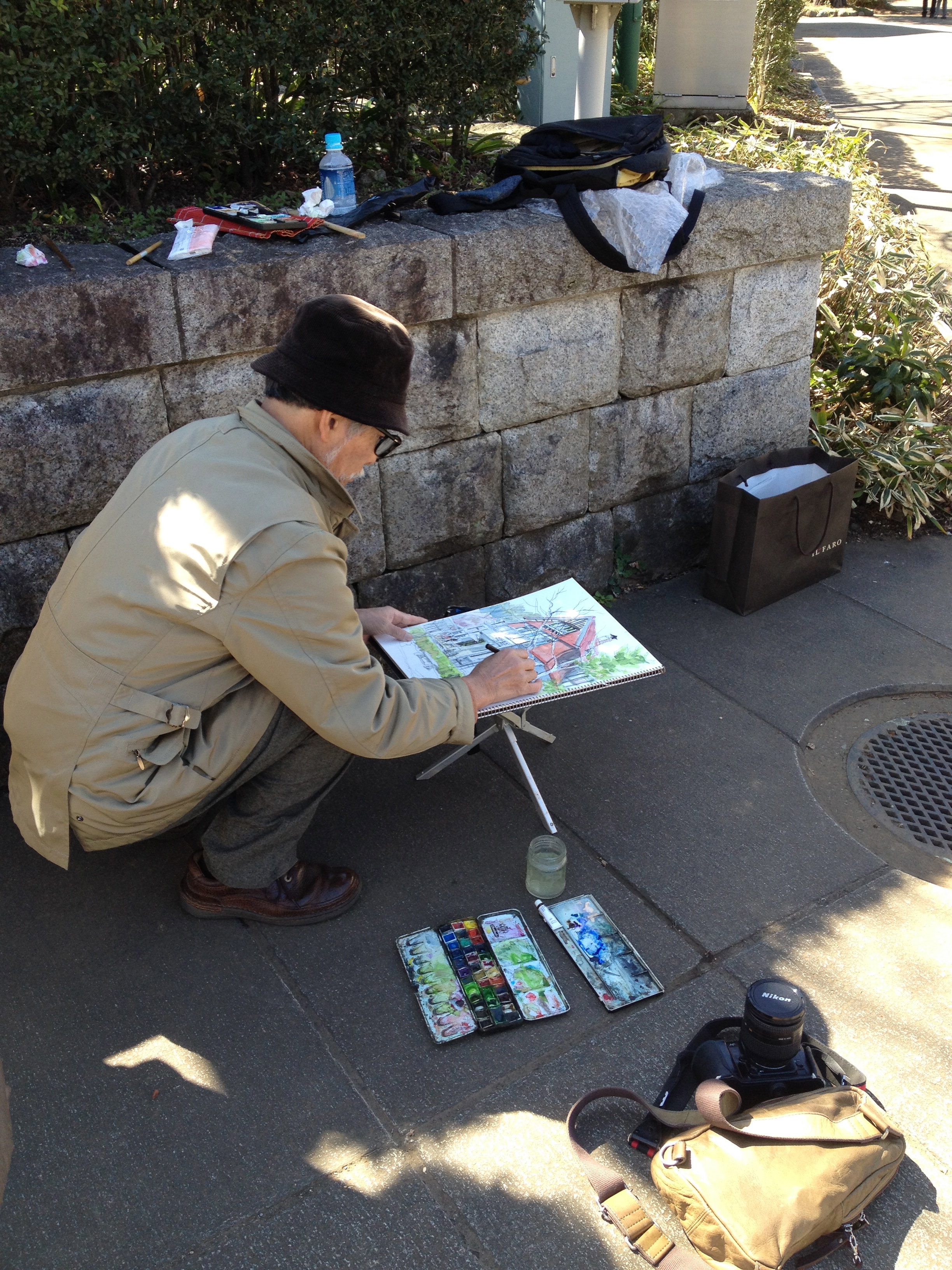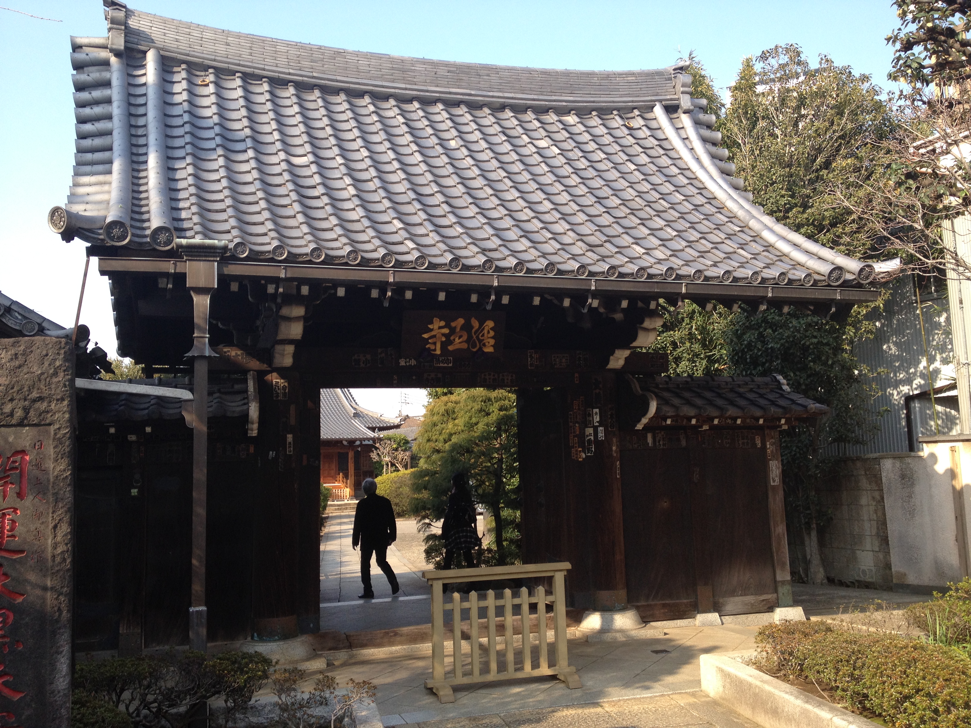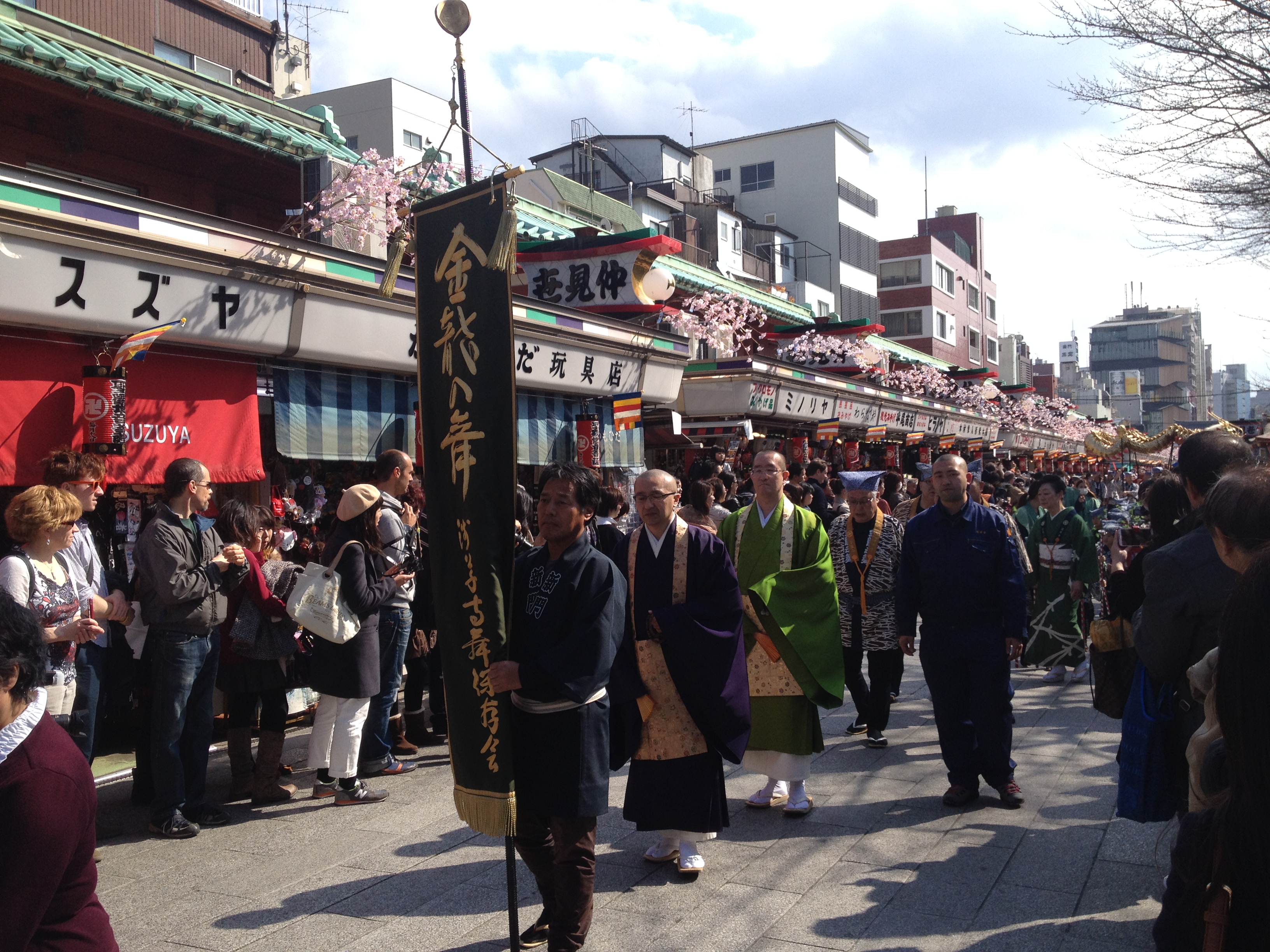 Plusieurs maisons hébergent des distilleries de saké; elles sont repérables par une grosse boule de feuilles de cyprès qui se balance au-dessus de l’entrée. On y déguste diverses variétés de cet alcool de riz et nous nous laissons tenter par une bouteille qui a reçu un prix d’or en 2013 et dont la tradition remonte à 1961. C’est vraiment l’escapade où nous devenons de plus en plus comme des « locaux« ! Et nous continuons à sillonner ce quartier typique qui est bien fréquenté et où s’entrechoquent les parapluies.