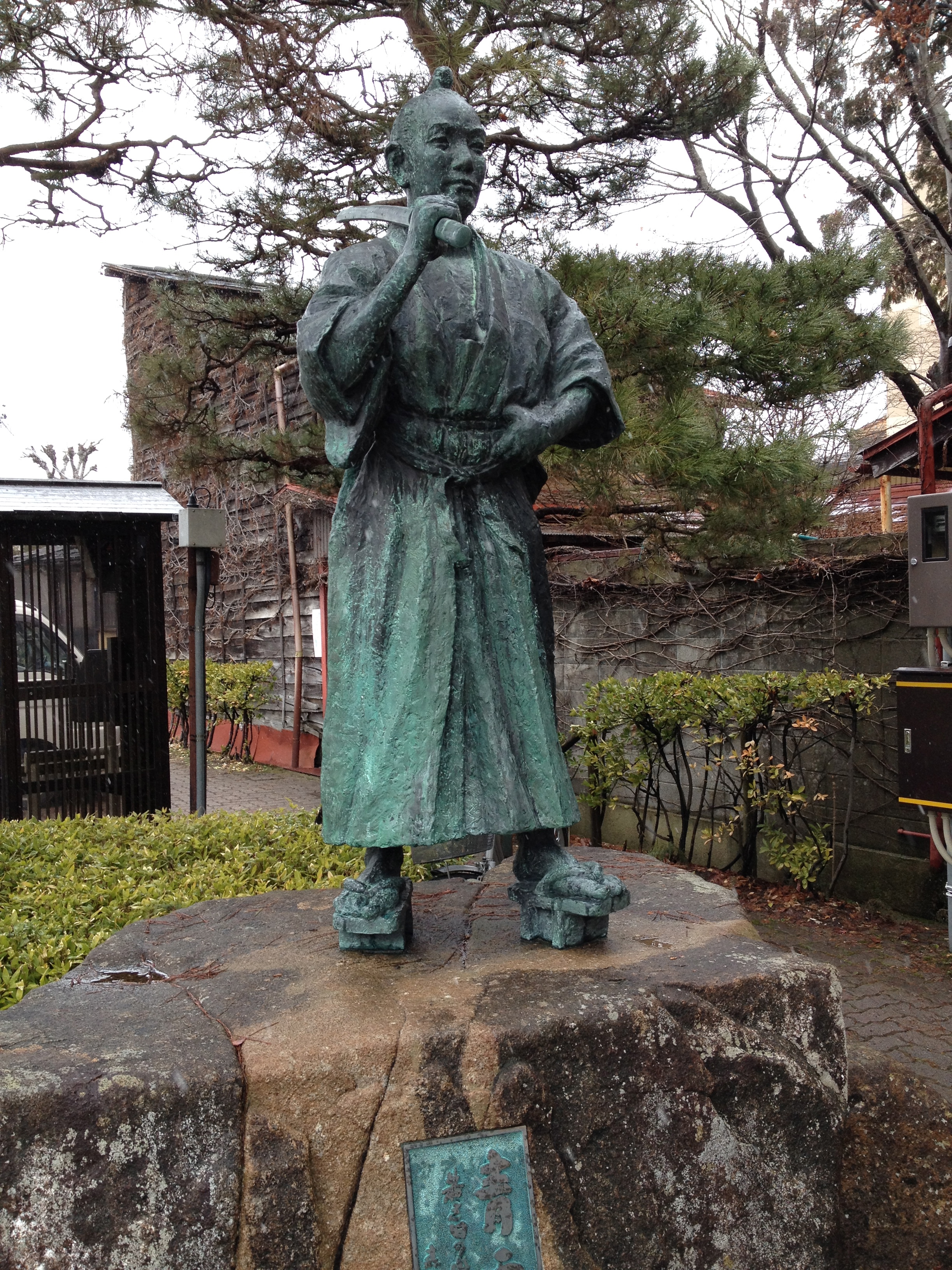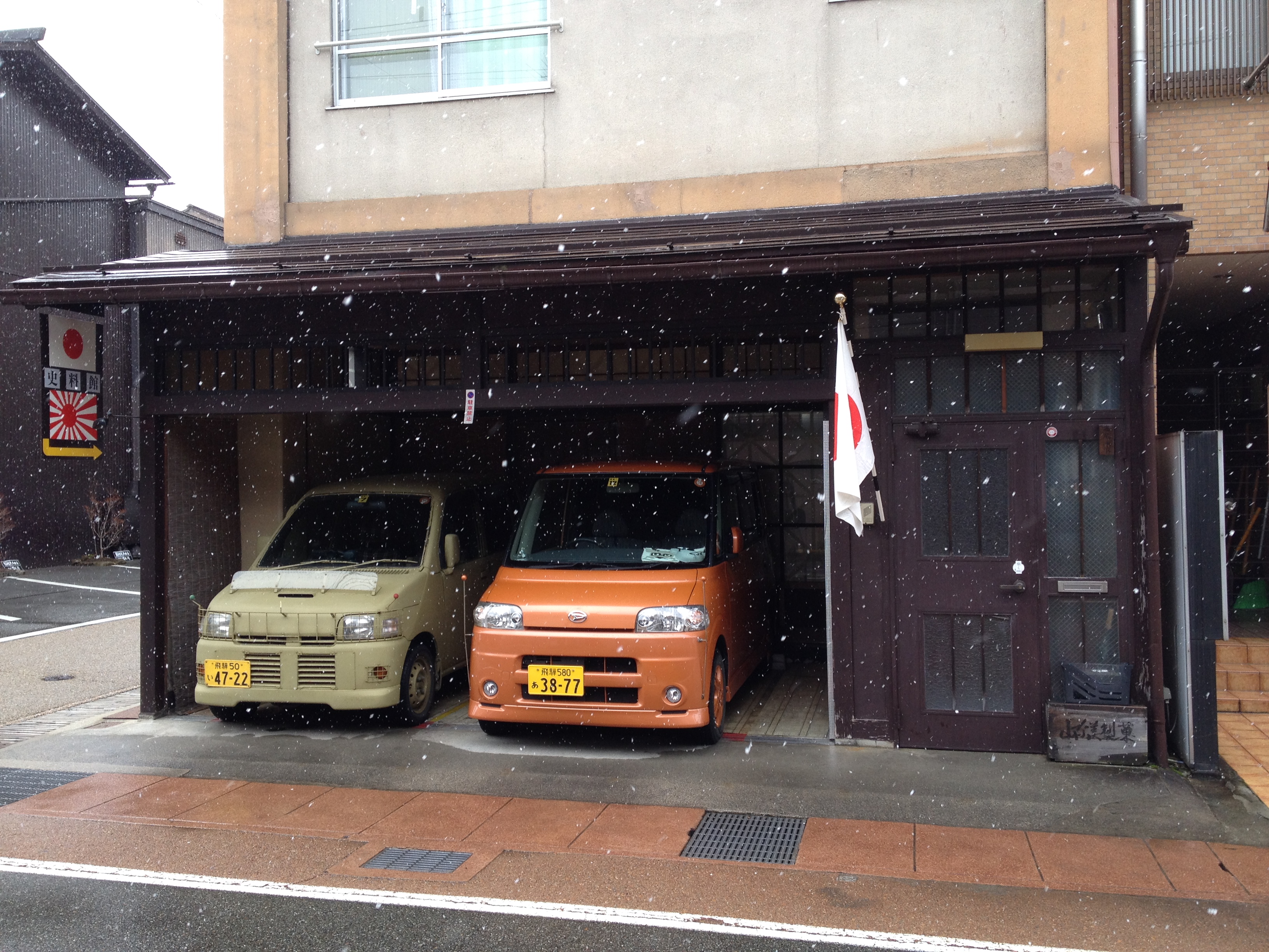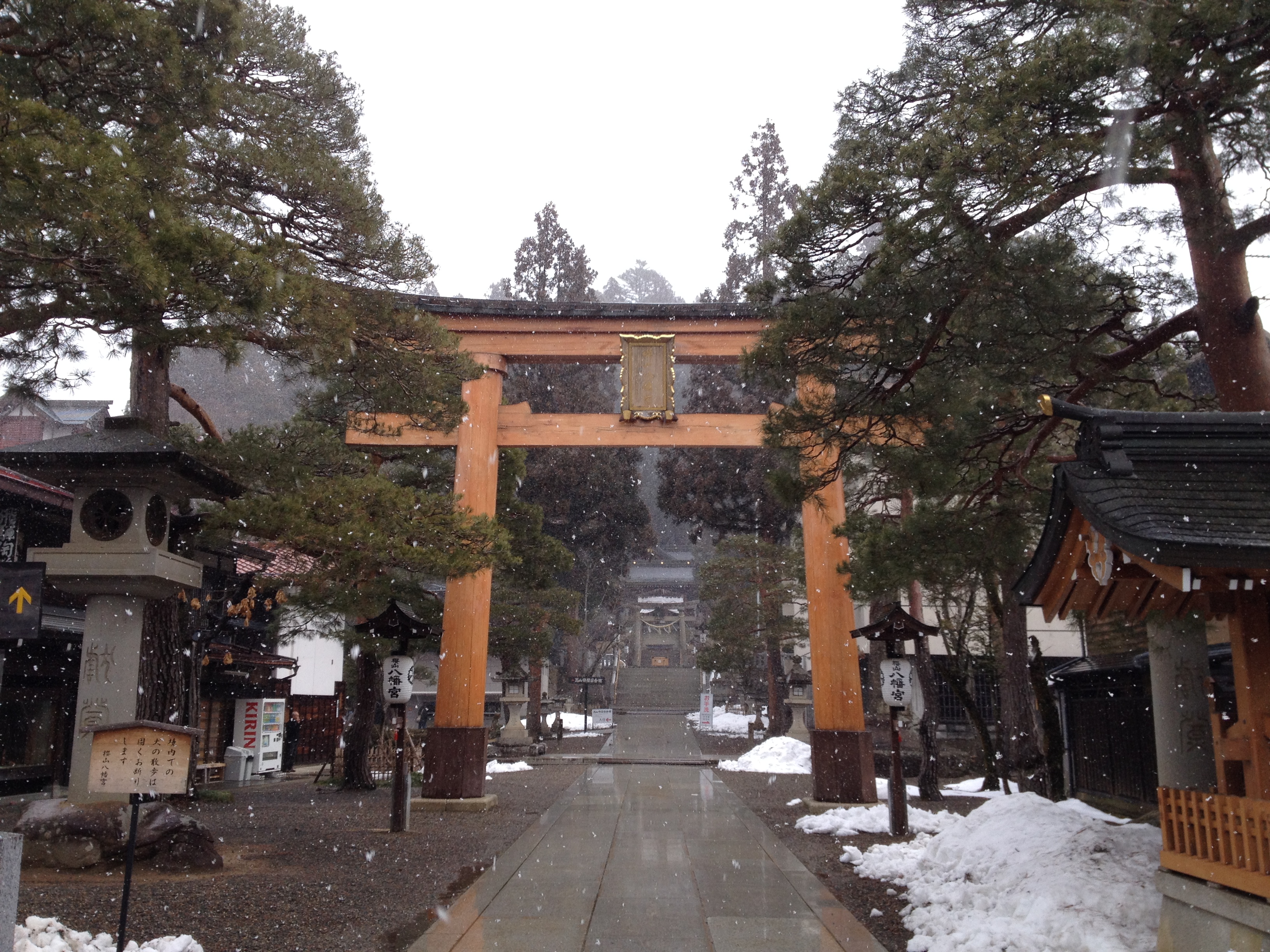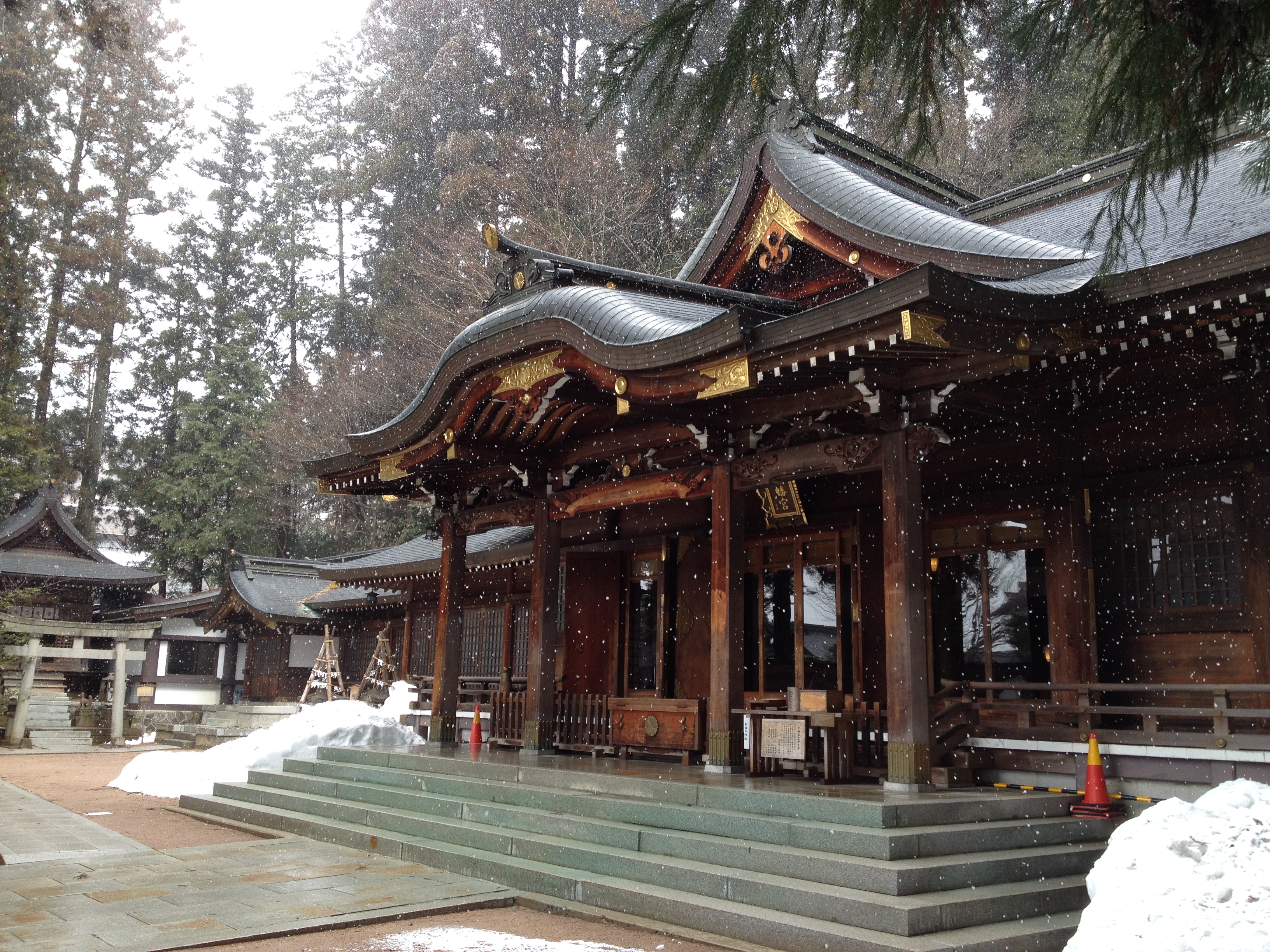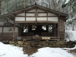 Ce hangar jouxte le sanctuaire Sakuramaya Hachimangu que nous trouvons fort joli, coincé à la montagne et la neige qui a garni la forêt aux alentours nous montre une image nouvelle de ces lieux de recueillement.
