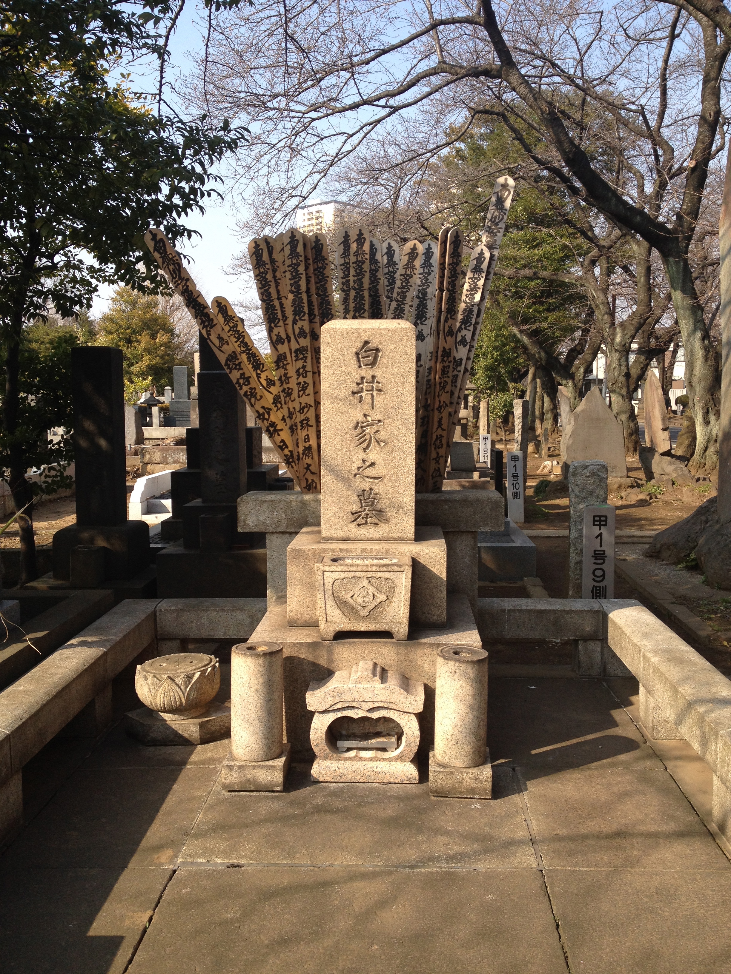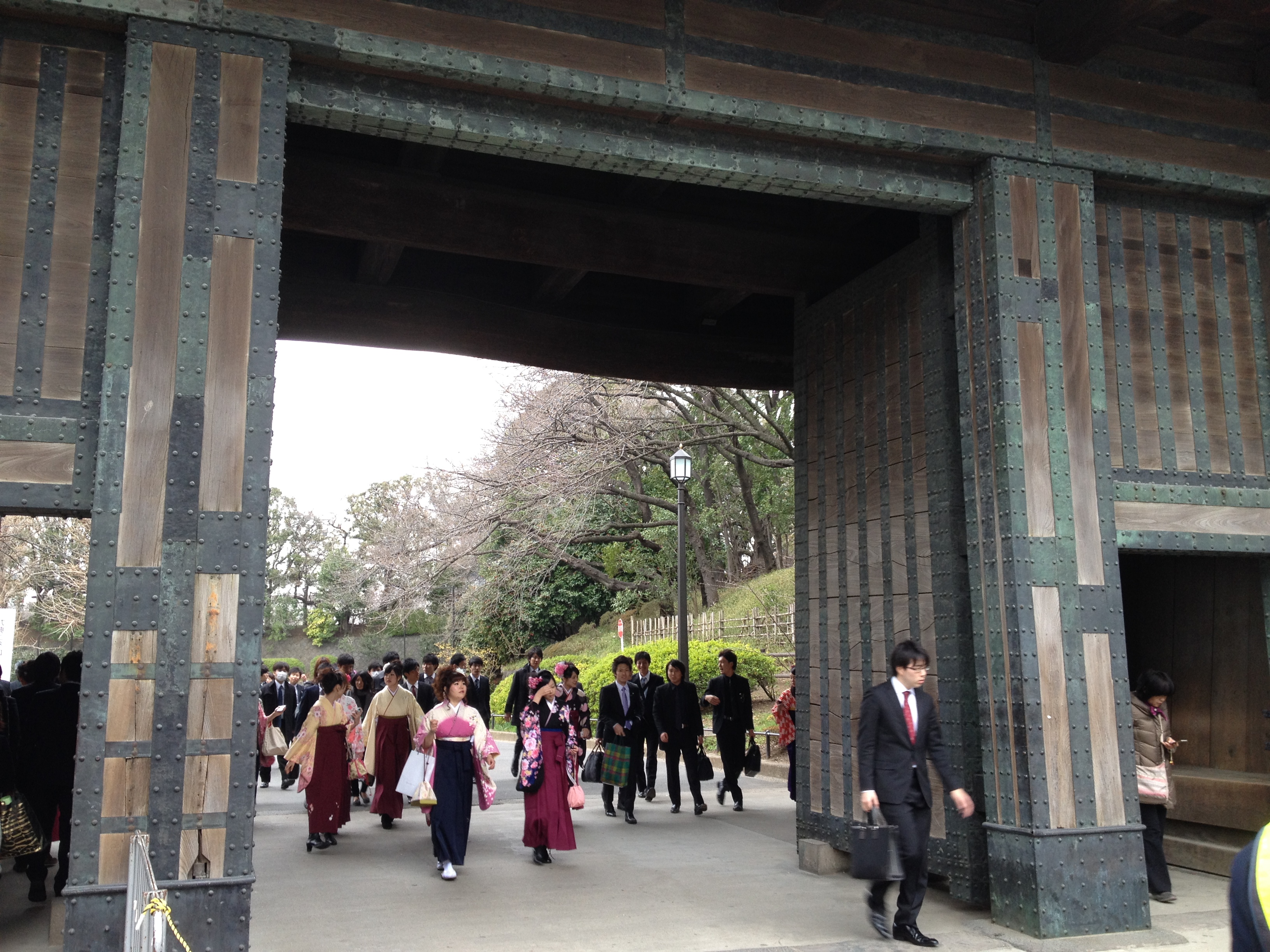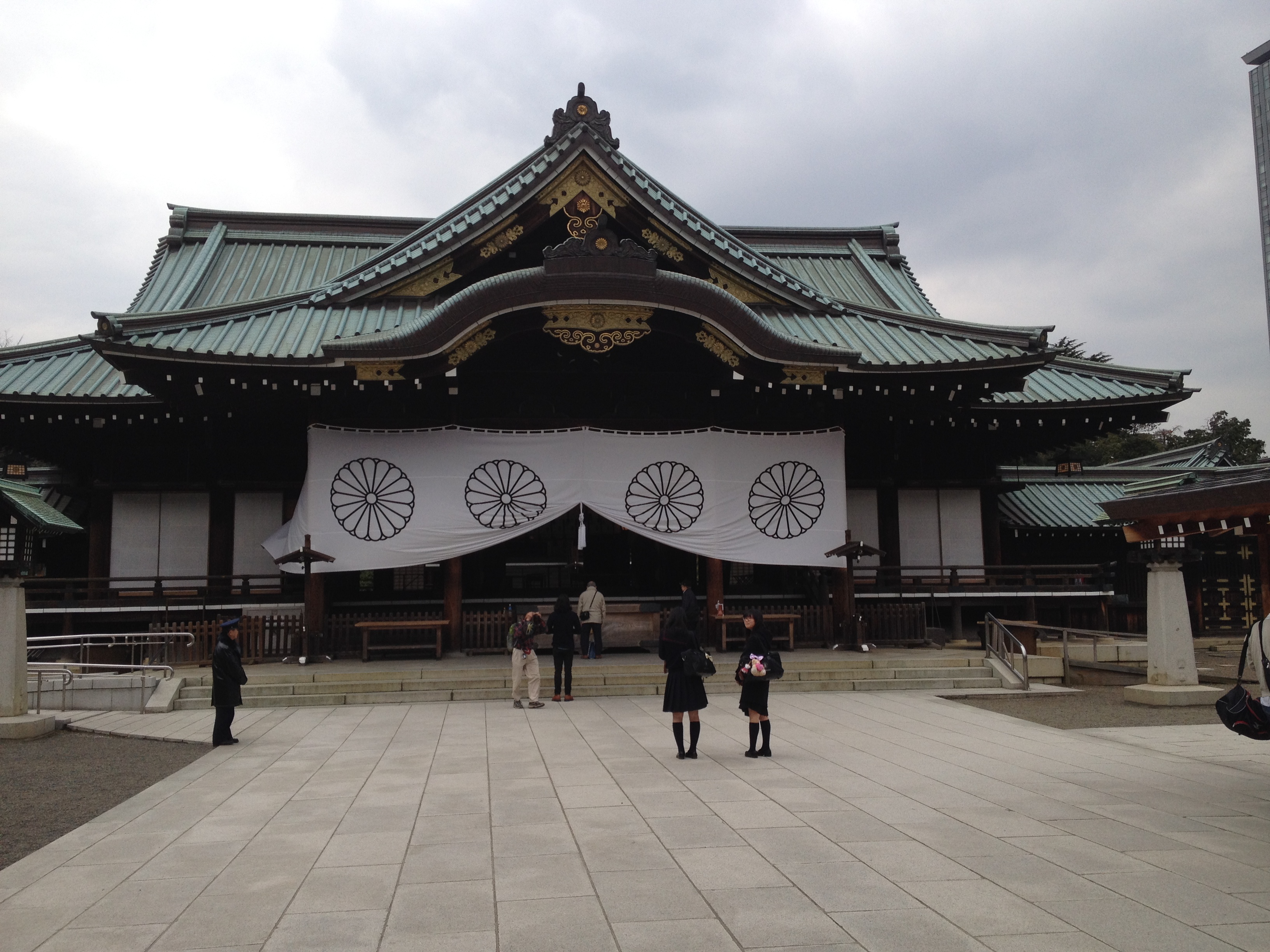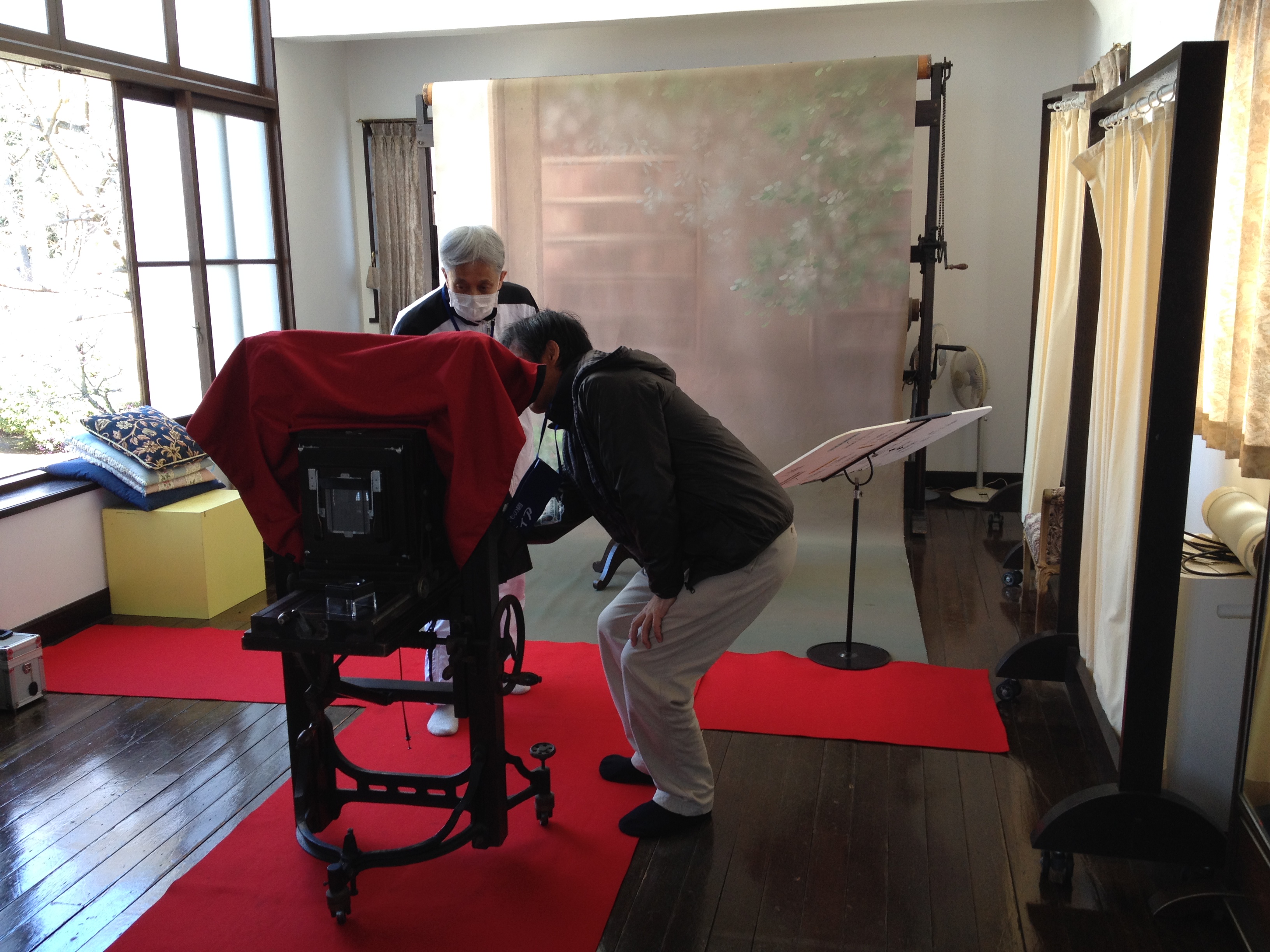 Nous nous trouvons à l’entrée de Takayama-jinya, l’ancien château où vivait le clan Kanamori et ensuite le gouvernement des shoguns jusqu’au 19ième siècle. La première construction date de 1615 mais ce que nous visitons de nos jours en est la version reconstruite deux cents ans plus tard. On y visite de nombreuses salles de réception, les cuisines, des bureaux, des salles de repos ou pour le thé; on mesurait la taille des pièces en nombre de tatamis au sol. Elles sont toujours modulables, tout est parfaitement à l’équerre, les parois coulissent par simple glissement bois sur bois. Le jardin et la cour intérieure doivent être de toute beauté à la saison des feuilles et des fleurs. Les greniers à riz se visitent, sans photo autorisée; c’est là qu’était stocké ce que l’état percevait comme taxe auprès des paysans. Une salle de torture est reconstituée et illustrée – les sévices n’étaient pas légers!