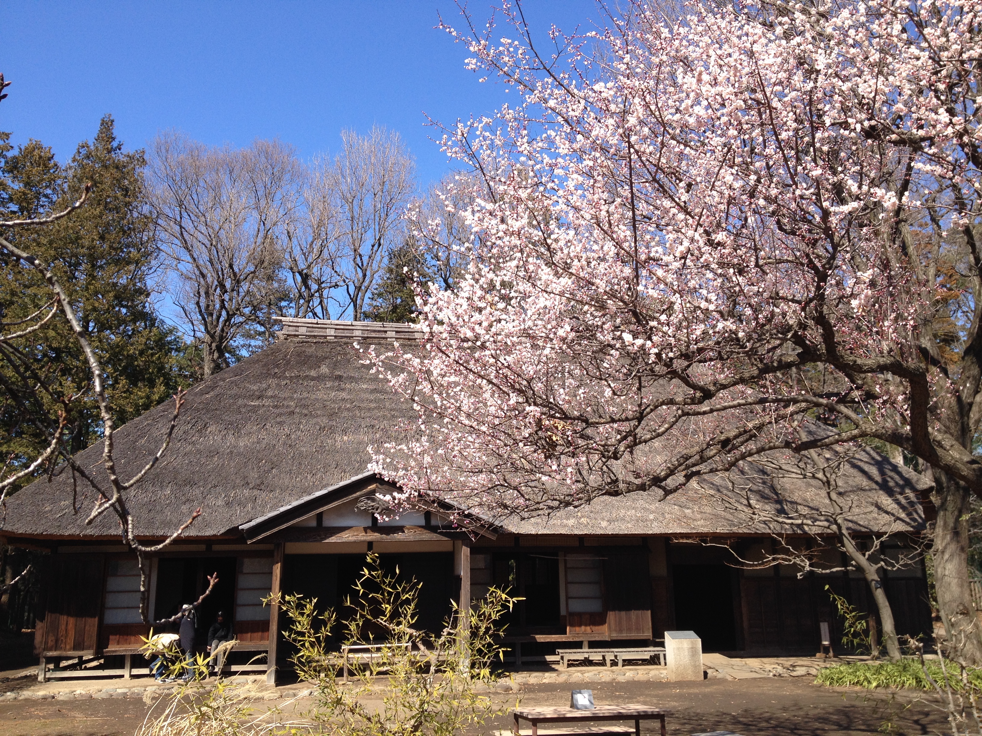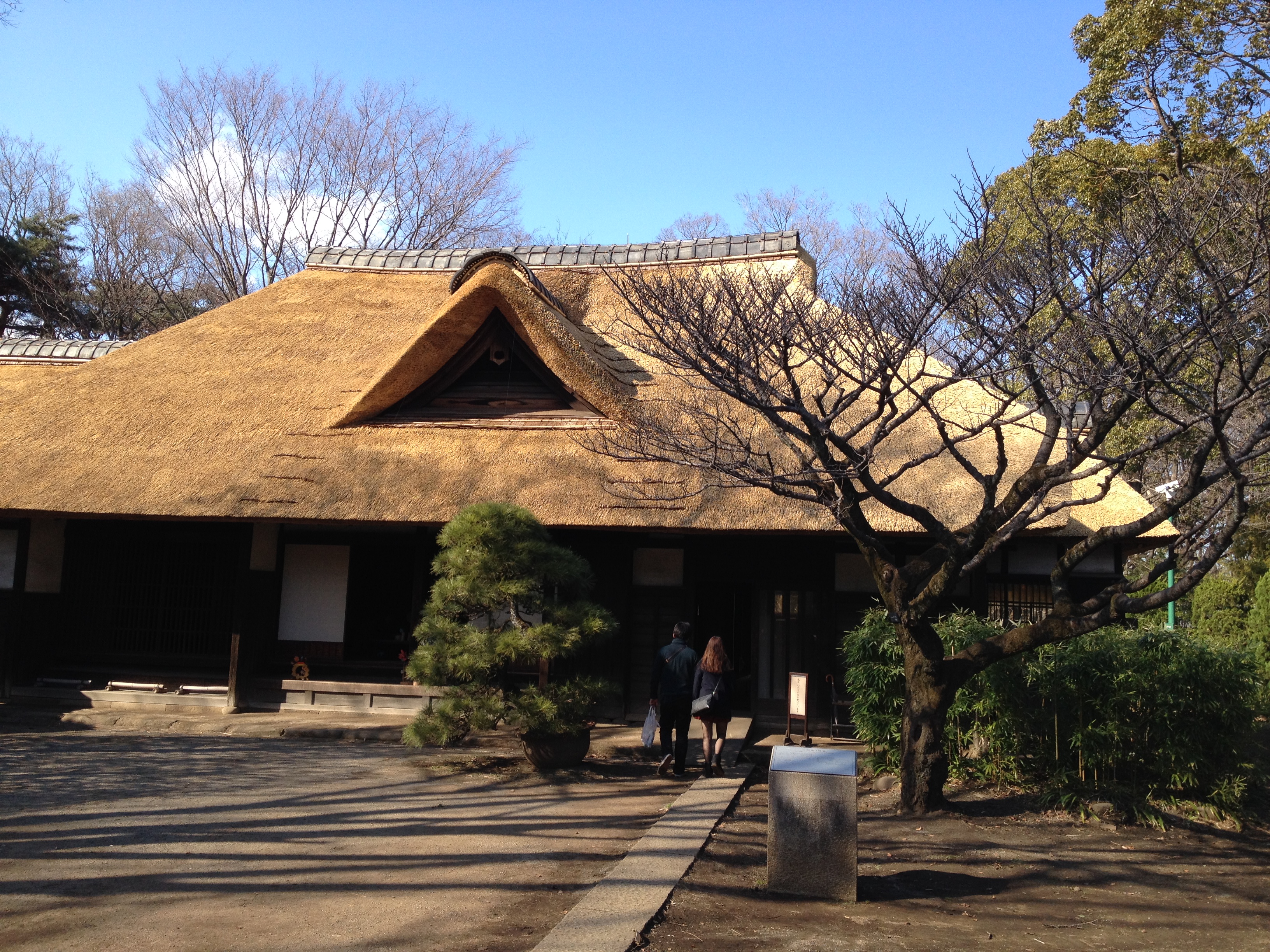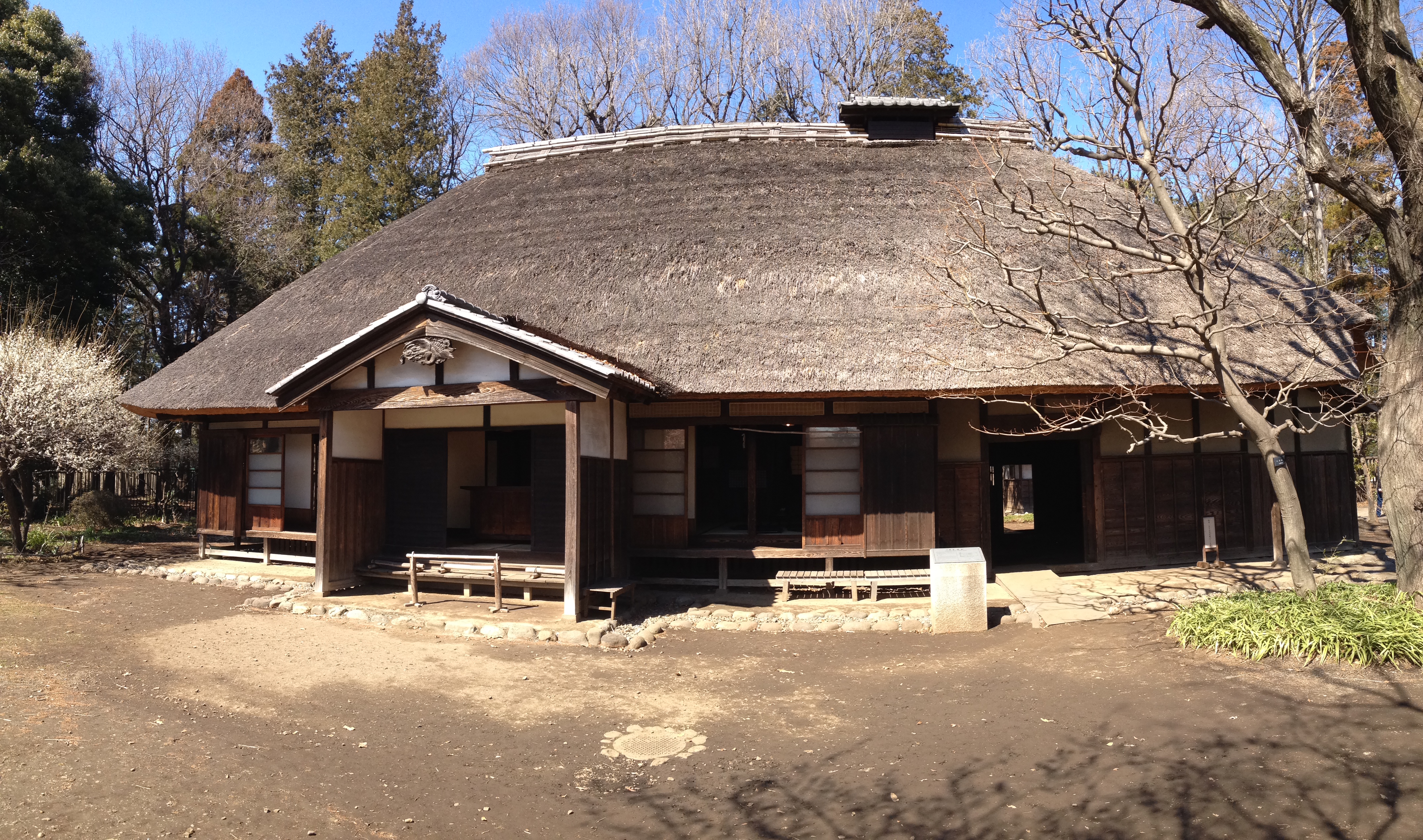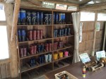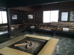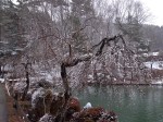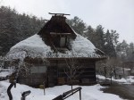 Ayant dû gravir quelques dizaines de mètres, le paysage est ici bien enneigé et ce n’en sera que plus beau dès que le ciel se dégagera de sa grisaille. Tout est prévu pour faciliter la vie des visiteurs; il y a non seulement des parapluies à disposition mais aussi des paires de bottes en caoutchouc en libre accès … incroyable, dans de nombreux autres pays, elles auraient disparu depuis longtemps. Hida no sato est un vaste parc où des fermes et maisons anciennes ont été reconstruites autour d’un étang; elles proviennent toutes de la région et datent pour certaines du milieu du 18ième siècle. Les toits sont en bardeaux ou en chaume, comme ceux que nous avons déjà admirés au musée en plein air de Tokyo. Toutefois la particularité des toits de ces fermes d’une région montagneuse est leur pente très forte; à cela, il y a deux explications : le rappel des mains en prière ou la neige qui ne peut s’y accumuler. Cet habitat traditionnel de la région du Chûbu se nomme Gasshô zukuri. Cette visite valait le détour, c’est paisible et les intérieurs sentent toujours bon la fumée, le bois, la paille.