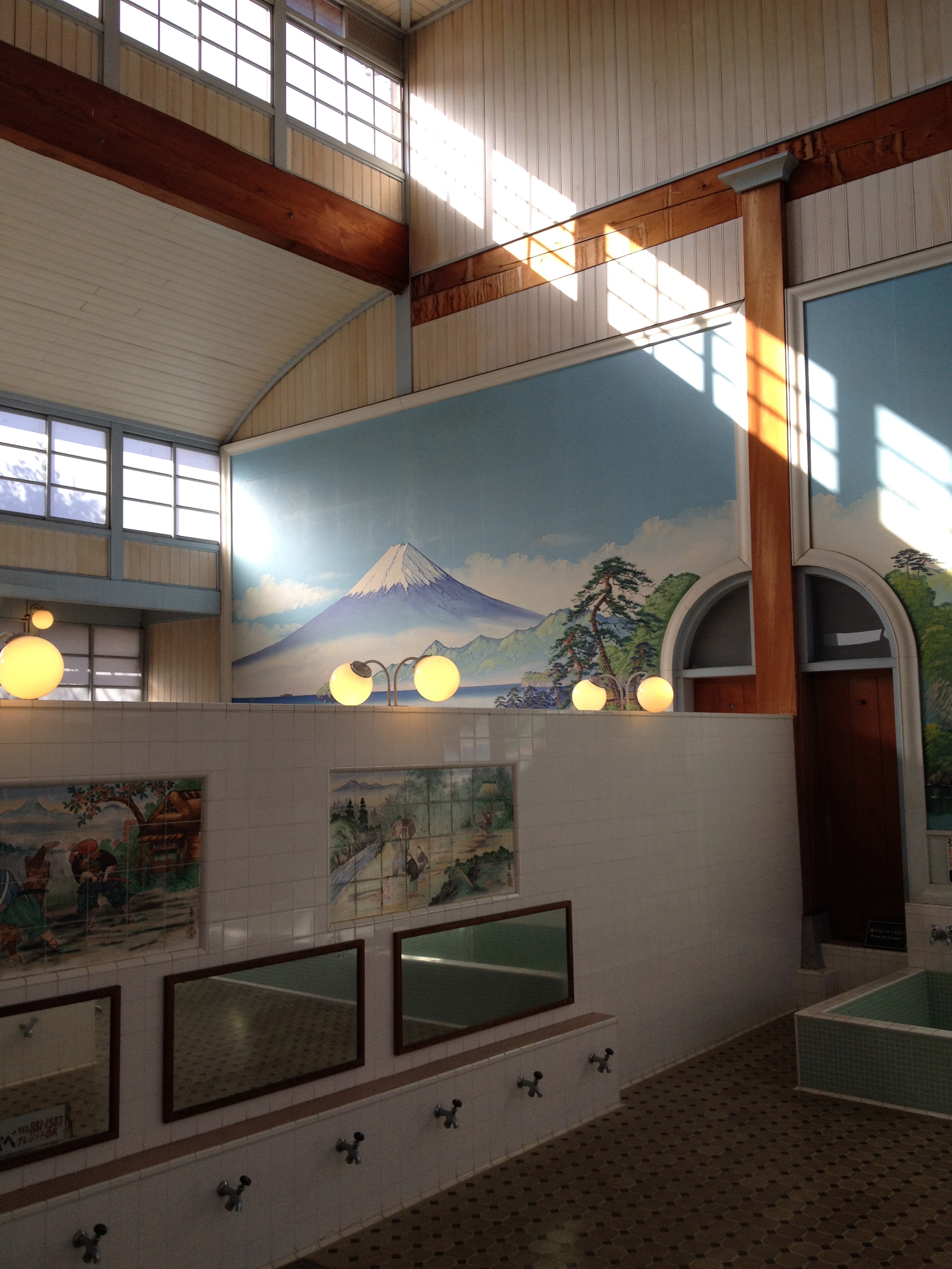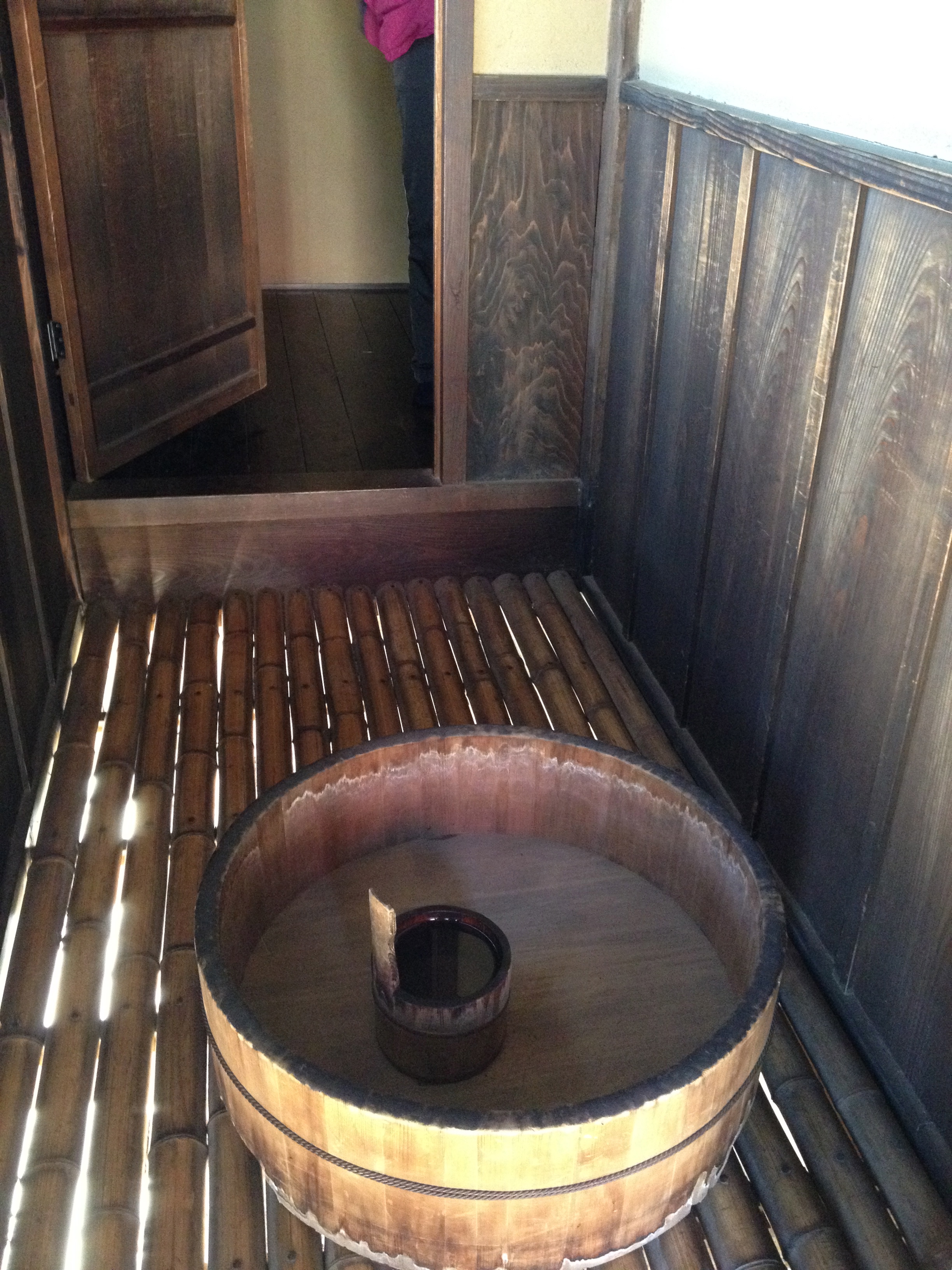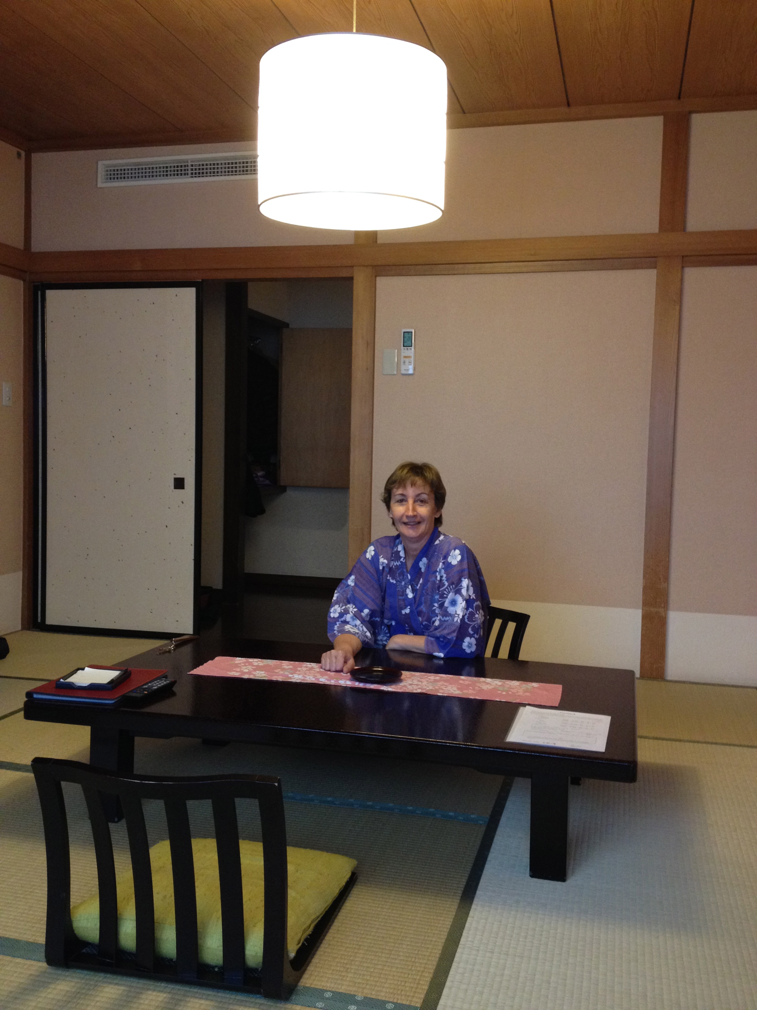 Je n’ai pas encore parlé de la salle-de-bain, qui est un modèle réduit des anciens bains publics c’est-à-dire composée d’une partie où sur un tabouret très très bas, on se savonne, on se rince avec un baquet ou la douchette; une fois bien propre, on peut se détendre dans l’eau chaude de la baignoire. Et le Japon a de moins en moins de secrets pour nous …
