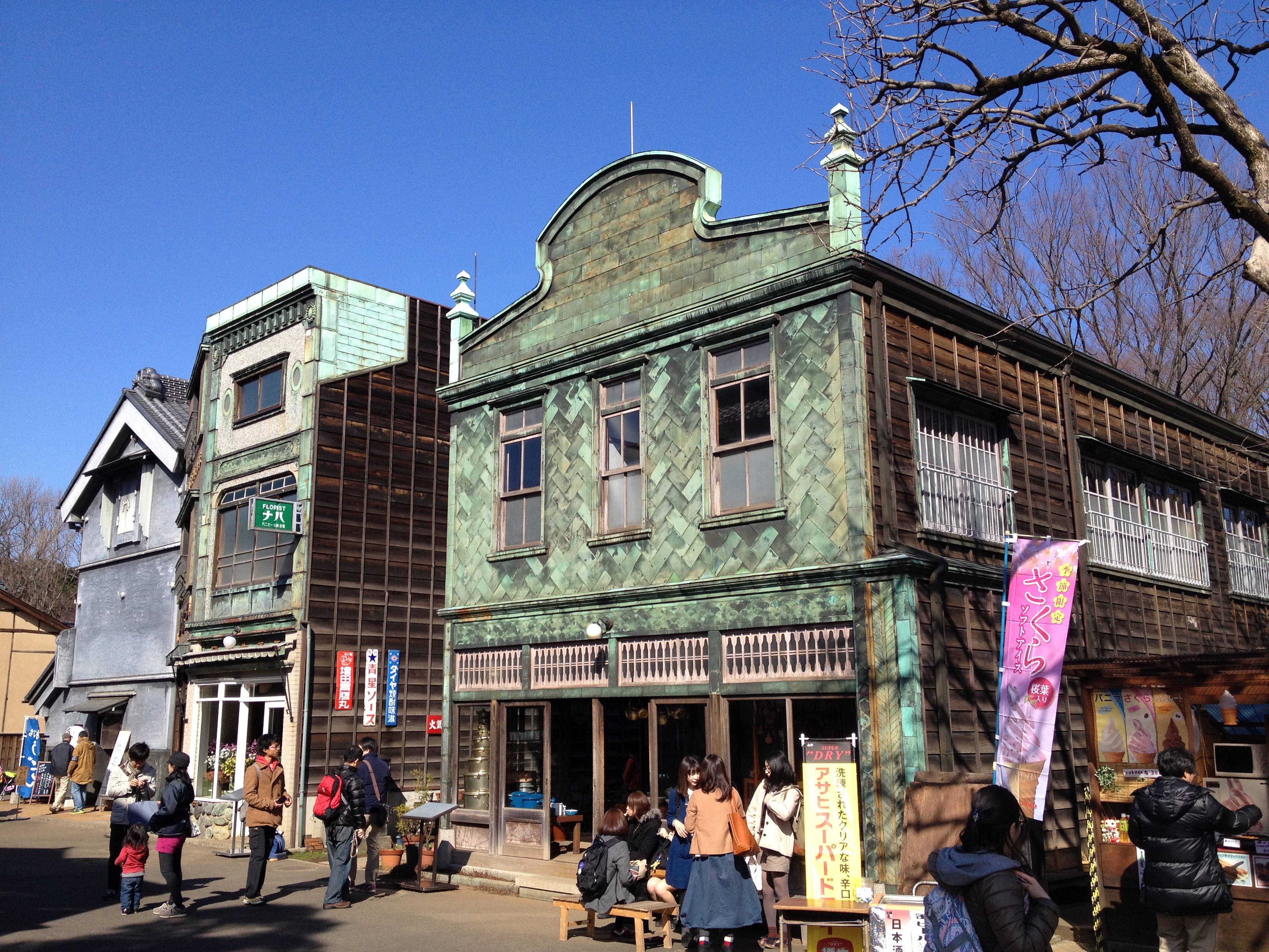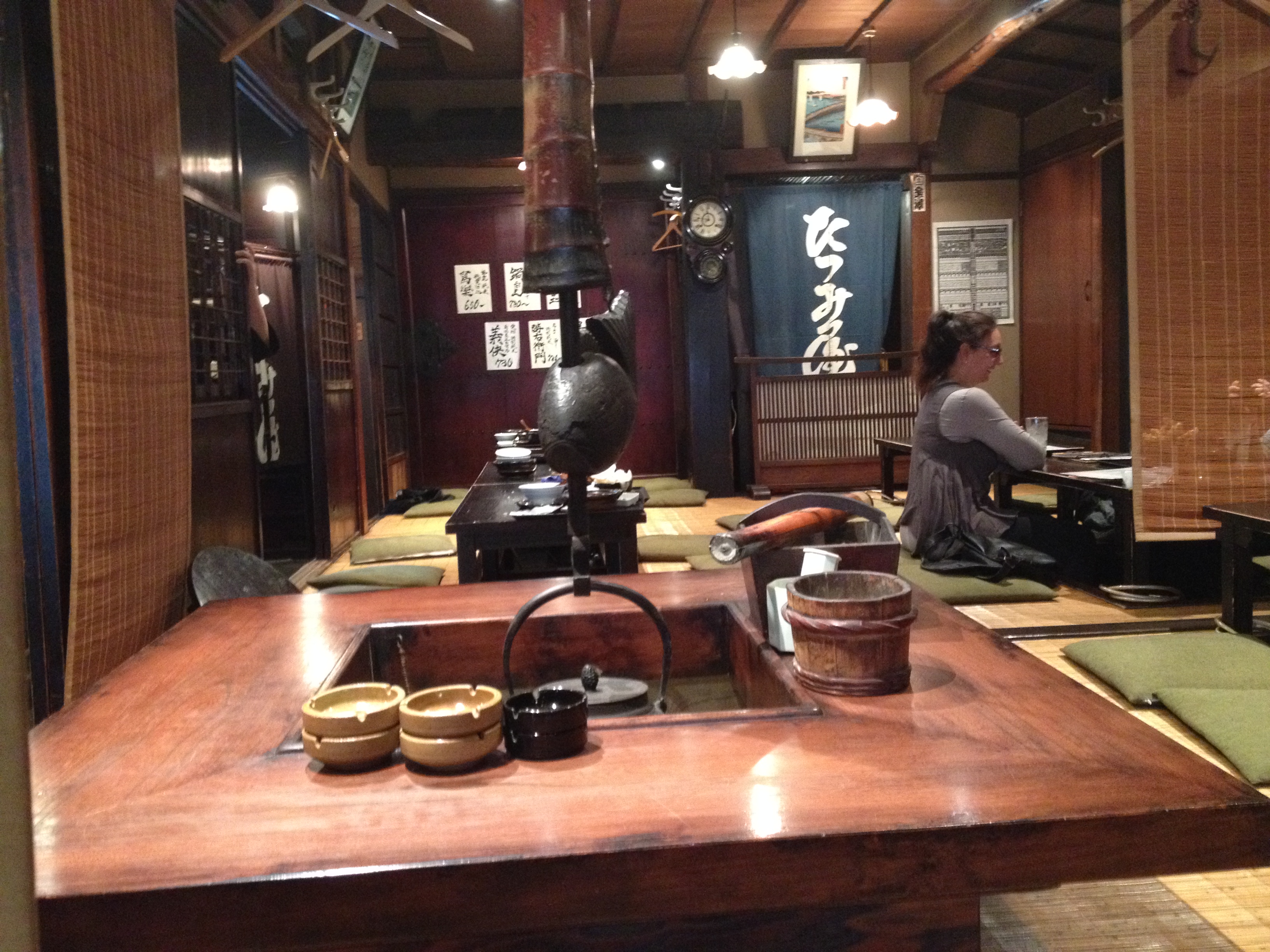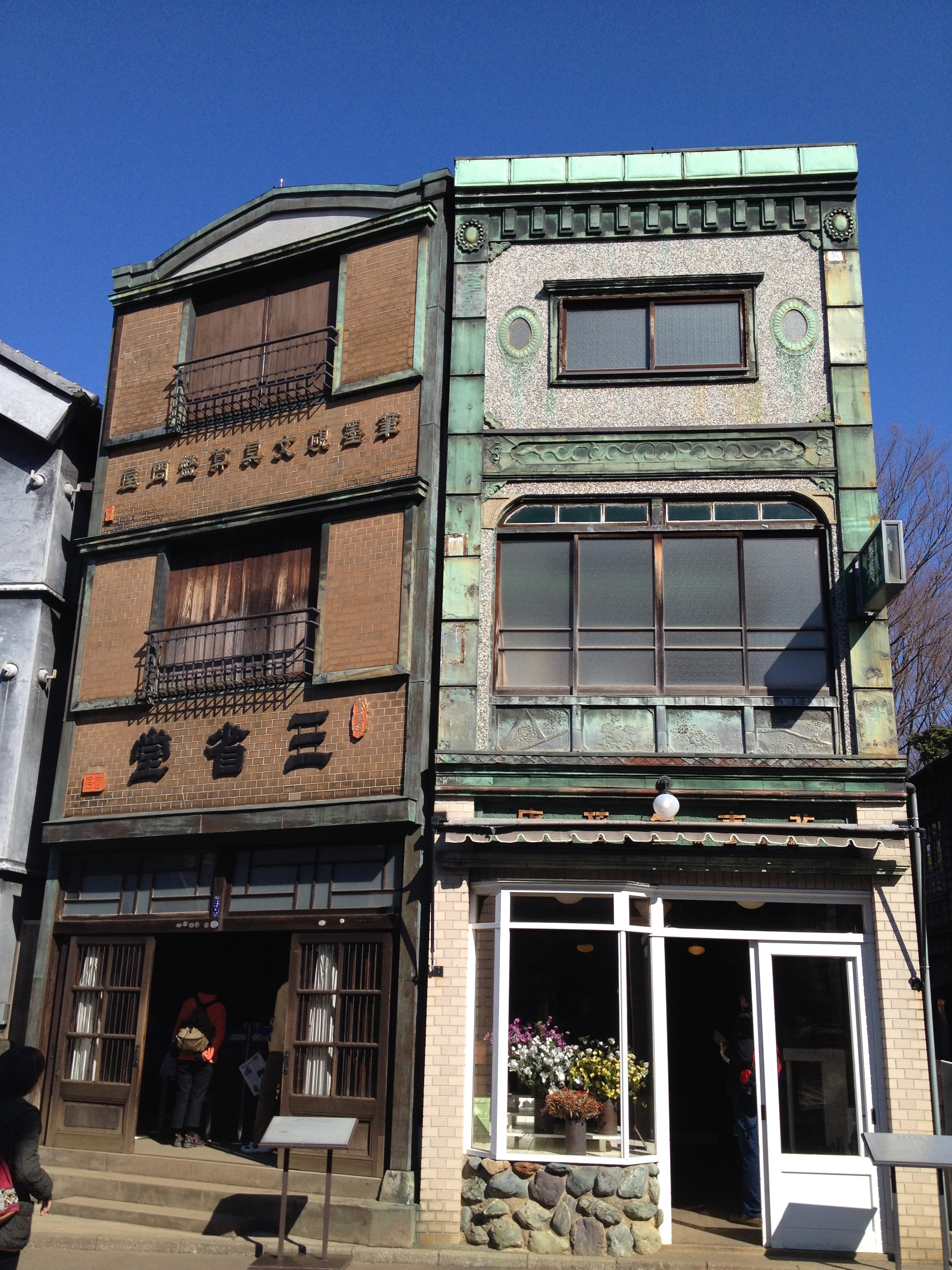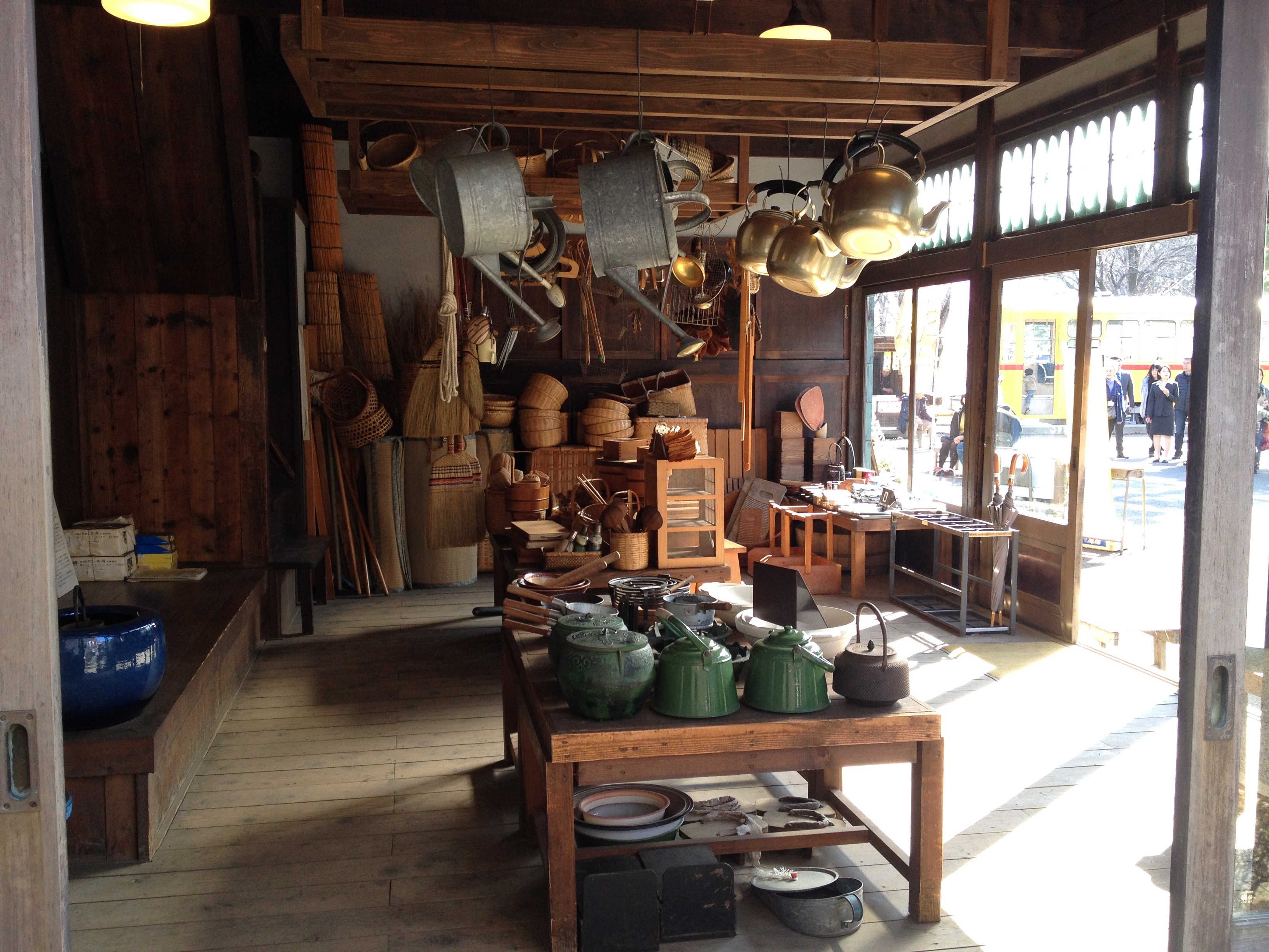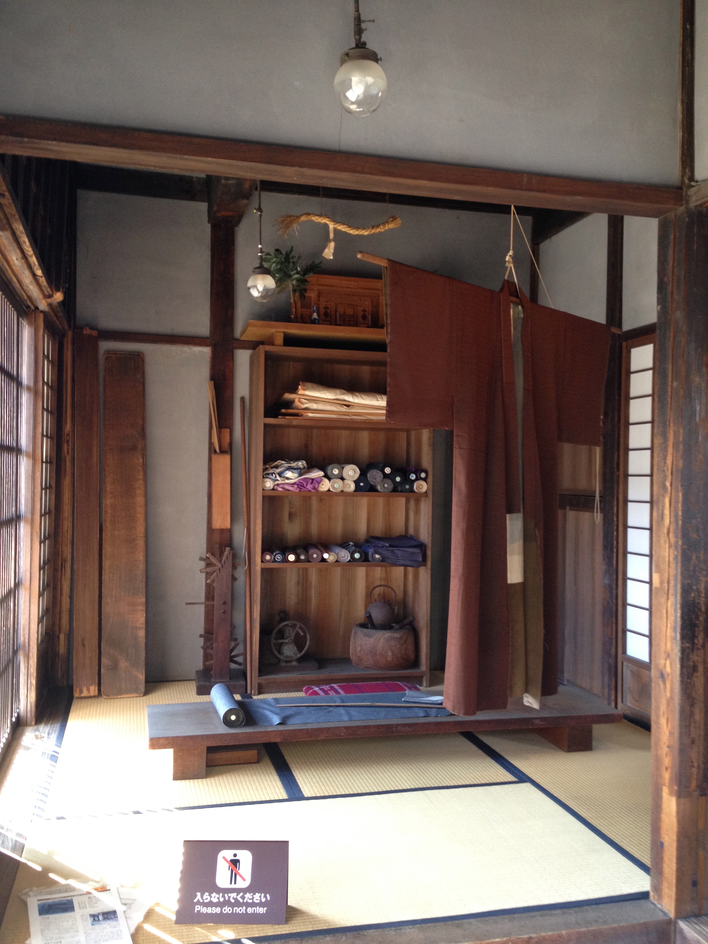 Sanmachi suji est le nom de la vieille ville, principalement composée de trois ruelles dont plusieurs maisons sont classées « heritage houses« . Cela nous rappelle effectivement certains quartiers de Kyoto, avec des constructions assez basses, uniformes et de bois foncé. Elles renferment quelques musées mais surtout des commerces, des échoppes de nourriture, de biscuits, thé, d’artisanat, des restaurants et de chaque côté de la rue, une large rigole où coule l’eau en permanence. Quand on pénètre ces devantures, le décor est hors du temps; des plafonds bas, un sol en terre ou en pierre, des étalages superbes et bien garnis, sur une profondeur de bâtiment insoupçonnée.