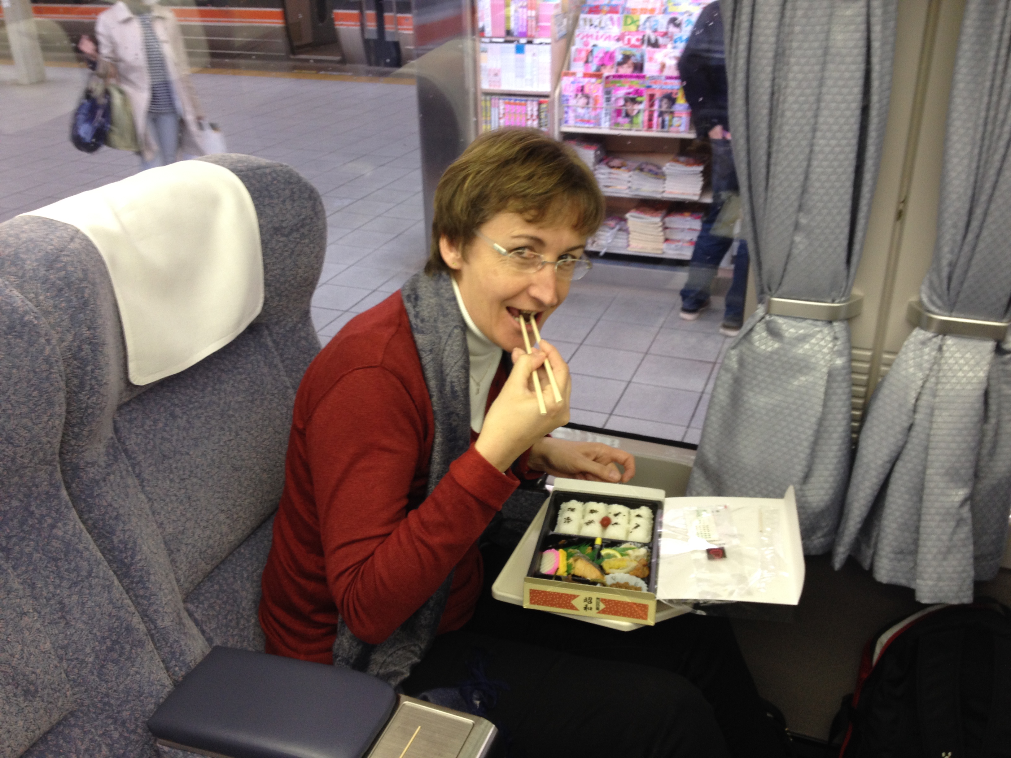 Le retour à la maison sera plus tard que prévu mais les trajets en train sont confortables. C’est vraiment appréciable de voyager avec des gens discrets et calmes. Les espaces sont agréables, rien n’est détérioré, la propreté est irréprochable – d’ailleurs les japonais ont l’habitude de rassembler eux-mêmes leurs déchets et de les porter dans les bacs à cet effet entre les wagons. Tout est prévu également pour que le trajet soit douillet, il y a des couvertures à disposition à l’entrée de chaque voiture et là non plus, elles ne disparaissent pas!