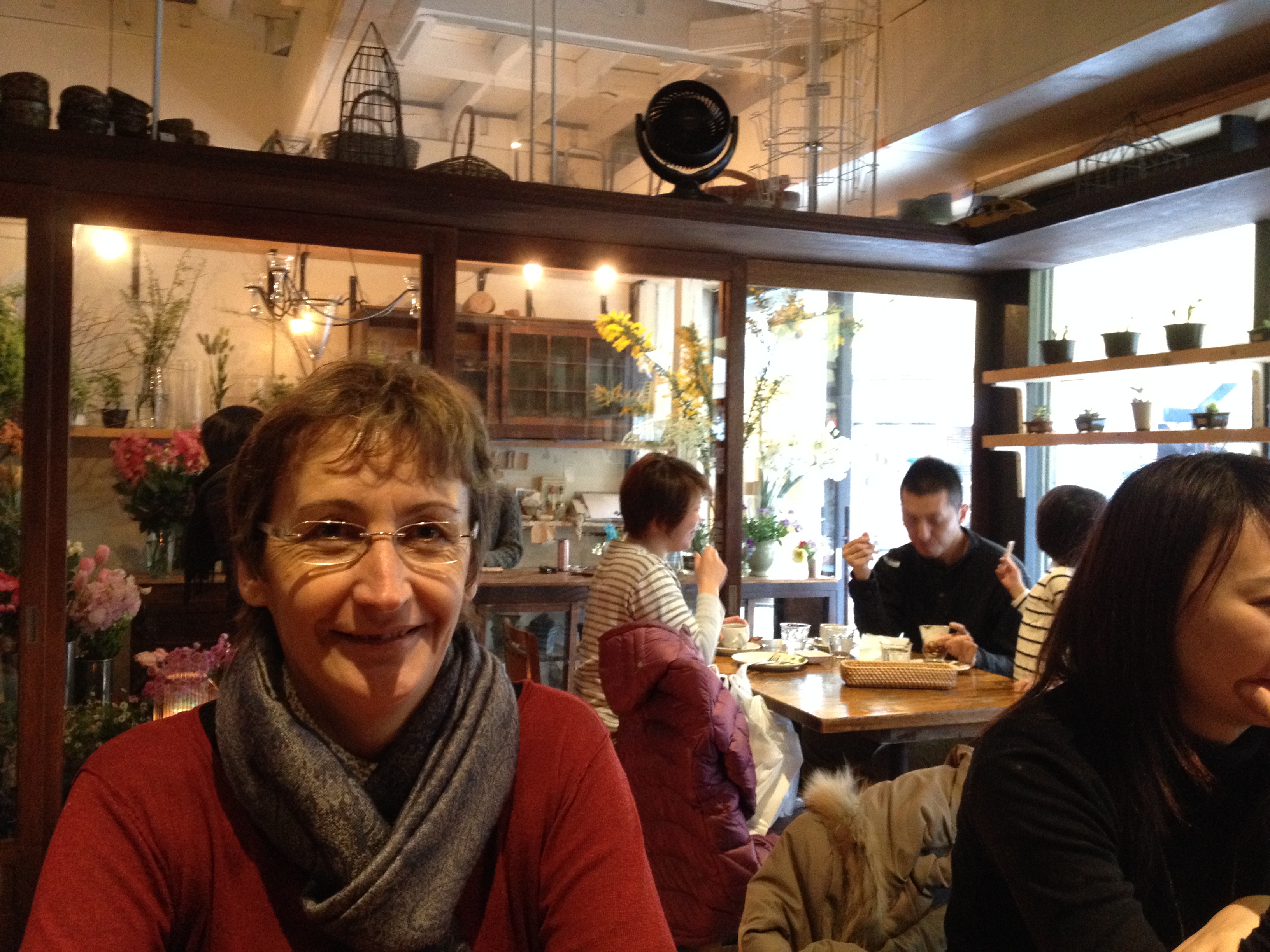 La faim se réveille, ce qui tombe à point car c’est notre heure choisie pour nous rendre au buffet du soir … ici on ne fait pas toilette chic, tout le monde a revêtu son Yukata et par-dessus, le manteau court japonais qui se trouvait dans la garde-robe (taille unique!) et nous voici donc tous quasi en uniforme, avec tous cette même démarche de petits pas serrés – trop drôle! Mais je pense que même si nous pensons nous fondre dans la masse, nous ne passons pas inaperçus, ne fut-ce que par la taille! Cet après-midi d’ailleurs, à la supérette du coin, la dame s’est prise d’un fou rire en nous regardant – je pense qu’elle n’avait jamais eu de clients aussi grands. Le choix au buffet est très varié, quelques indications en anglais nous permettent de bien nous restaurer et la fontaine de chocolat parmi les douceurs nous fait plaisir.