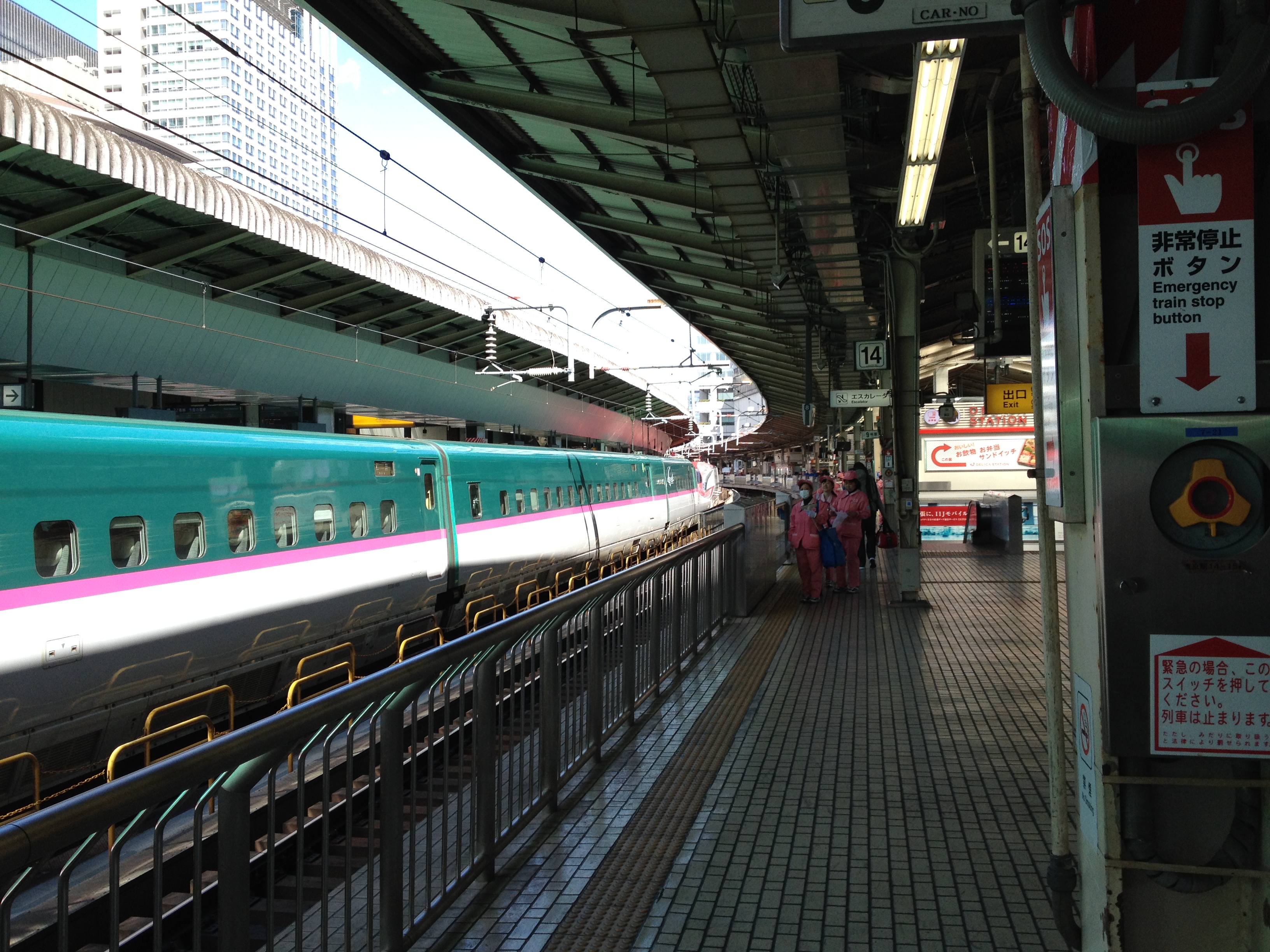 À la gare de Ueno, nous obtenons nos JR pass commandés en Suisse; il s’agit d’un pass libre accès à tous les trains de la compagnie nationale JR et ceci n’est valable que pour les touristes qui doivent les avoir réservés dans leur pays d’origine avant d’entrer au Japon. Tout est déjà plus clair pour nous puisque nous avions fait la même démarche depuis Singapour l’année dernière. Par contre je n’ai pas réalisé que le train panoramique envisagé pour aller à Hakone dépend d’une compagnie privée et ne serait donc pas gratuit; l’employée au guichet nous indique l’autre itinéraire possible et elle nous fait la réservation des places pour le train rapide. En route donc pour Tokyo station, où nous attendons sur le quai le Shinkansen Hikari – il y a peu de voyageurs avec nous mais par contre les dames du nettoyage, toutes habillées de rose, sont alignées devant les rails. Dès que le train s’est libéré de ses occupants, elles se mettent à l’ouvrage et en quelques minutes, tout est nettoyé, appuie-tête changés et sièges retournés afin que tout le monde voyage dans le sens de la marche du train. Une fois ressorties, les petites lumières au-dessus des portes des wagons s’allument de rouge, ce qui signifie que nous pouvons monter à bord.