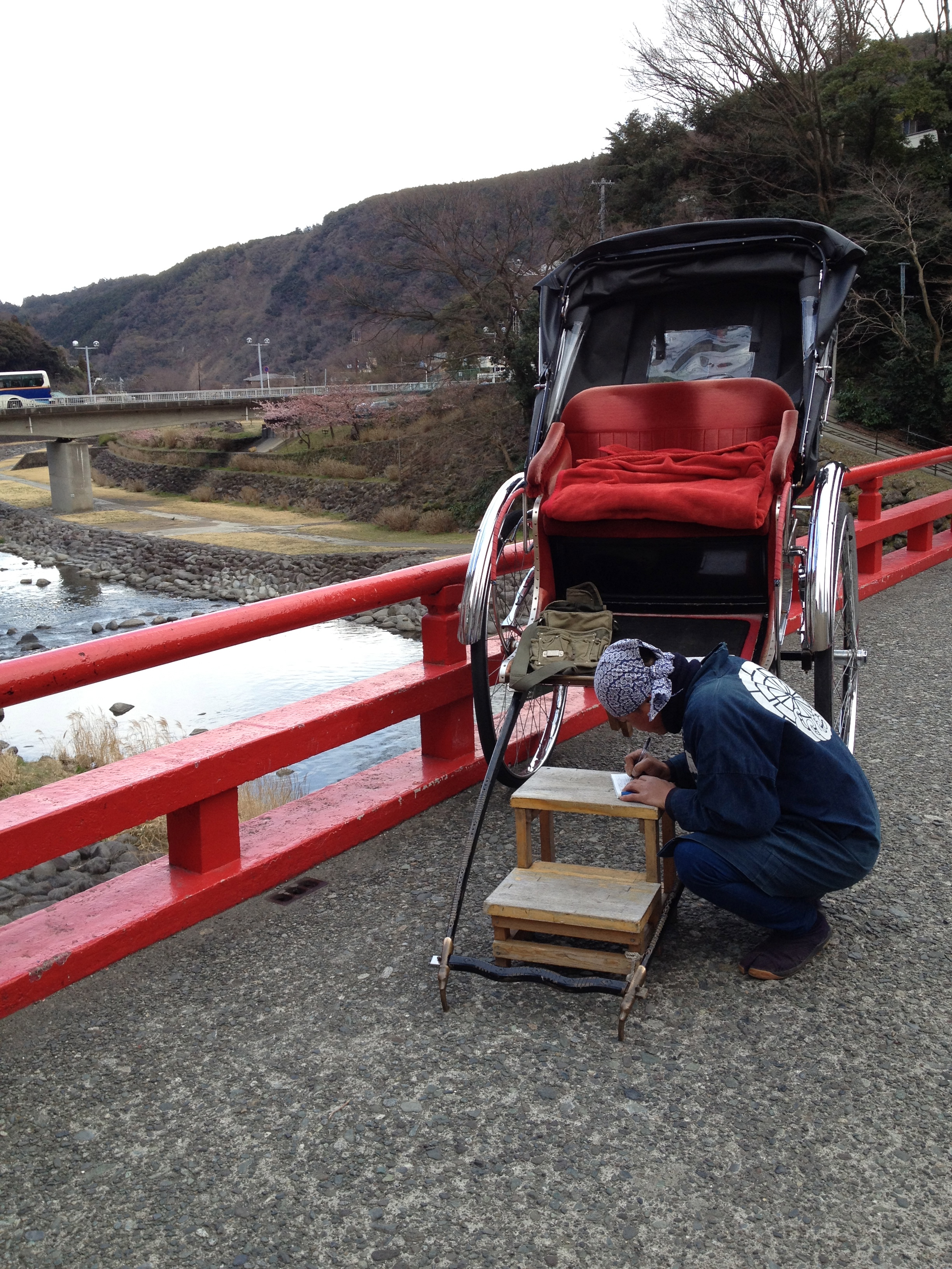 En face de la gare de Hakone-Yumoto, nous avons encore la chance de tomber sur une dame fort gentille qui nous explique comment rejoindre l’hôtel, nous indique comment comprendre les horaires des bus, bateaux, etc sur la brochure en japonais et elle contrôle même pour nous la météo de demain sur son ordinateur. Dès que la langue n’est pas un frein, ils sont vraiment très très serviables et contents de nous aider – sans jamais oublier de nous demander d’où nous venons.