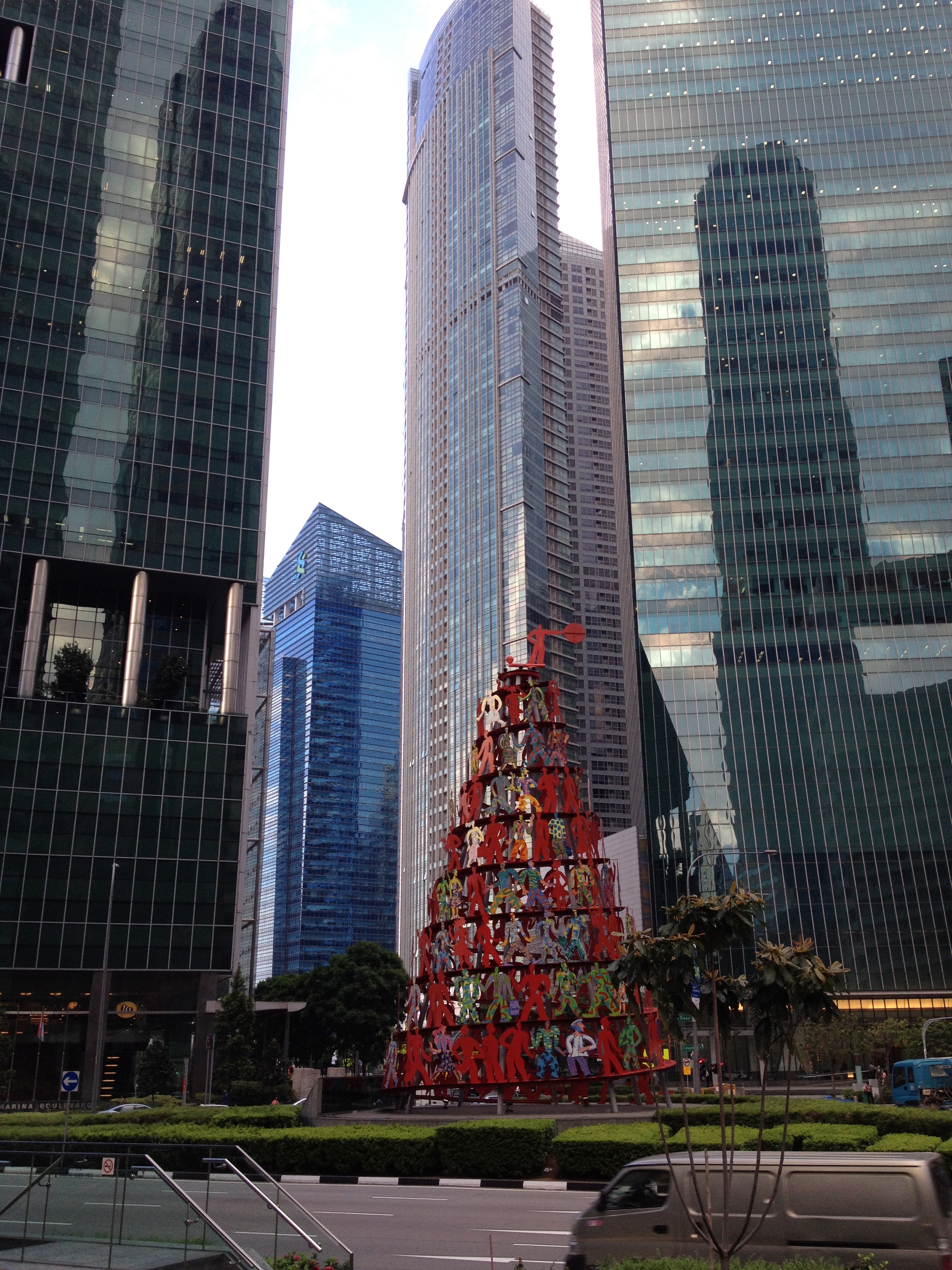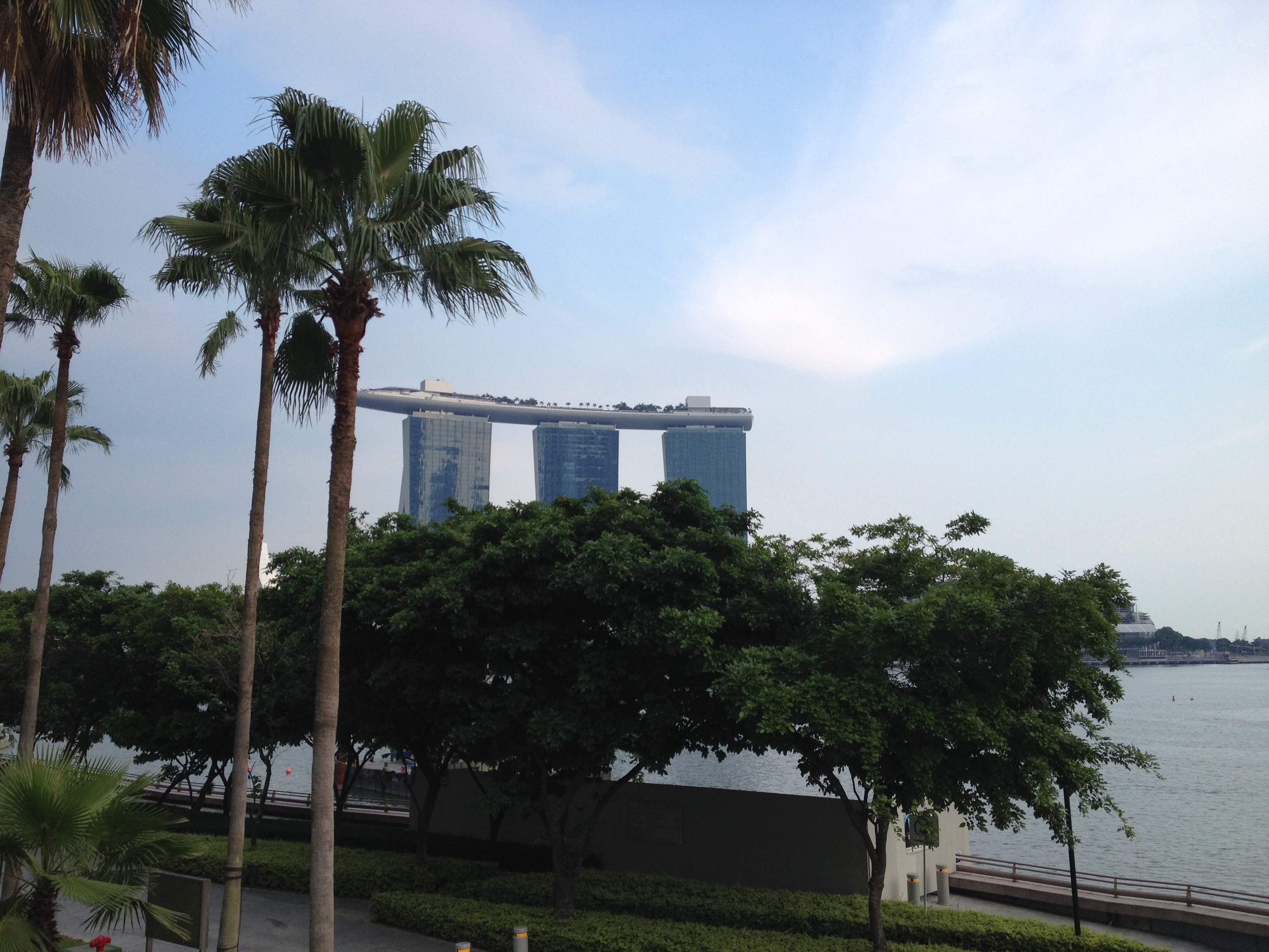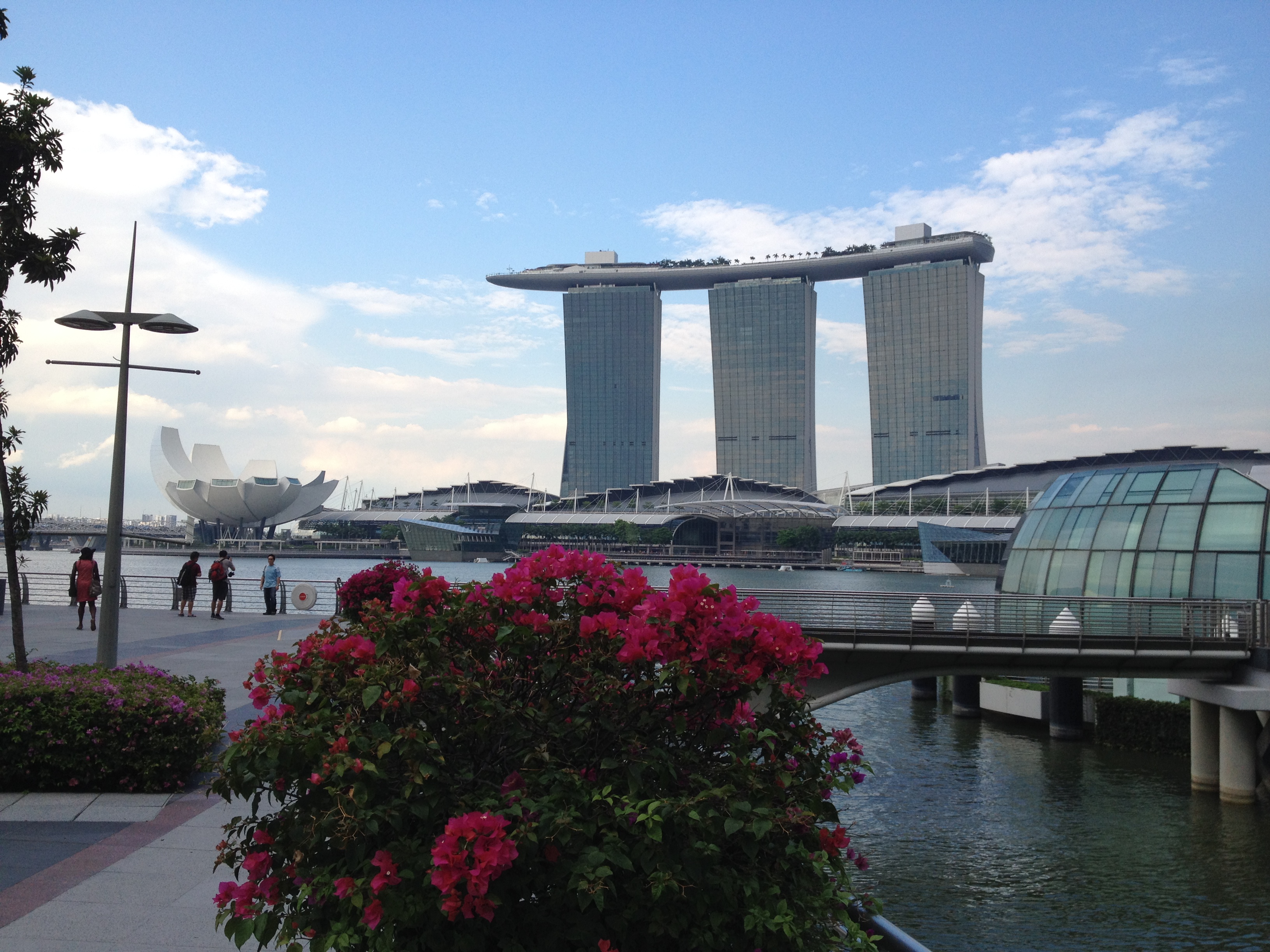 Il s’agit de la première visite de mes nouvelles amies vietnamiennes à Singapour; cela ressemble à un rêve qui devient réalité! Tout en parlant pour faire connaissance, je les guide en nous dirigeant vers Marina Bay, en passant à Raffles Place où j’ai la surprise de découvrir une nouvelle œuvre de Jaume Plensa! Apparaît ensuite le mythique hôtel Marina Bay Sands que tous les asiatiques connaissent en photo – elles sont aux anges, n’en croient pas leurs yeux! Merlion crache son jet dans la baie, les photos crépitent, avec pause typique des chinoises les doigts en V et Myra ne tarde pas à communiquer sa joie avec ses amies en Europe et en Asie. C’est un vrai plaisir de papoter avec ces deux sœurs, de nous raconter nos voyages, nos familles, de se promettre de conserver le contact – qui sait, viendront-elles peut-être en Suisse ou bien moi à Saigon …